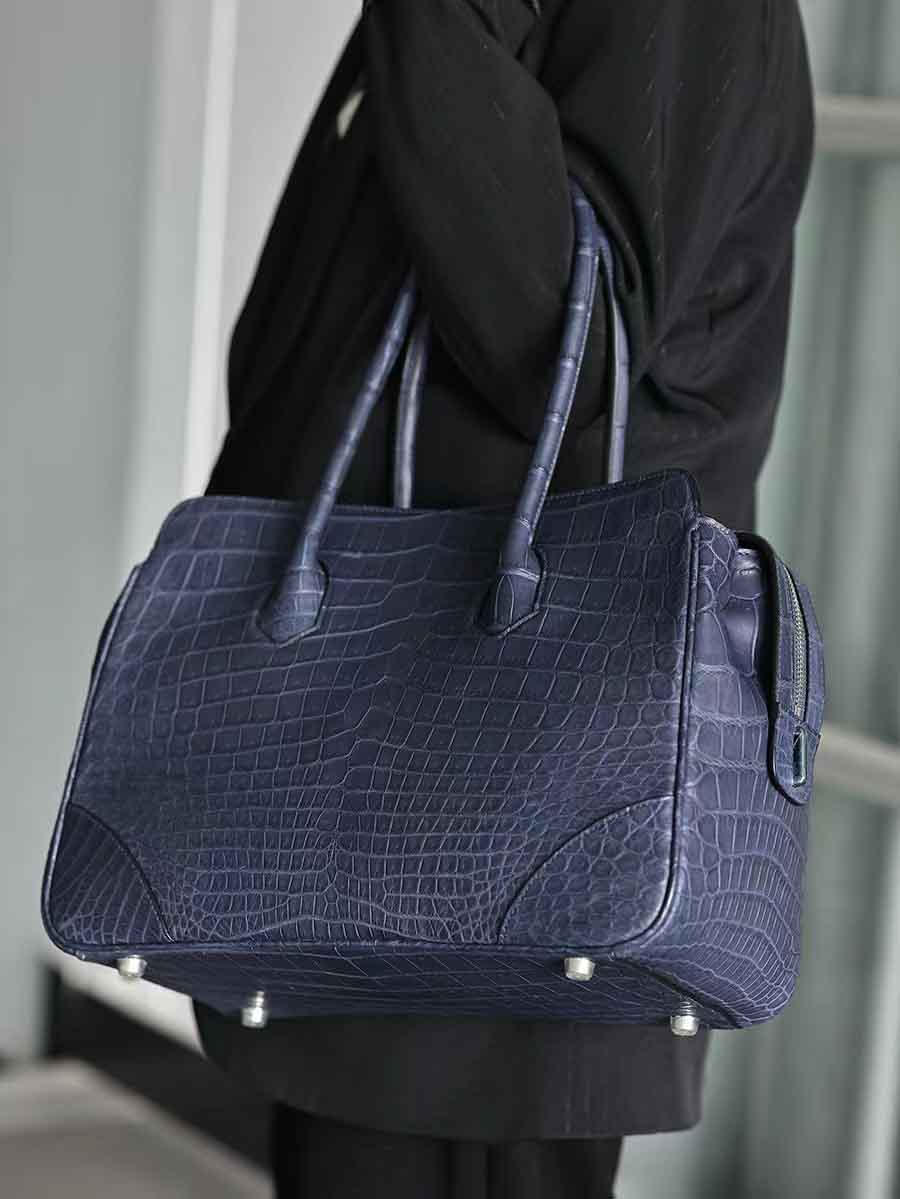 自主研发新款,女士手提包,深蓝无涂鳄鱼皮,客订出货。