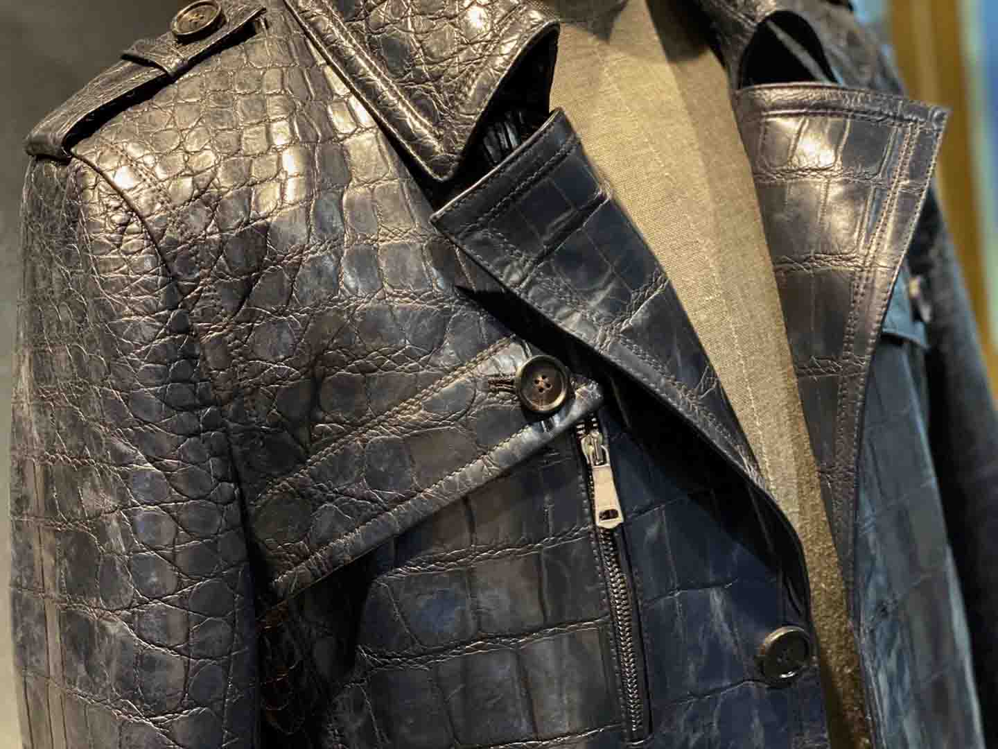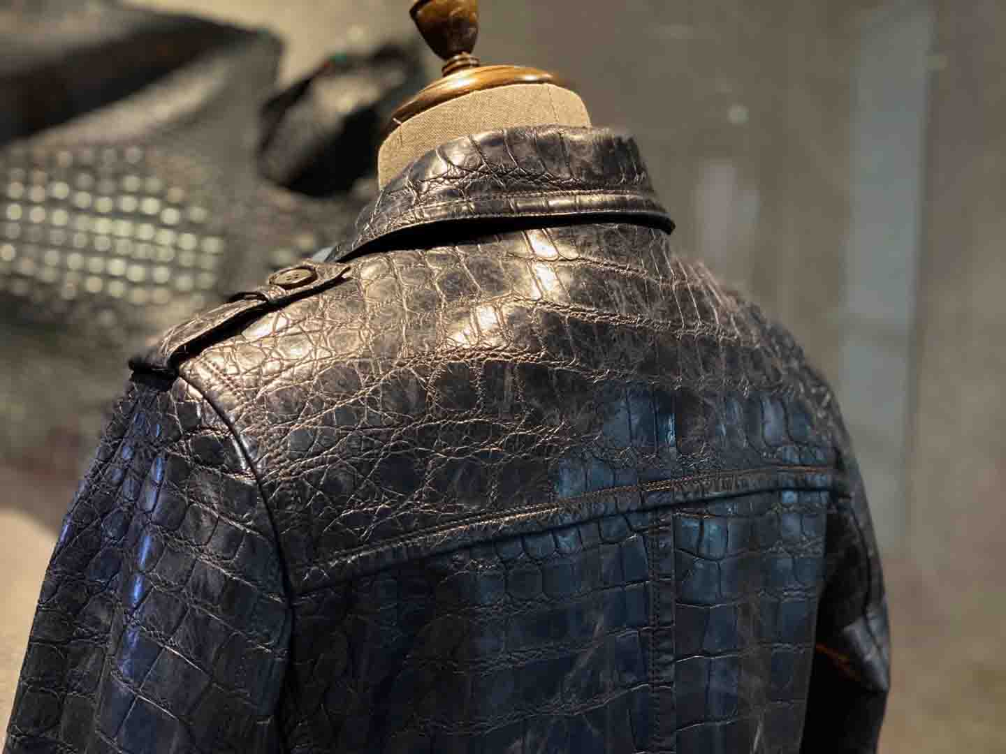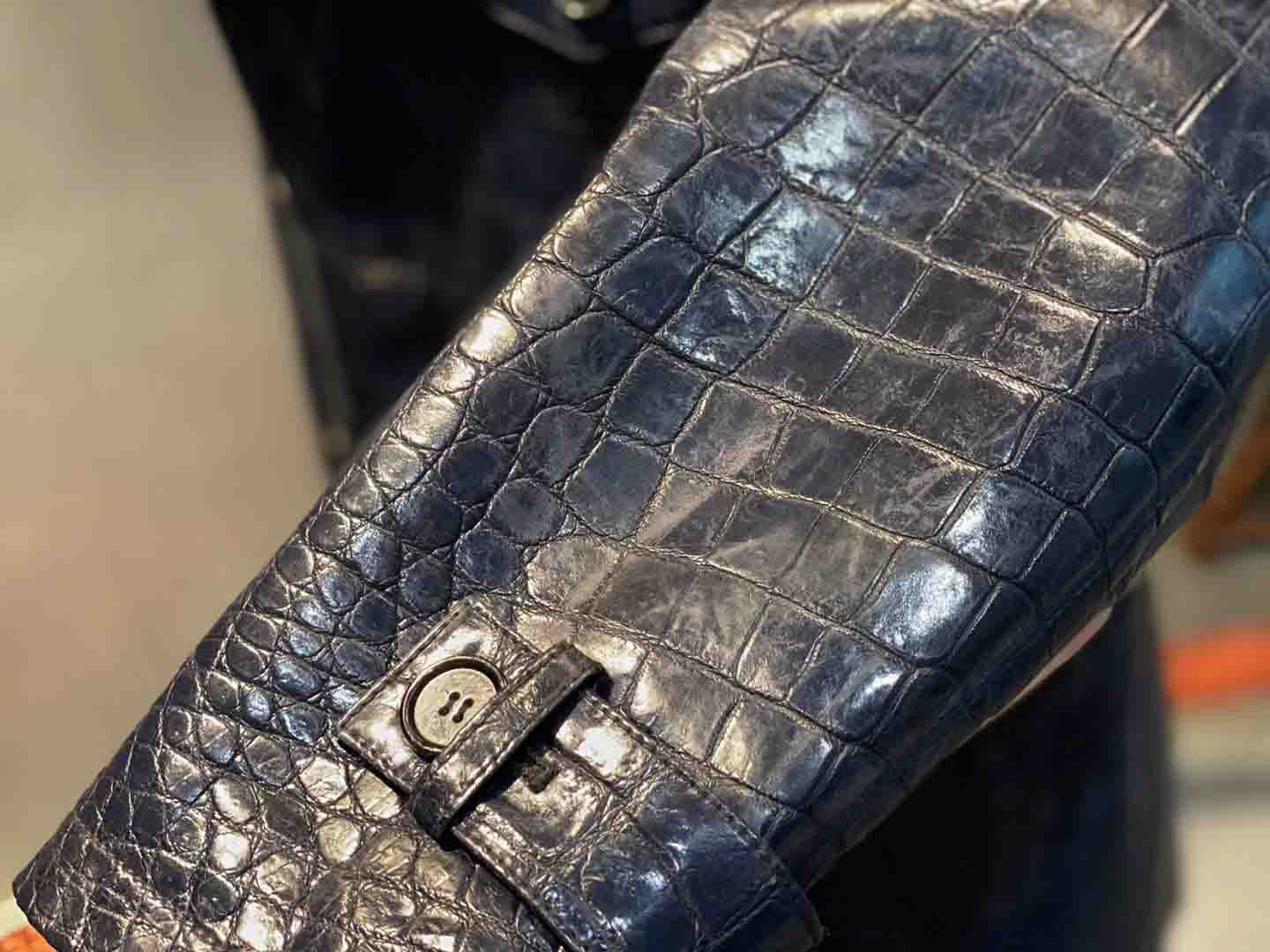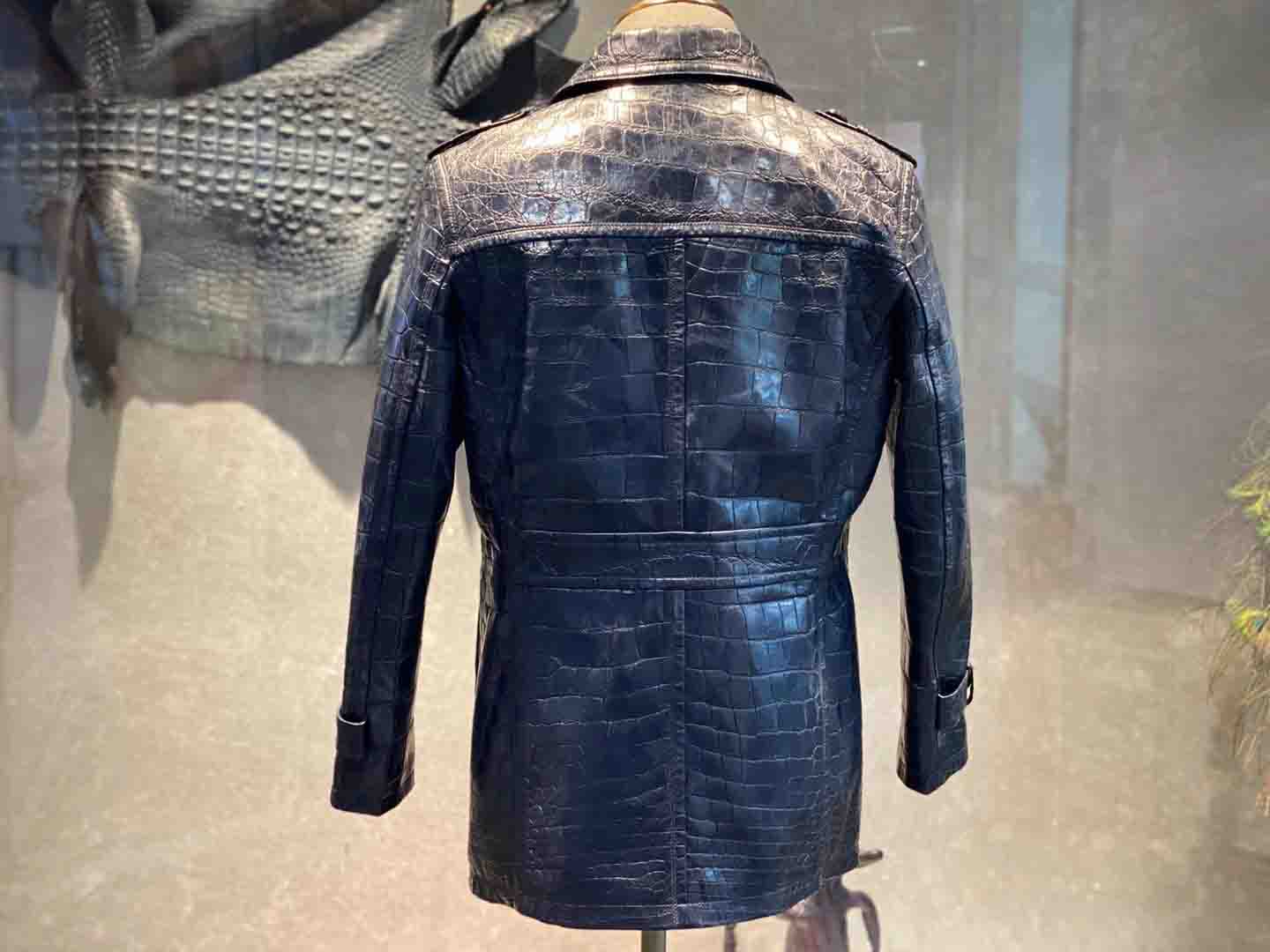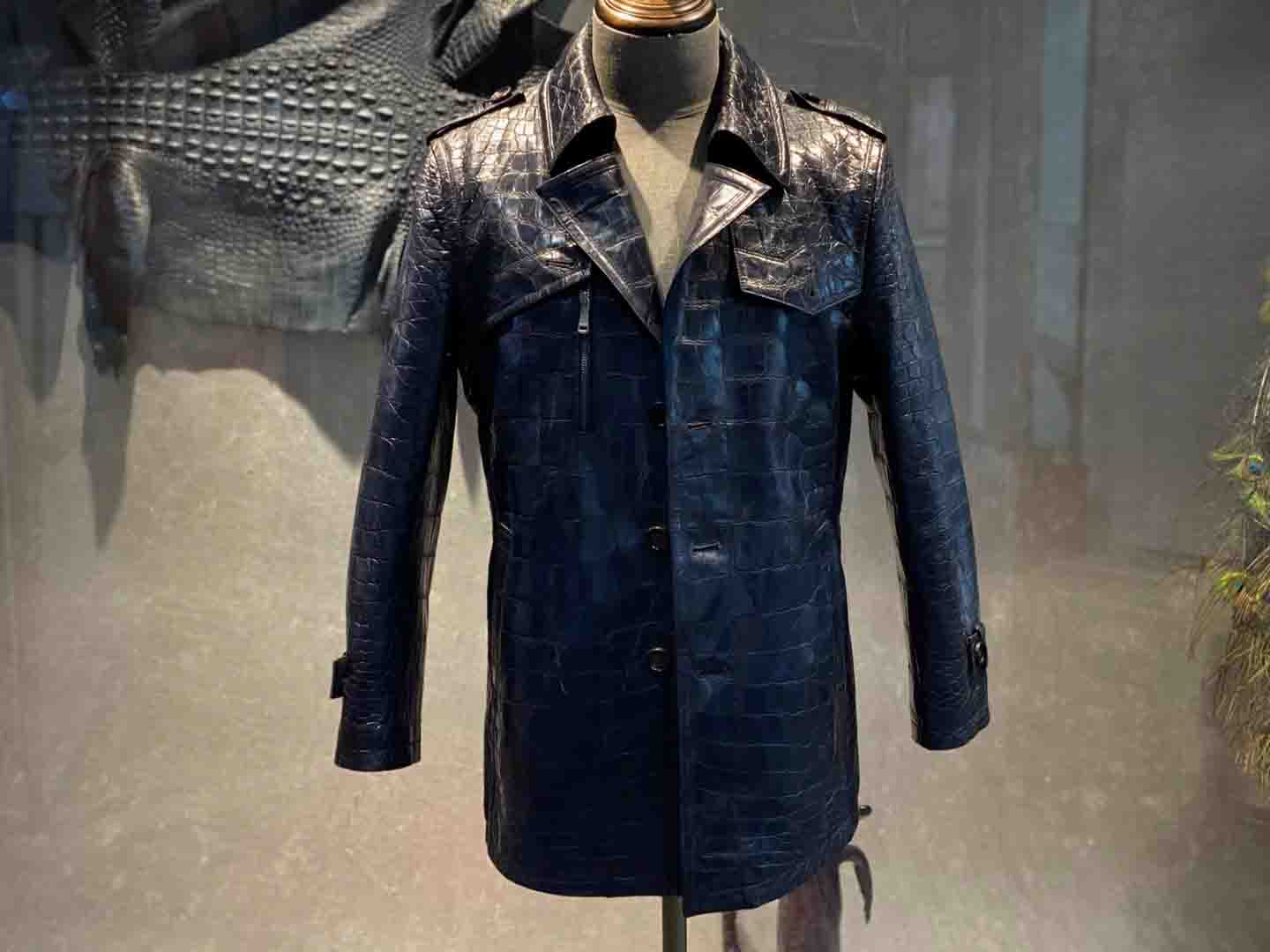 鳄鱼皮衣定做#擦色系男士#中长款皮衣现货50码 ,擦色鳄鱼皮中款风衣订制厂家 微信联系95506803