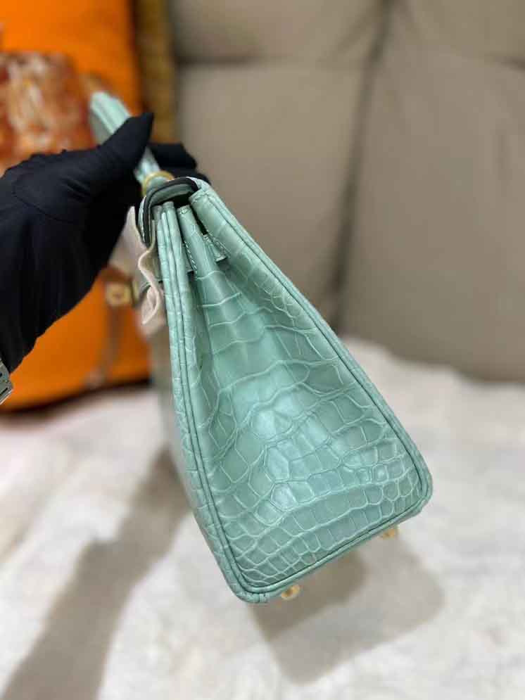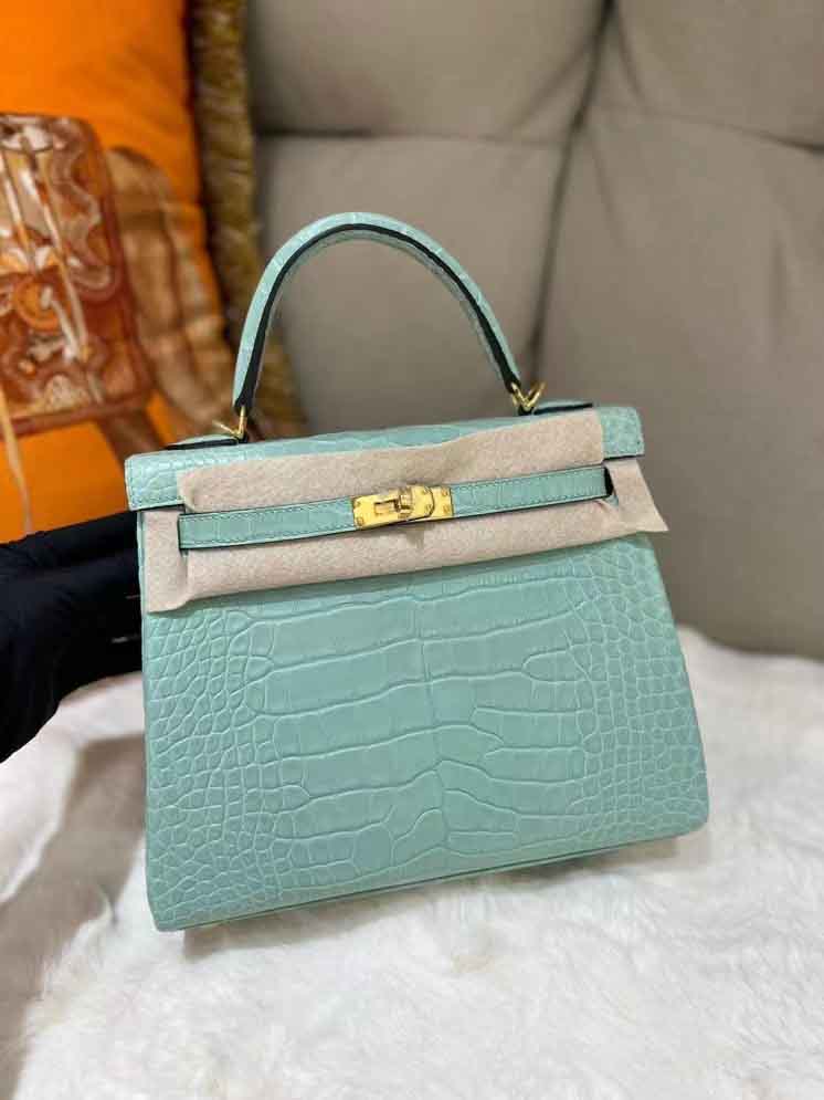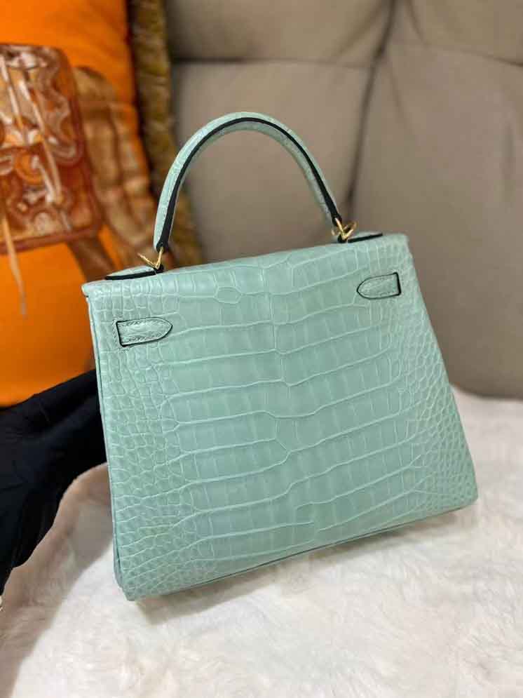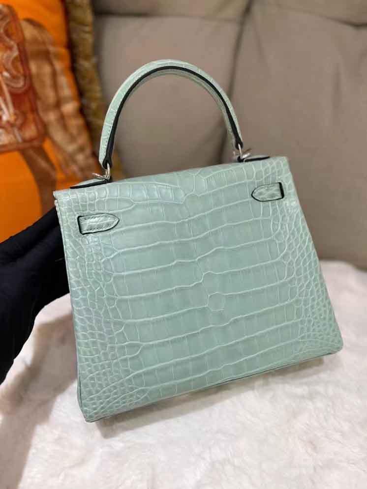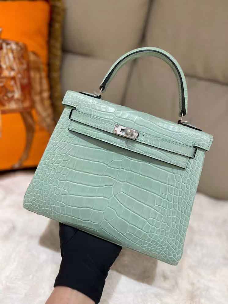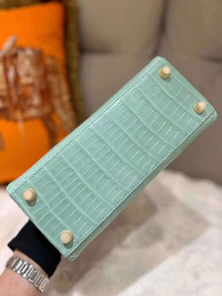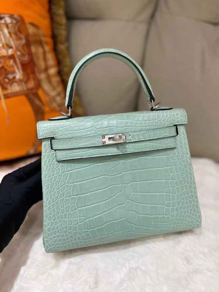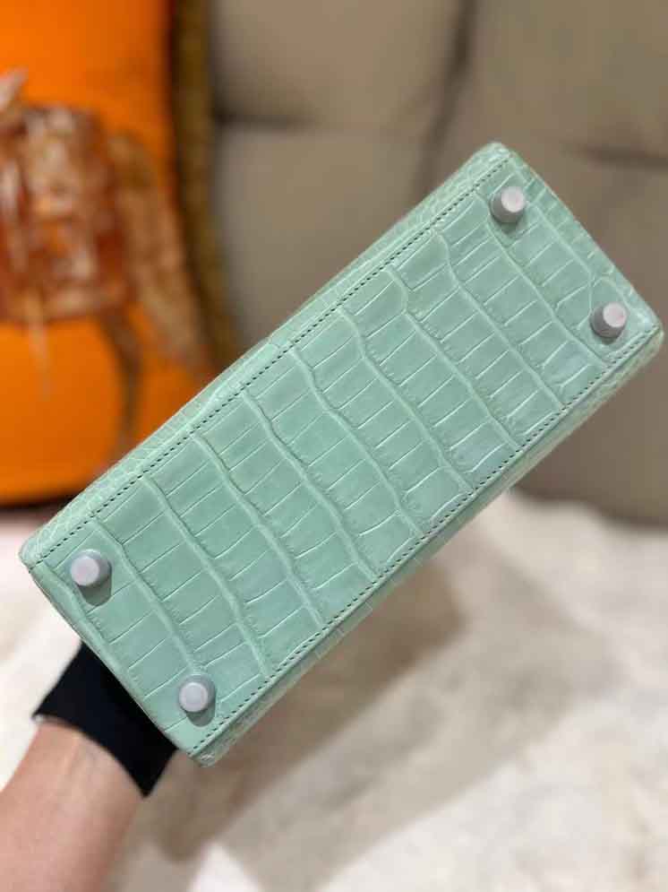 Kelly25 Alligator/美洲鳄▪️ 哑光雾面,薄荷绿 金银扣 现货。
