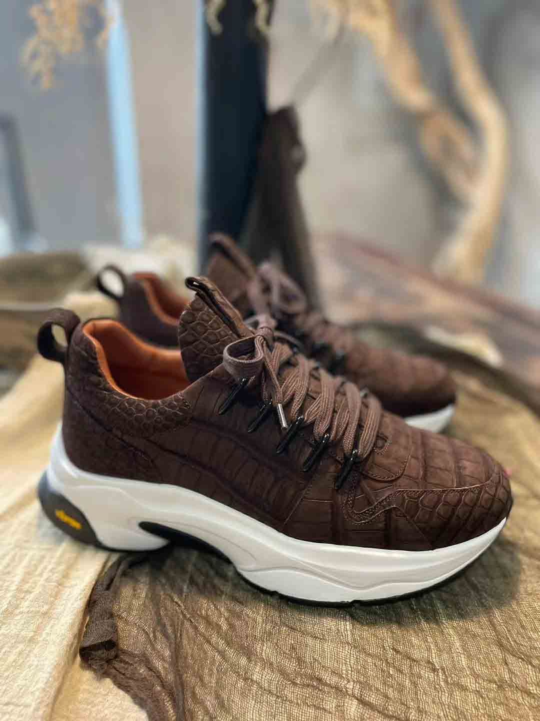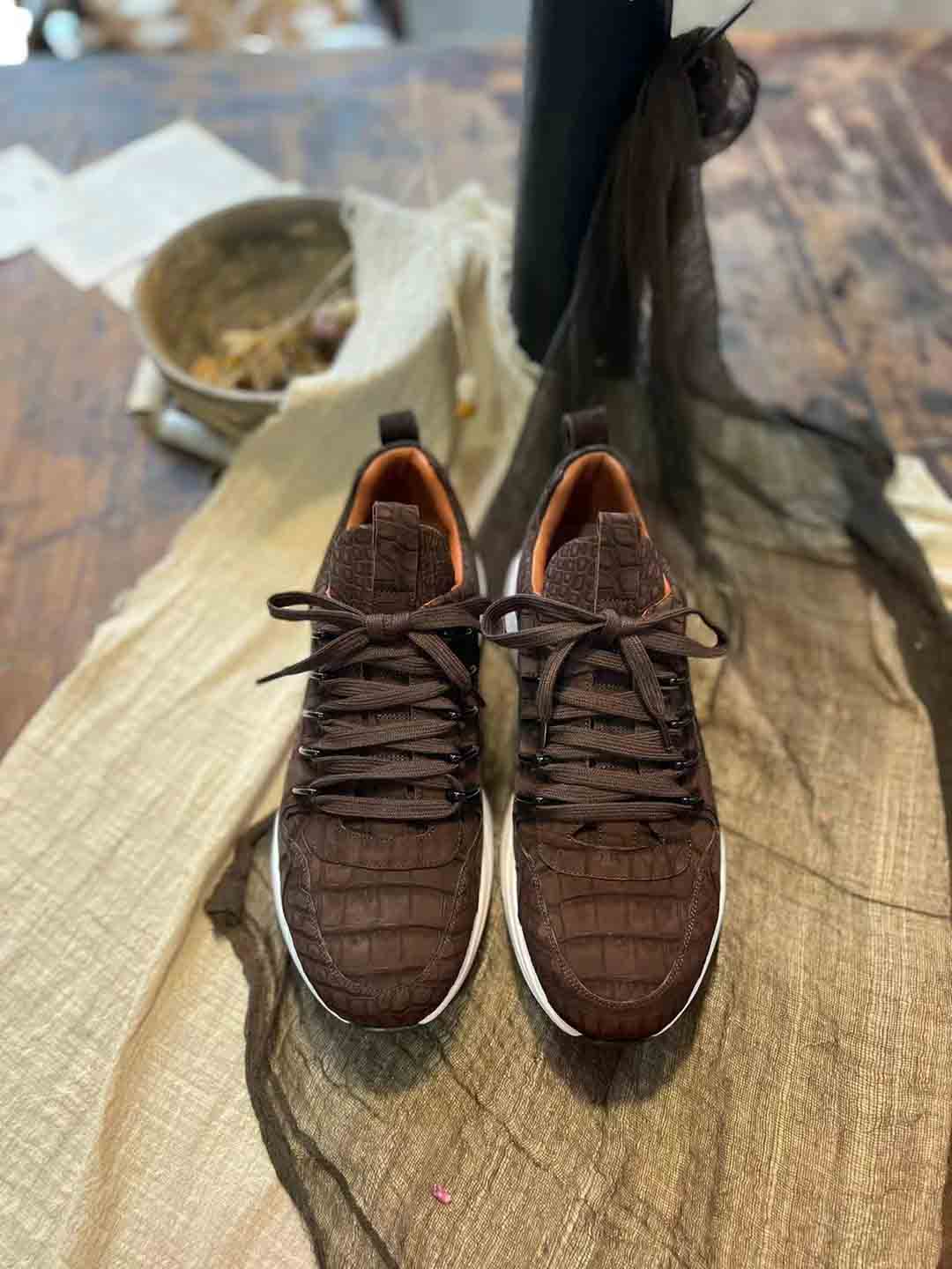 咖色鳄鱼皮休闲鞋订制,鳄鱼皮休闲运动鞋预约工厂定制微信联系 95506803