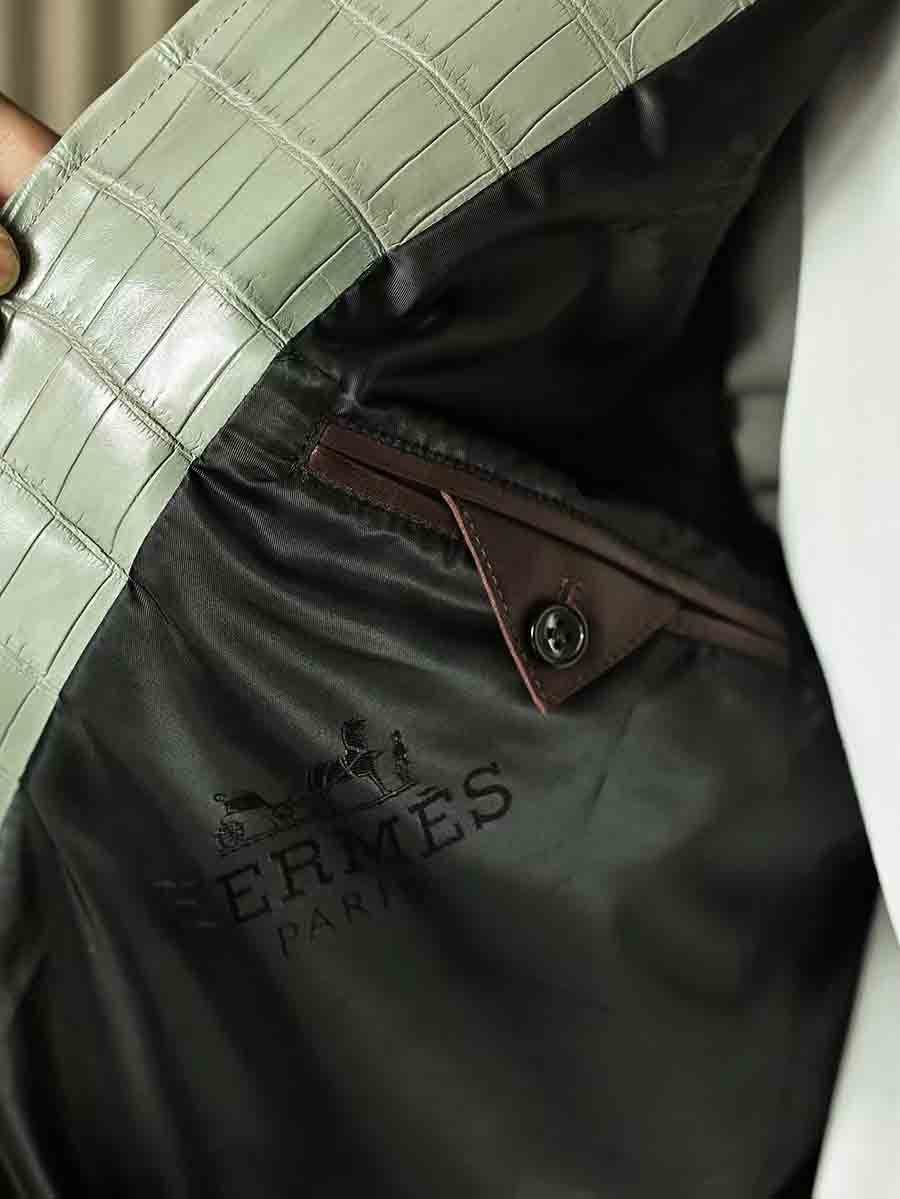 湾鳄皮风衣定制工厂纹路气孔漂亮的皮,可以根据自己的需求订制鳄鱼皮外套款式。微信联系 95506803