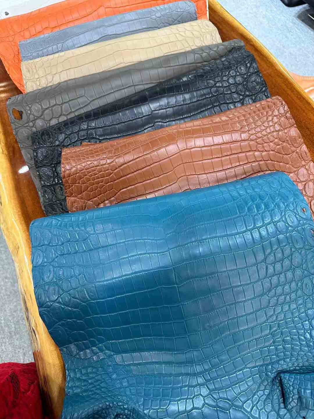 尼罗鳄鱼皮雾面无涂层黑色自然光皮料及各个颜色均售。高级又好看的纹路,鳄鱼皮就是有这个魅力。微信联系 95506803