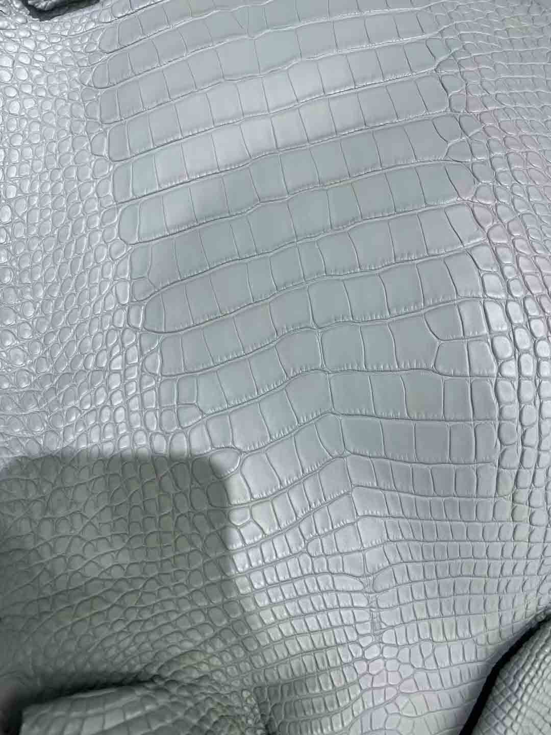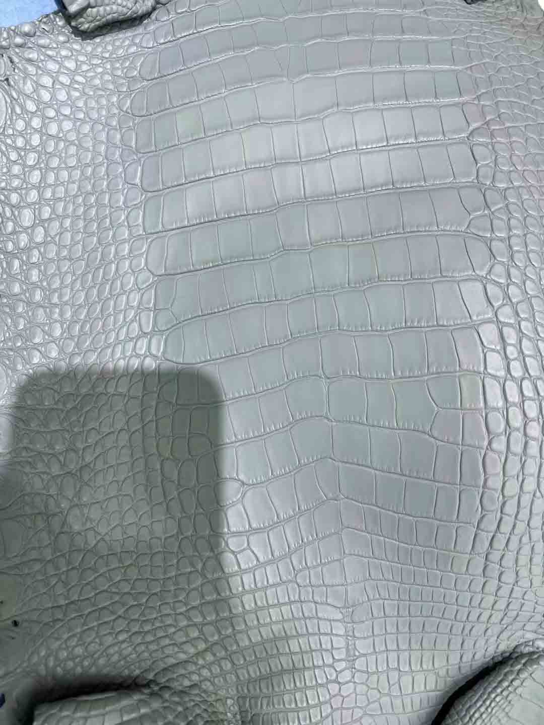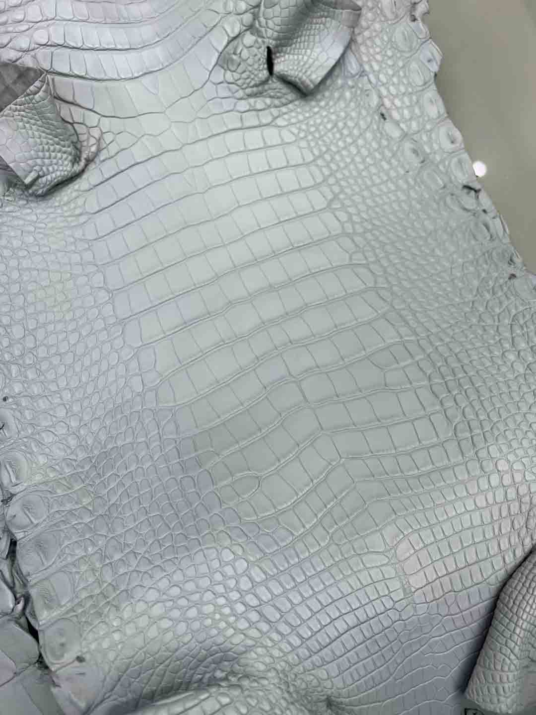 美洲鳄鱼皮 品种介绍:美洲鳄是所有鳄鱼品种里,其天然纹理最为方正,纹理极少杂纹,大小最为合适的鳄鱼品种,因此也颇受奢侈品皮具品牌的青睐。