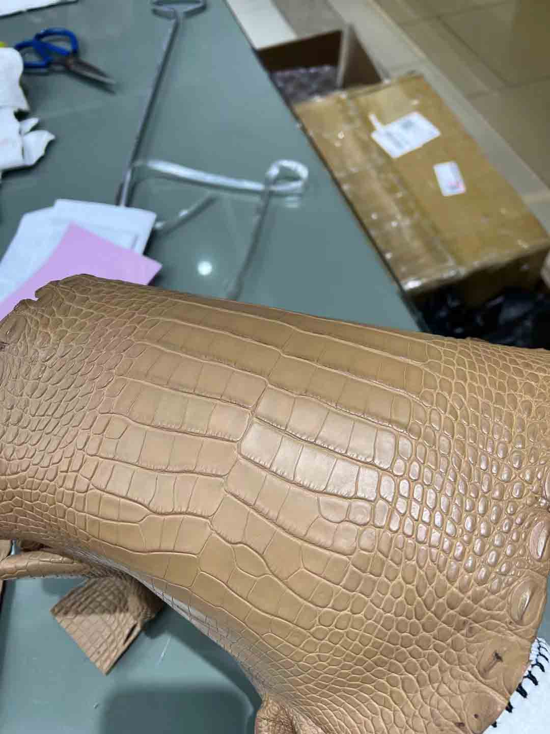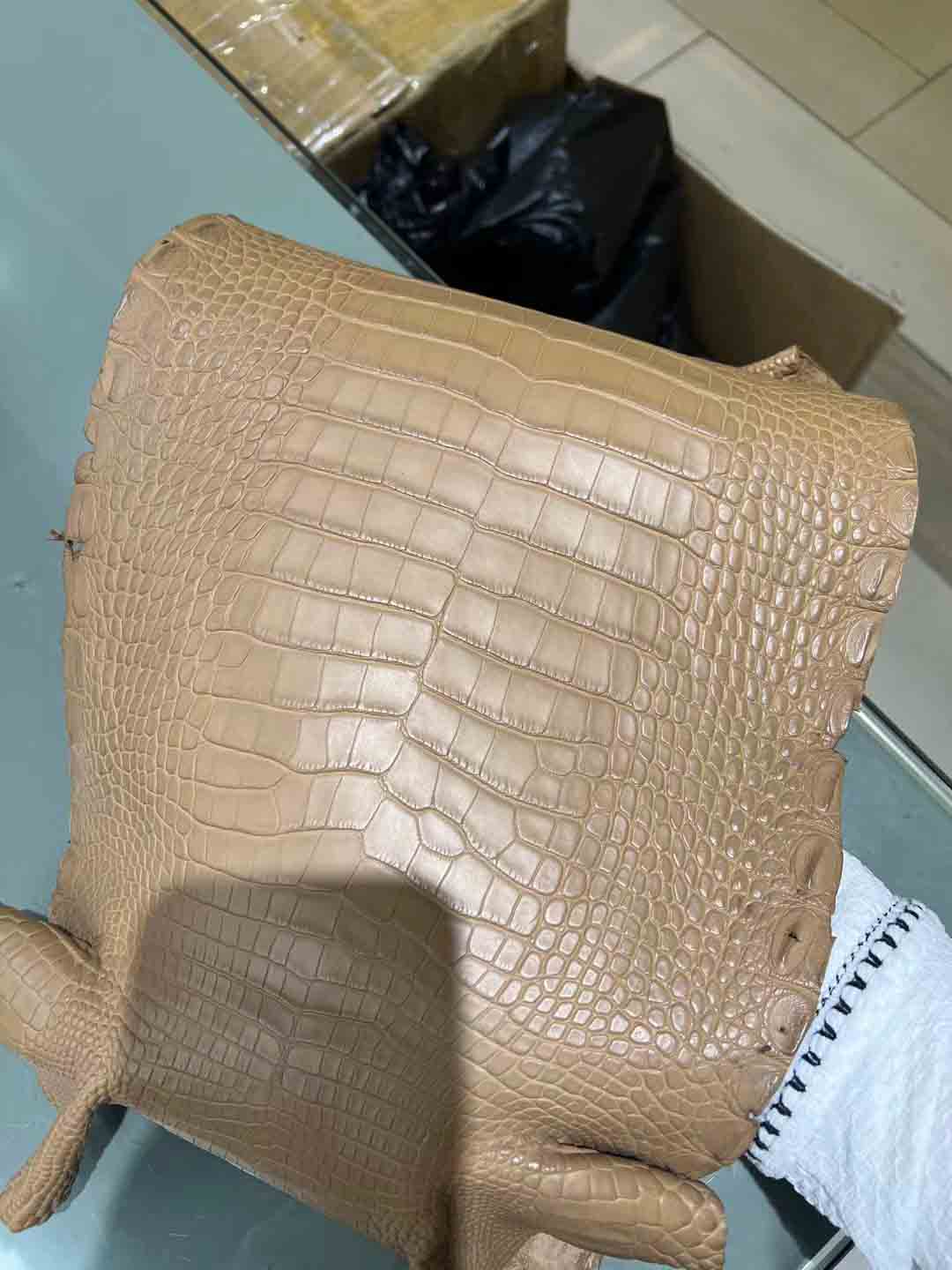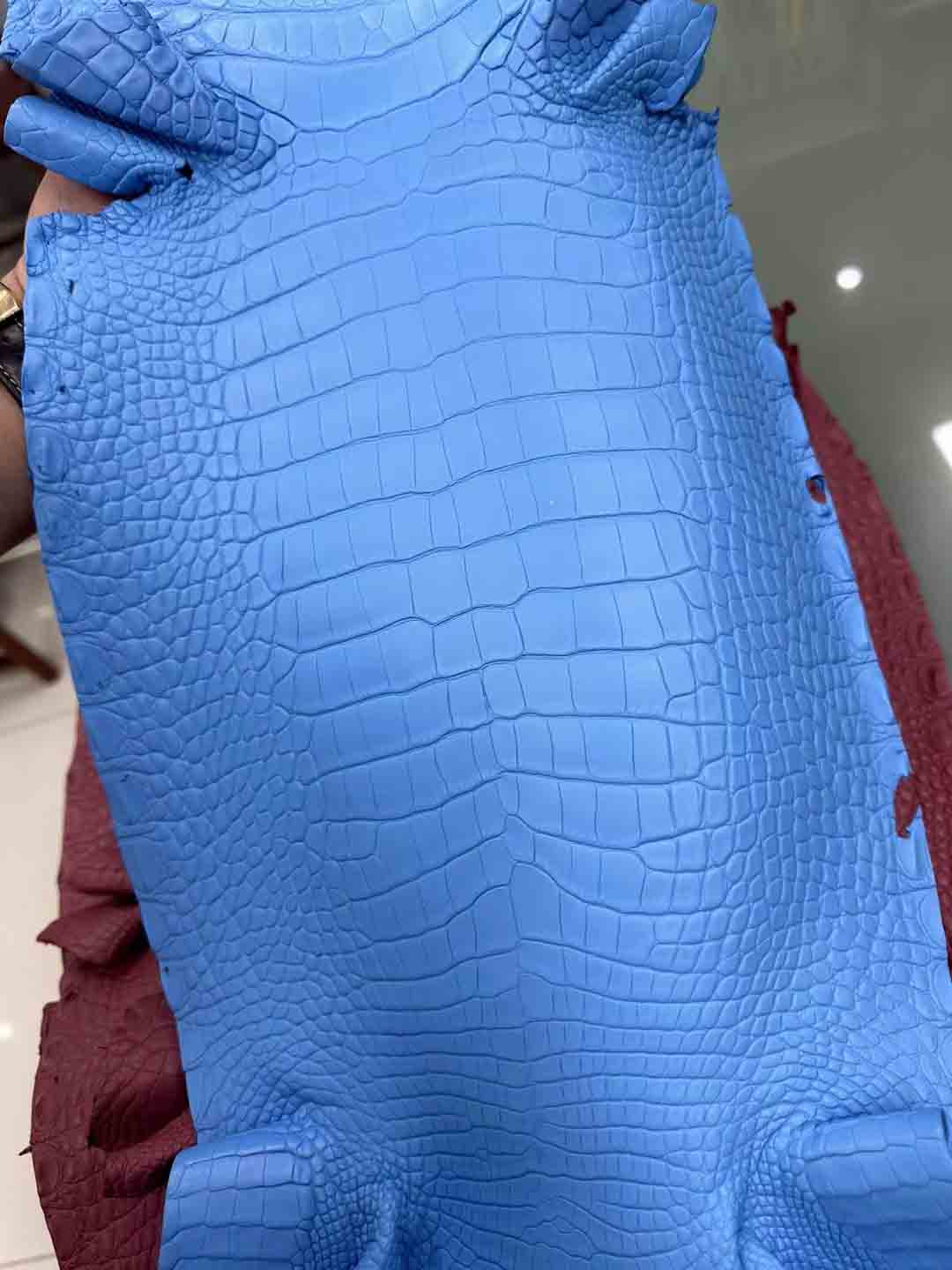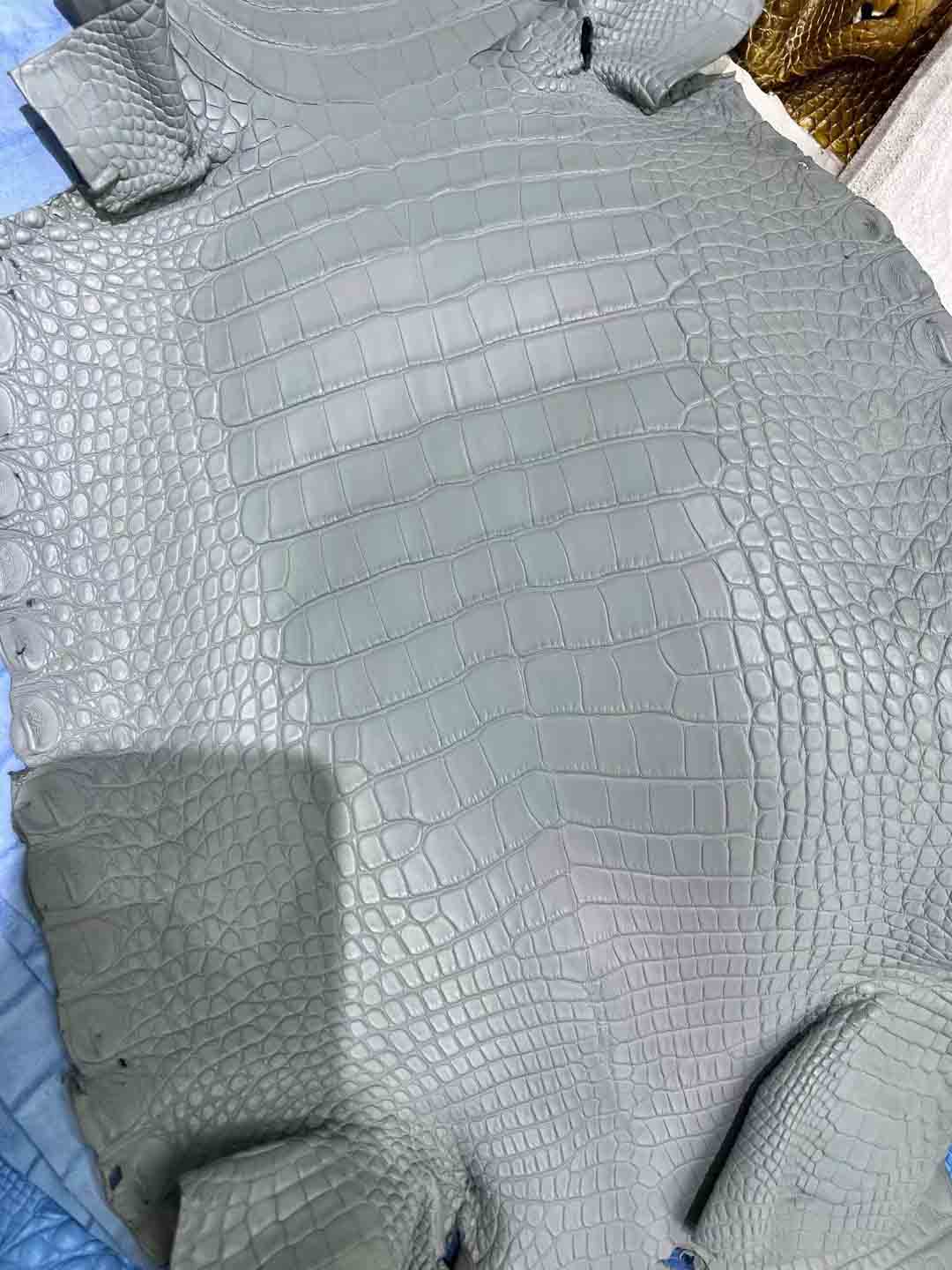 美洲鳄鱼皮 品种介绍:美洲鳄是所有鳄鱼品种里,其天然纹理最为方正,纹理极少杂纹,大小最为合适的鳄鱼品种,因此也颇受奢侈品皮具品牌的青睐。