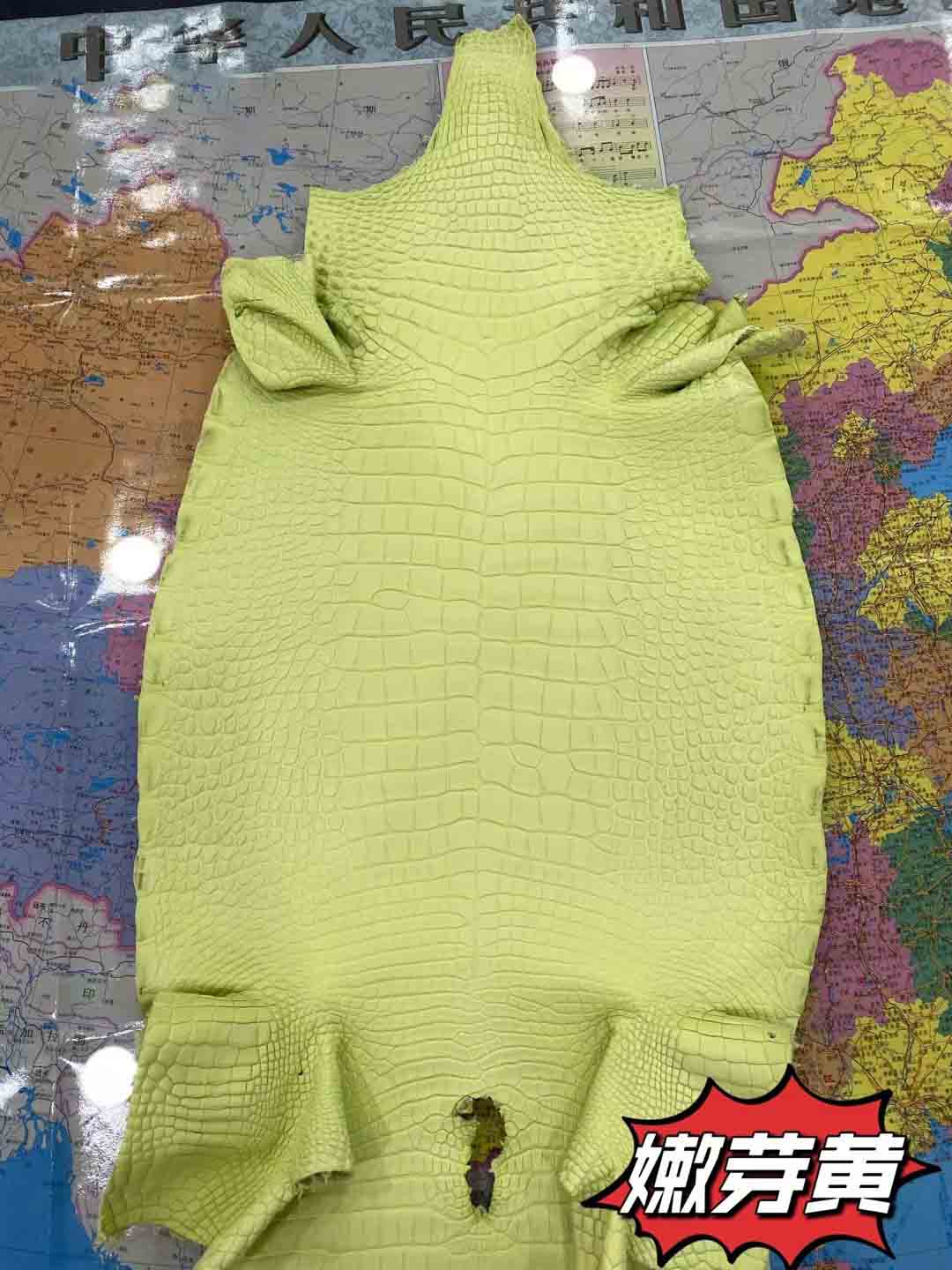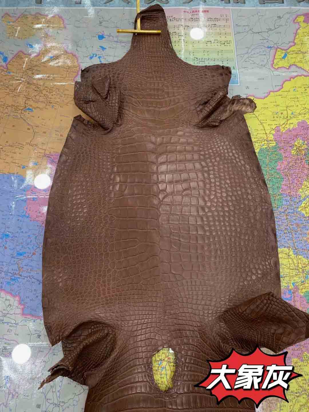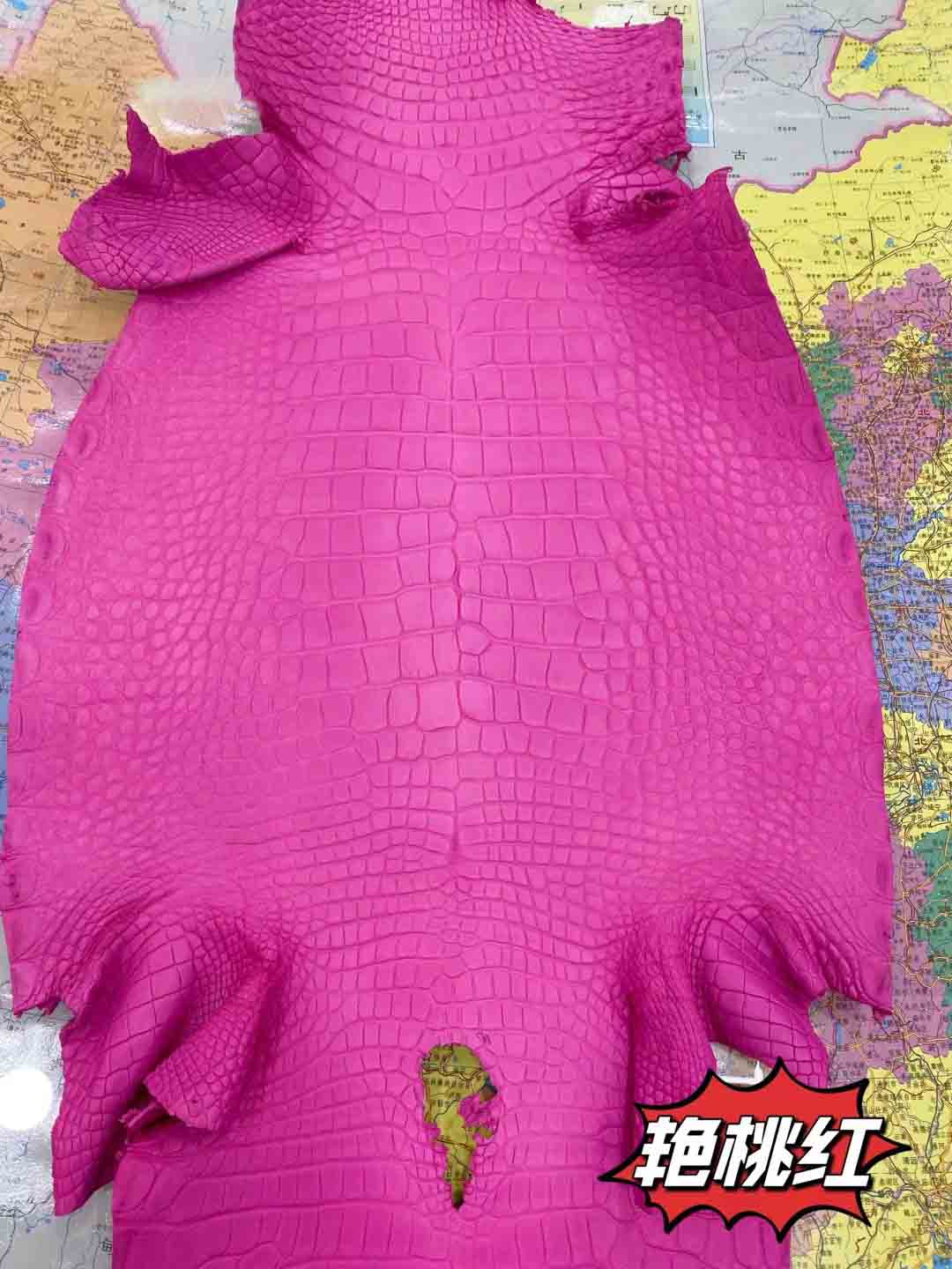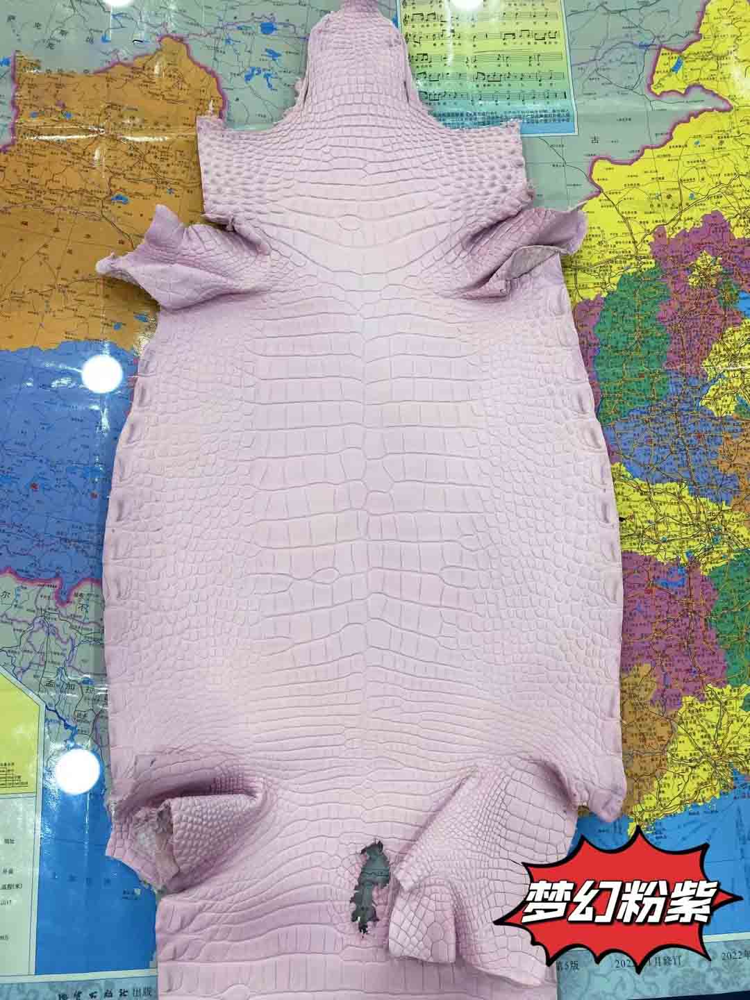 美洲鳄一般就是指密西西比鳄短吻鳄。其气质竹节纹整齐漂亮,与圆纹部分界线清晰,圆纹密集而且比较小。没有气孔,泄殖孔上方有明显裂痕,气孔和裂痕是这个品种的重要标志。皮料适合做箱包,尤其适合制作小件皮具,优于其他品种,特别能体现出美洲鳄的魅力,尤其是制作表带,美洲短吻鳄是最好的皮料,虽然美洲短吻鳄鱼皮价格仅次于湾鳄,但在市场上也是相当昂贵高档的鳄鱼皮。