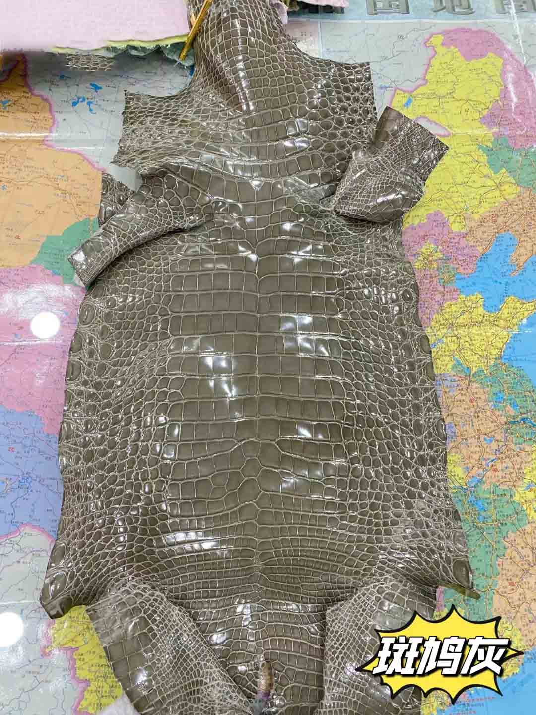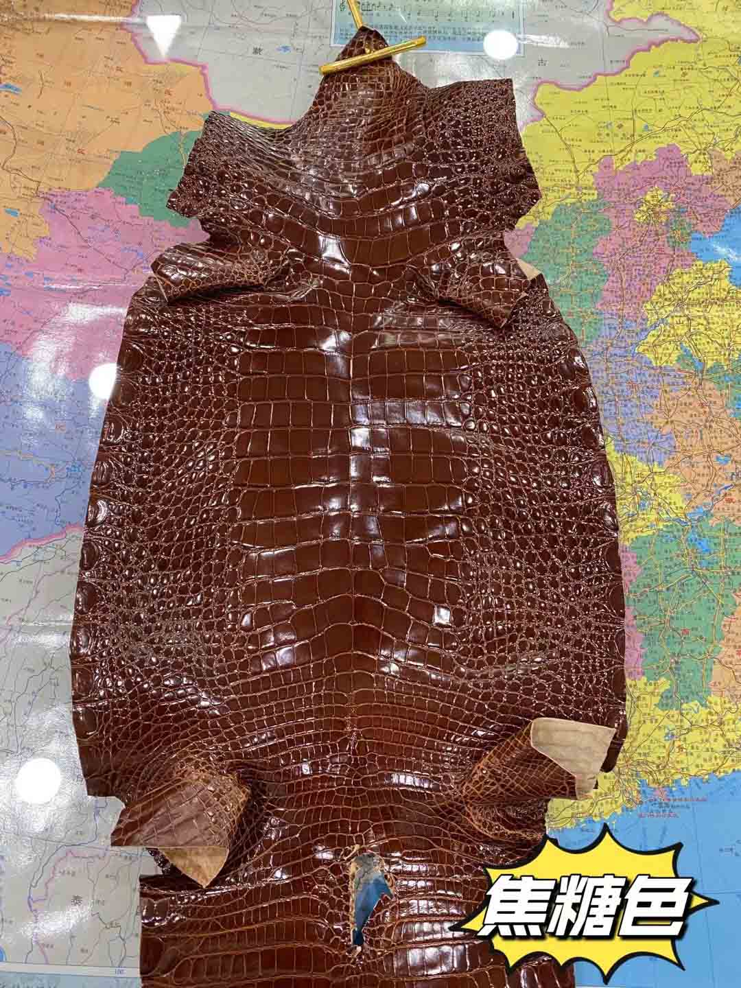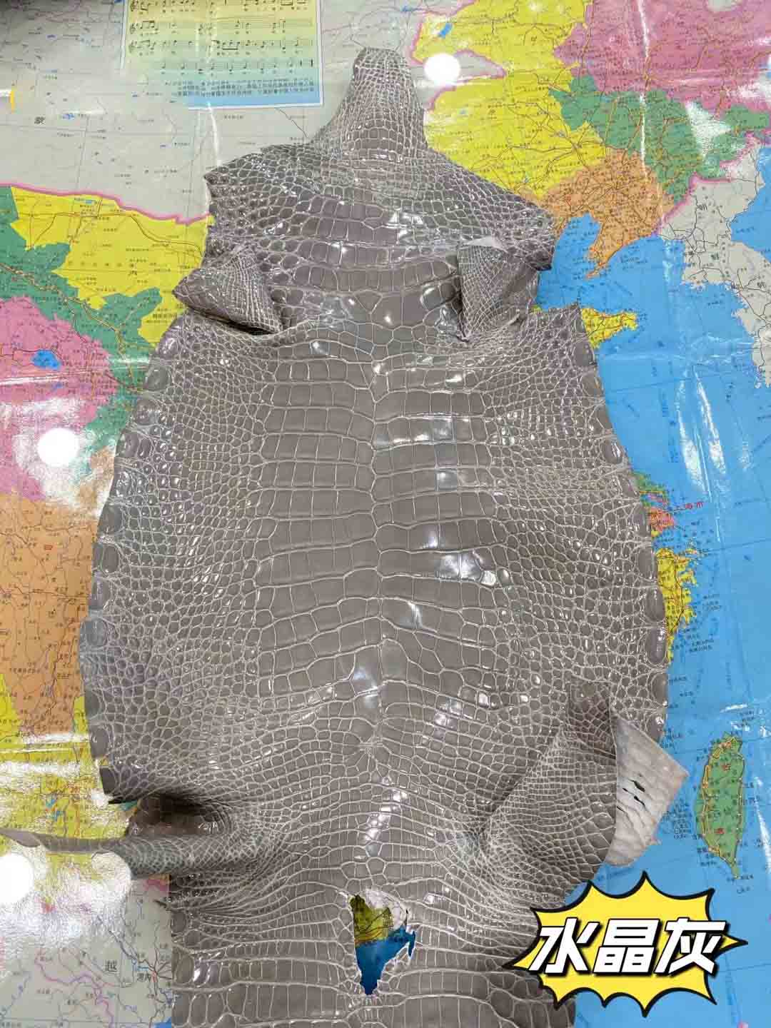 美洲鳄鱼皮他是非常稀有高档的皮料,他和其他鳄鱼皮品种最大的区别是没有气孔。