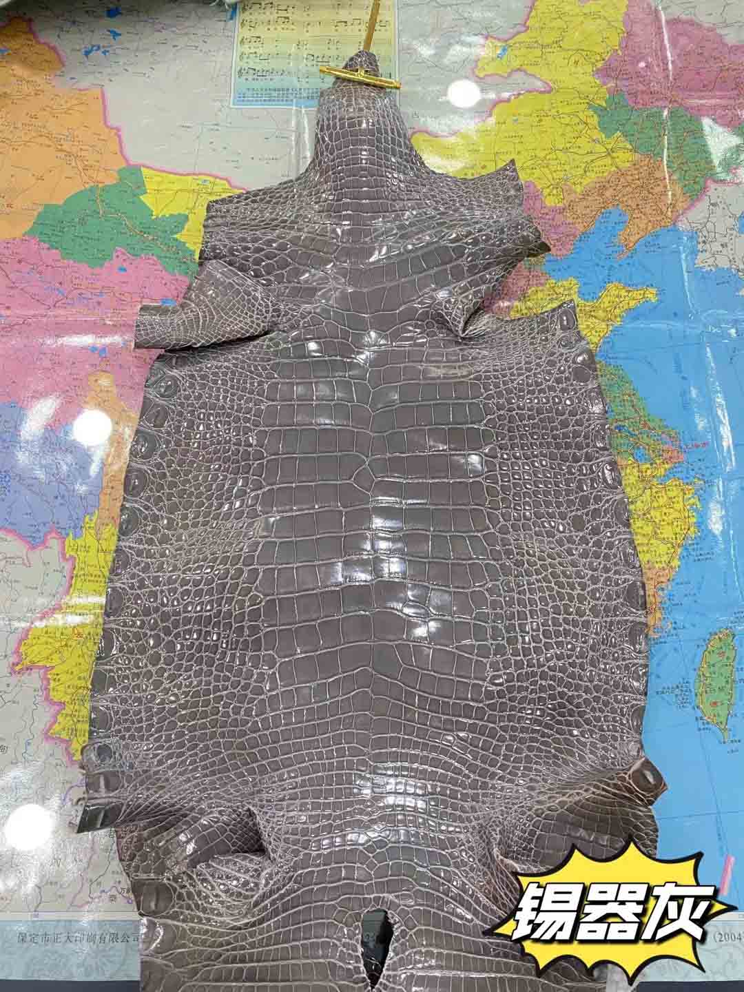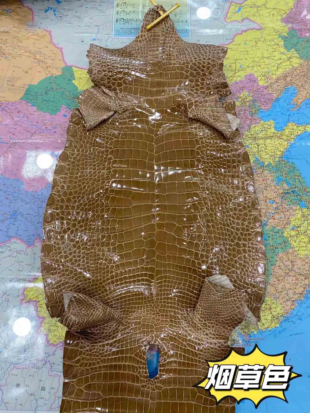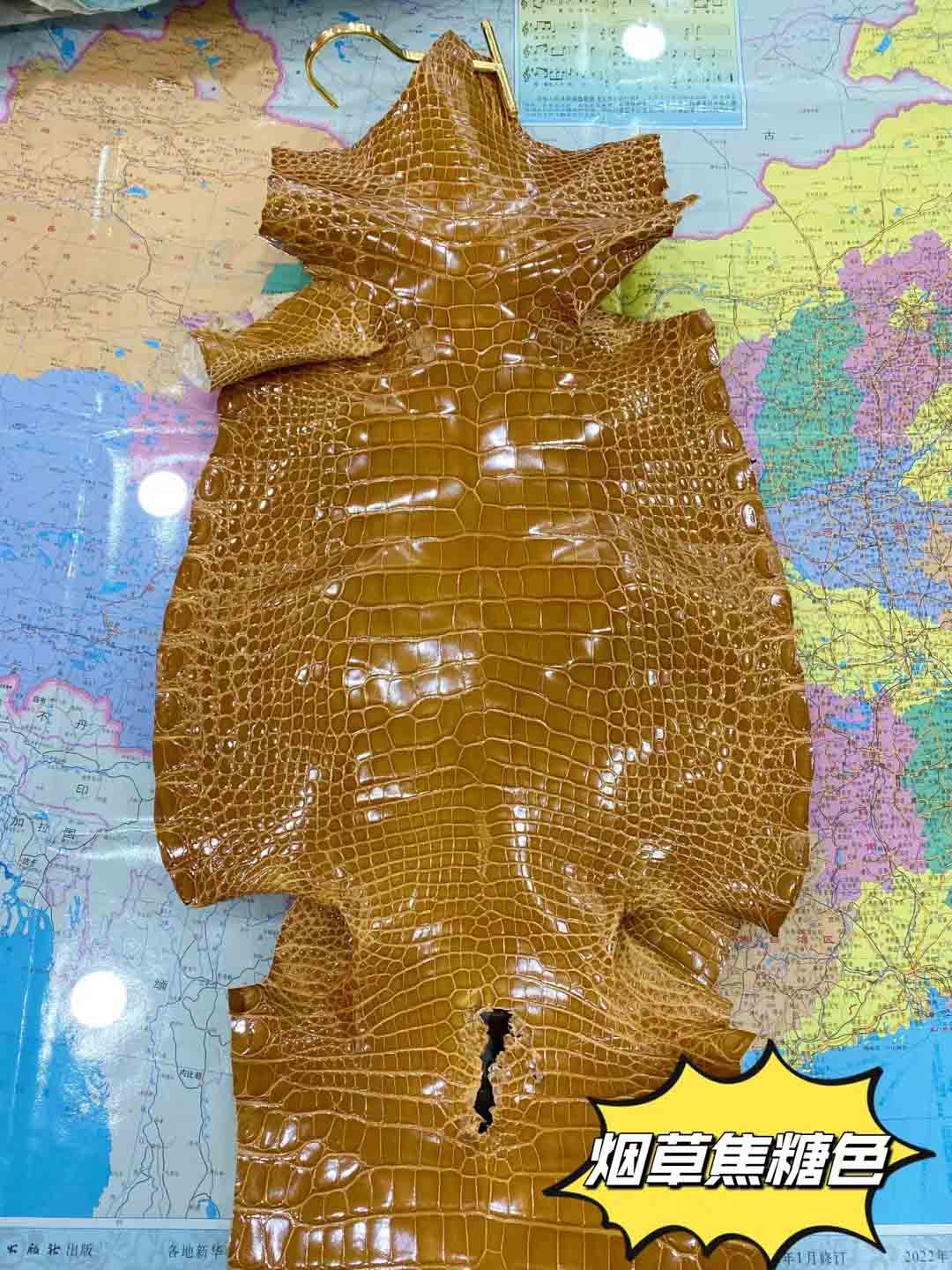 美洲鳄鱼皮他是非常稀有高档的皮料,他和其他鳄鱼皮品种最大的区别是没有气孔。