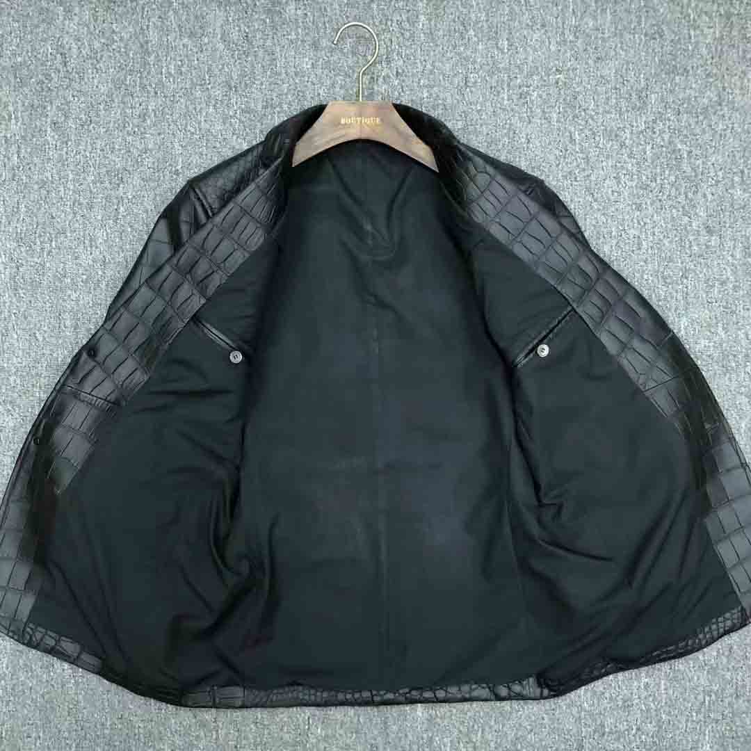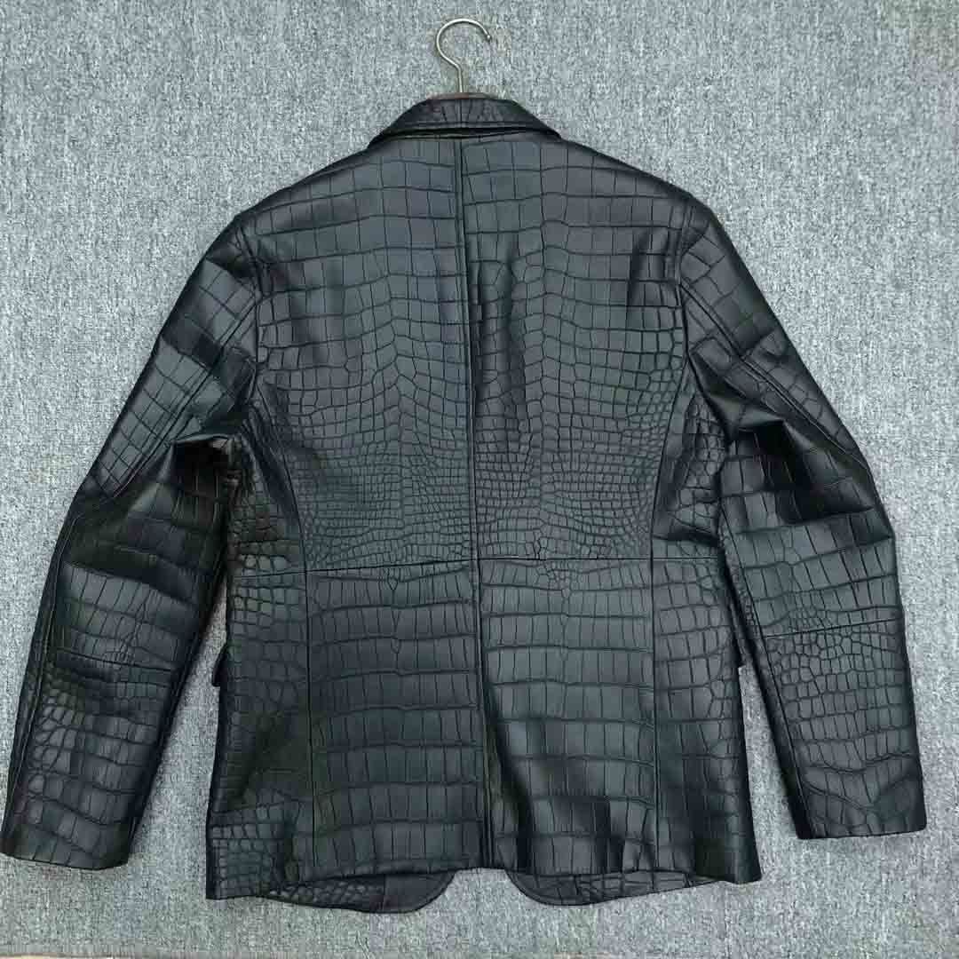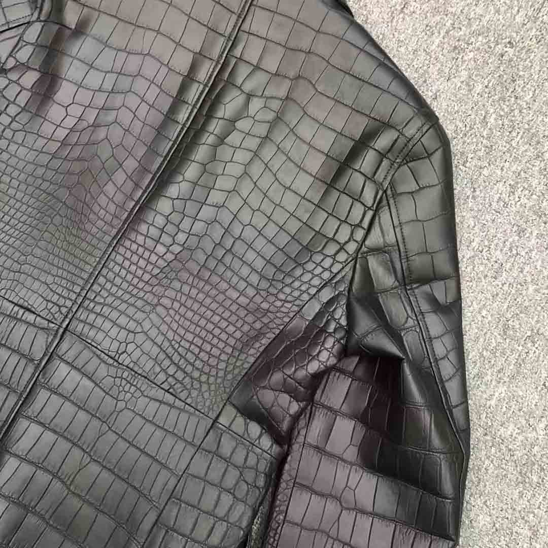 之所以称之为鳄鱼皮衣,是因为所穿着的这一款黑色外套,皮质面料的纹路是比较特别的。常见的鳄鱼皮衣面料通常都是格外光滑的,穿着的这一款鳄鱼皮衣选择了鳄鱼皮衣,也是皮质包包中常见的一种纹路,鳄鱼皮衣相对来说会更加有精致优雅感,而不是休闲风。