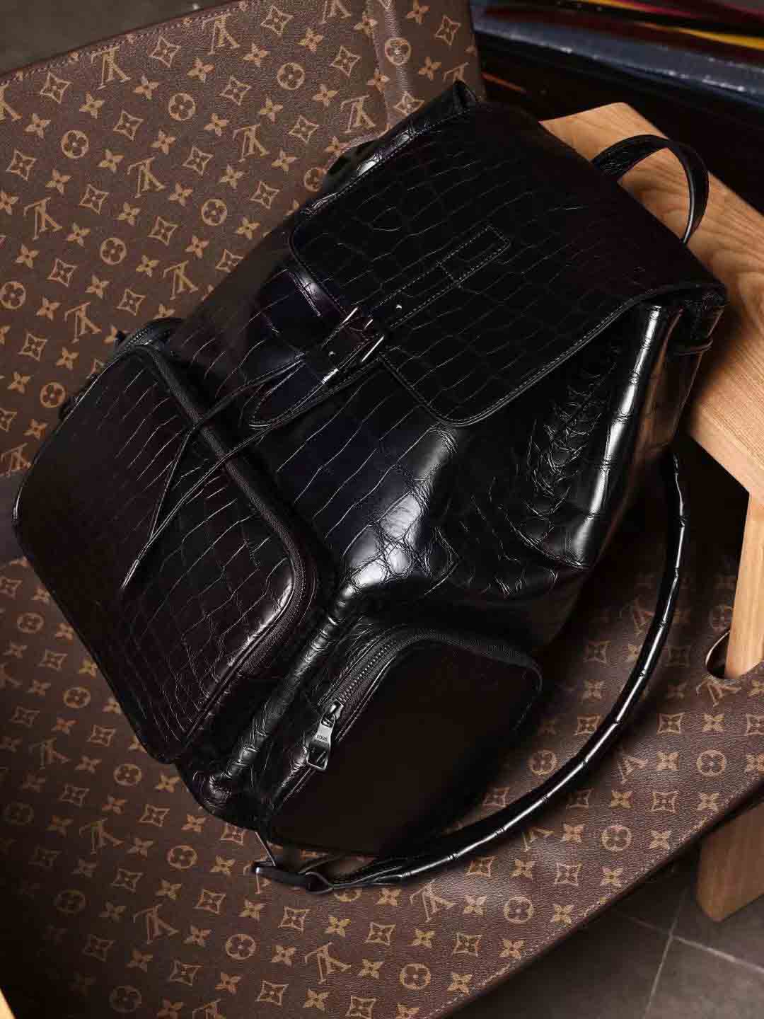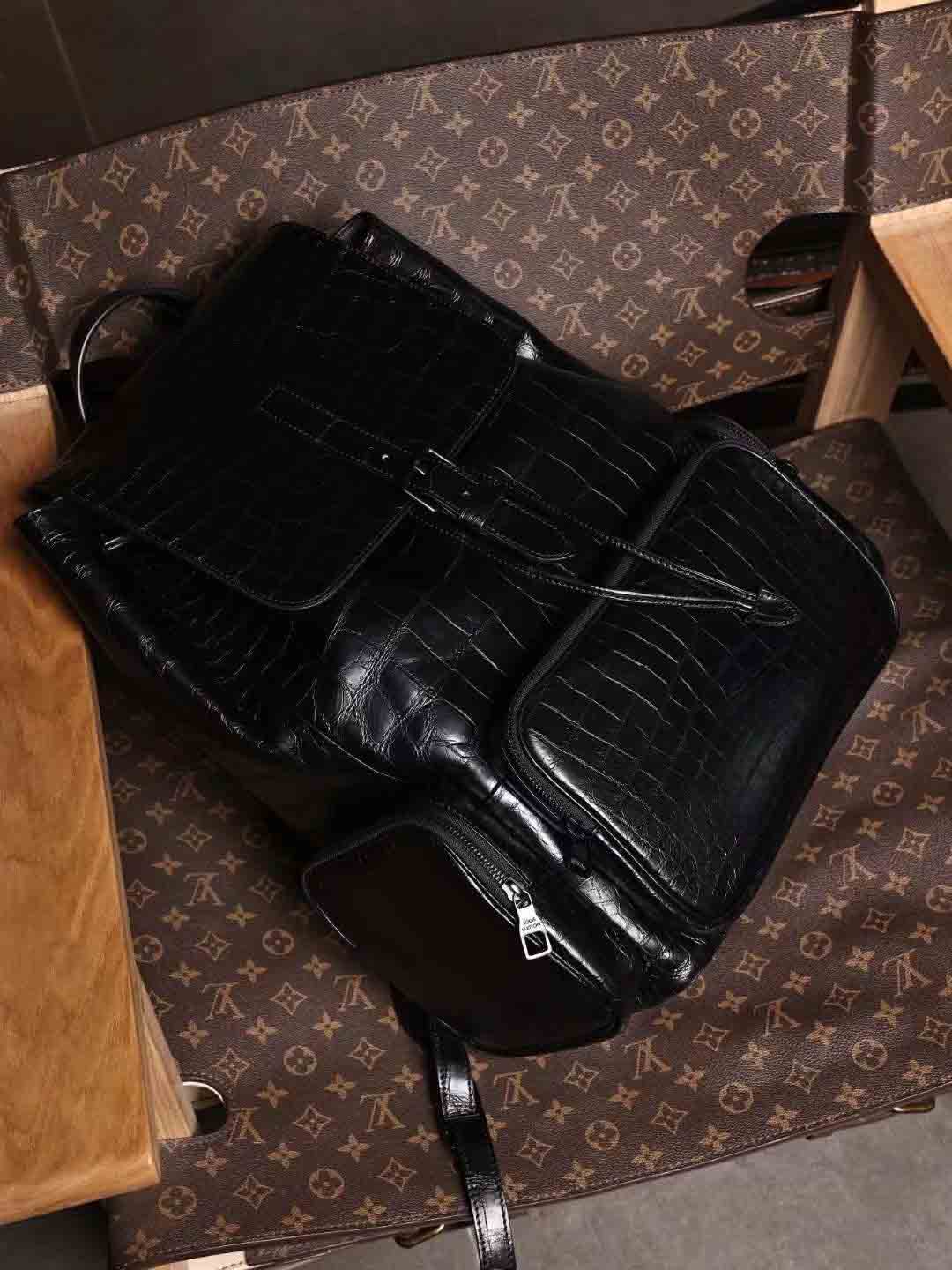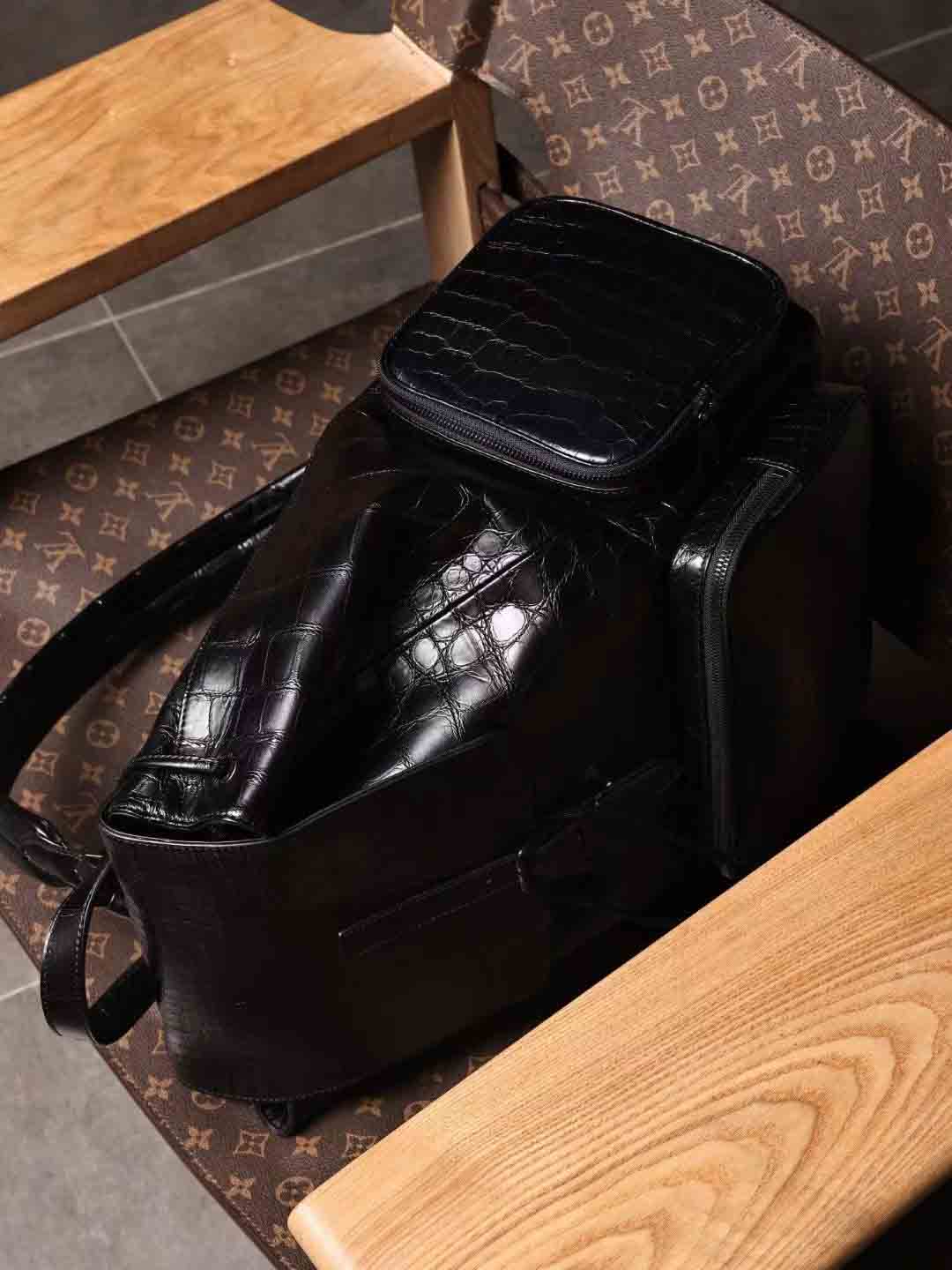Trio双肩背包,黑色中光柔软鳄鱼皮,实拍现货。