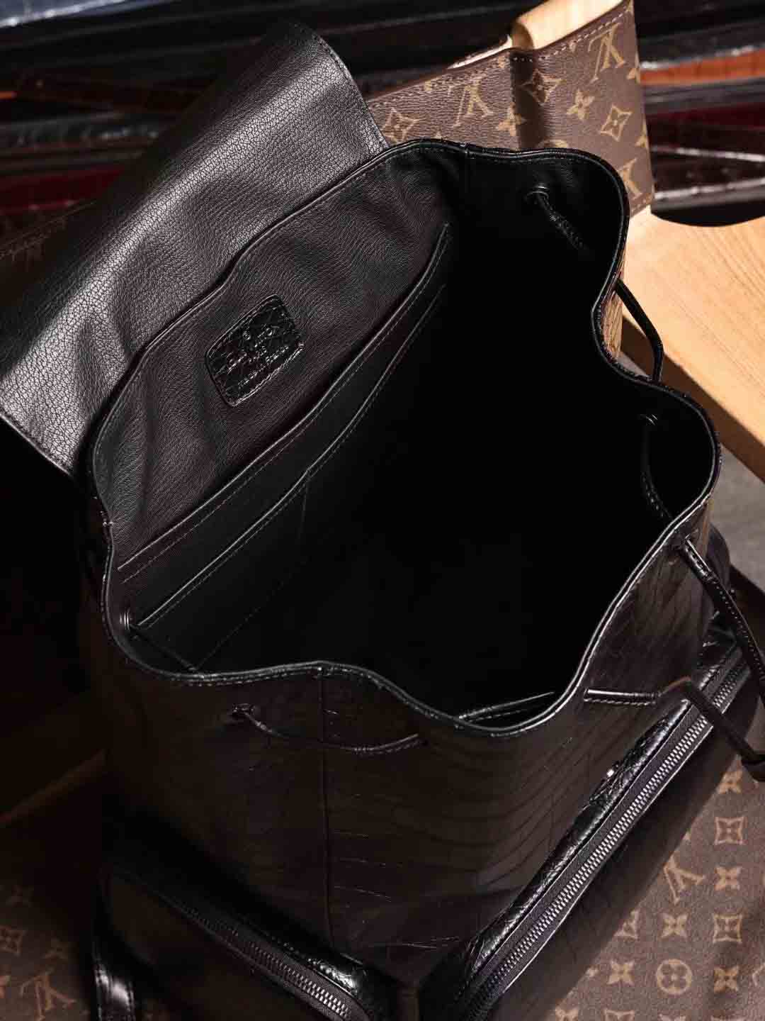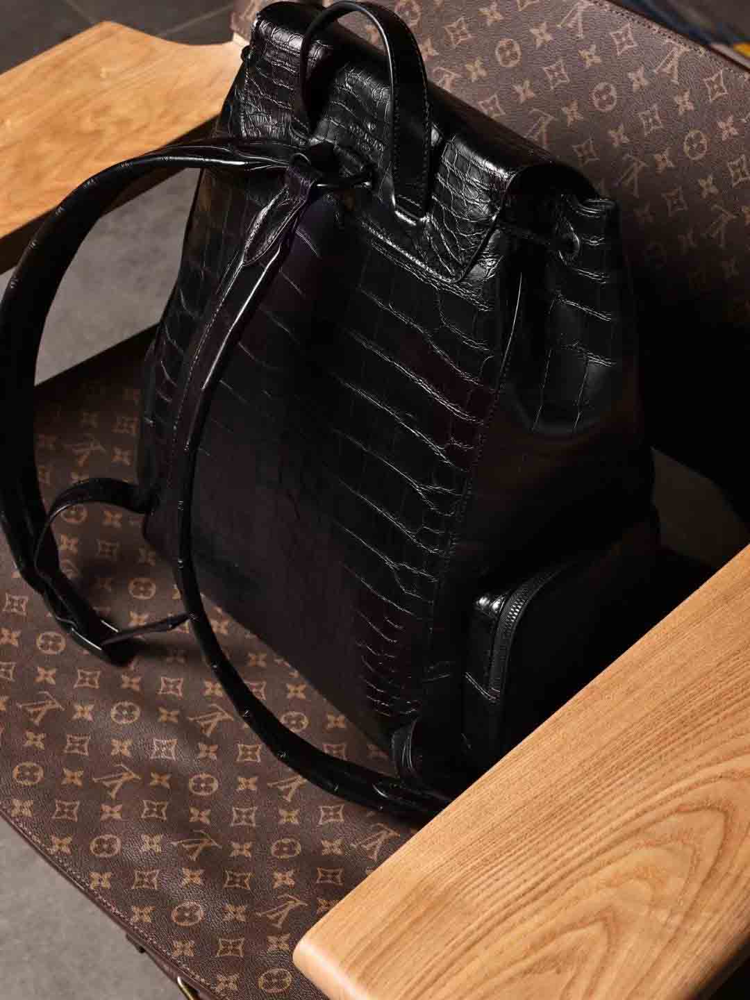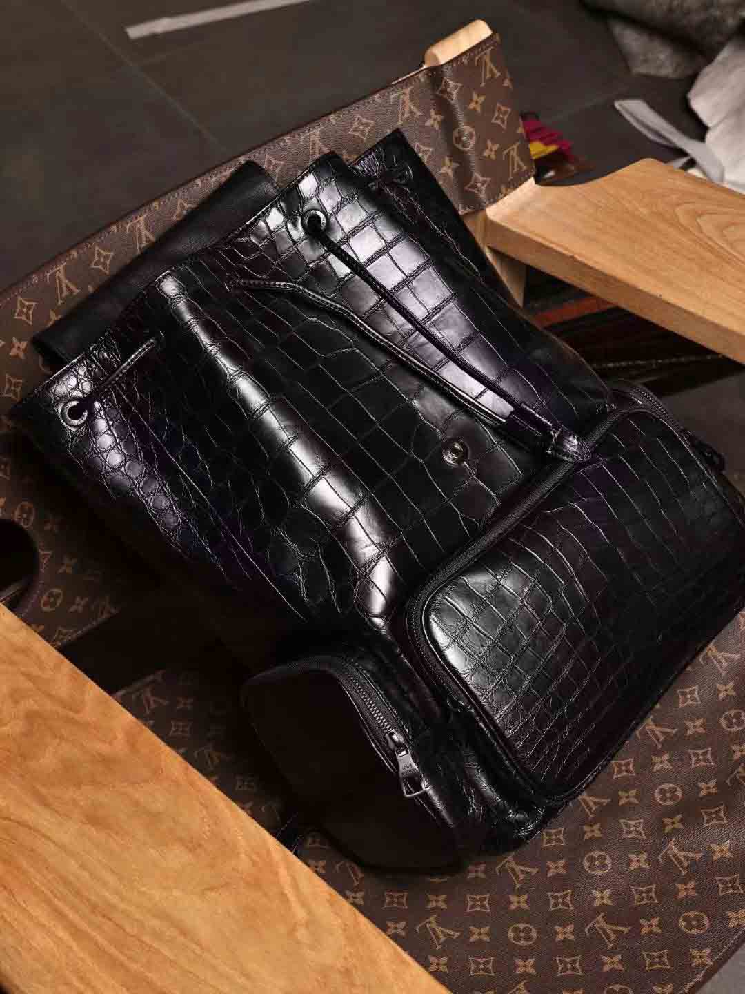 Trio双肩背包,黑色中光柔软鳄鱼皮,实拍现货。