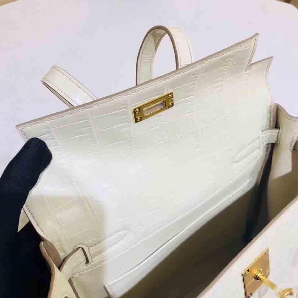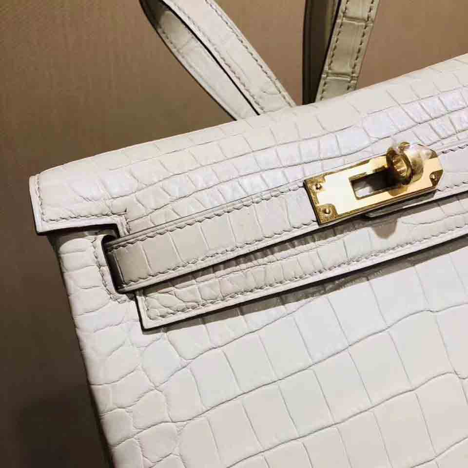 Kelly ado 尺寸22cm 尼罗鳄 雾面奶油白 全手缝蜡线缝制联系微信 95506803