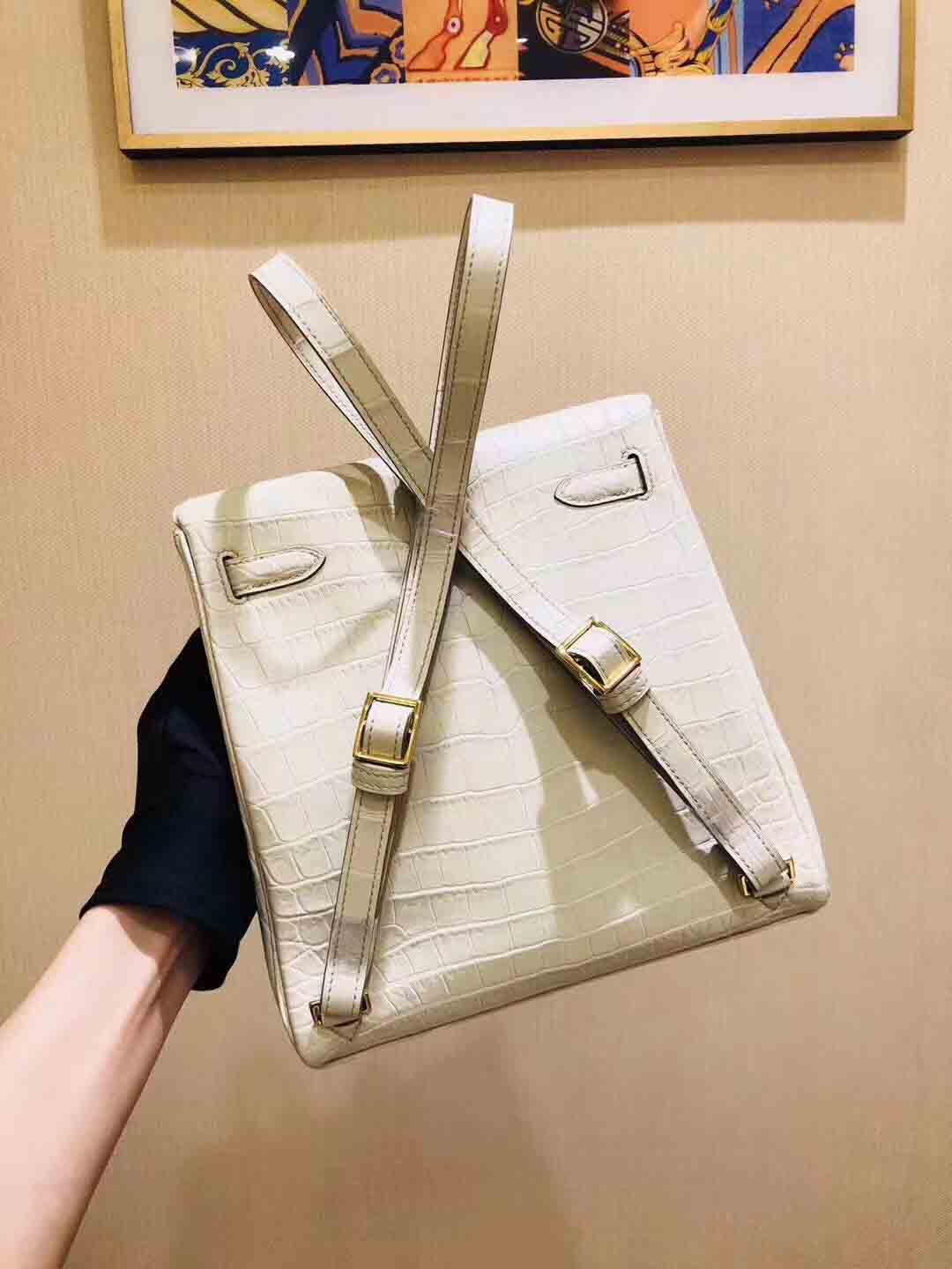 进口尼罗鳄Kelly Ado,凯莉双肩包完整制作。尼罗鳄:高档鳄鱼皮之一,有气孔,肚皮相比美洲鳄与湾鳄没有那么狭长,腹侧的圆纹最大,明显区别于其他品种。这一款Kelly Ado 绝对是值得入手的一款双肩包,它的优点可多了能装,方便、夏天沙滩旅游释放双手、最主要它颜值高,特别适合出差旅行kelly ado肩带处可调节长短,一般用尼罗鳄皮,个子娇小的女生也能轻松驾驭,并且这款包不分季节,全年都适合。