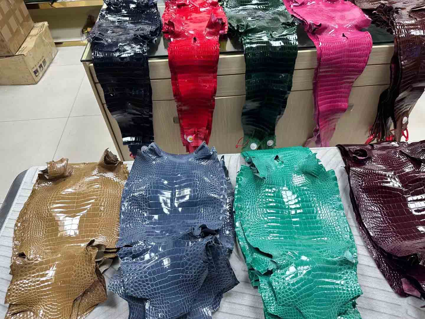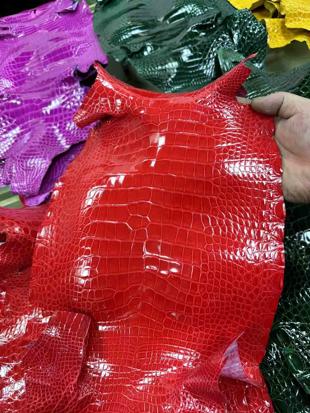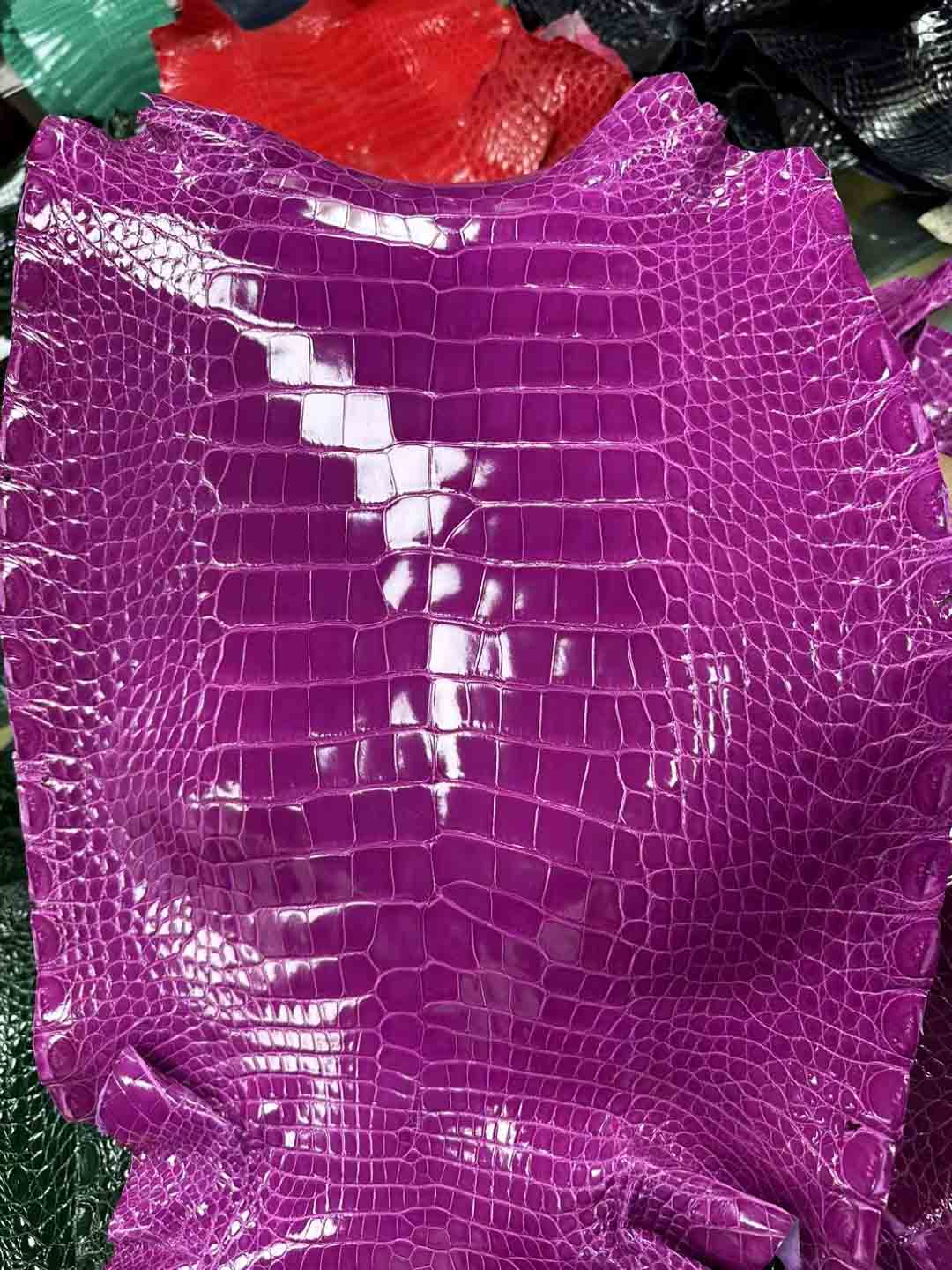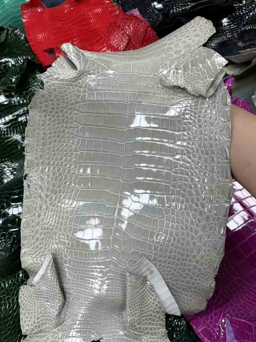 玛瑙打磨高光美洲鳄鱼皮,可以做皮带男女大包铂金。鳄鱼肚皮经过鞣制染色之后,做成了各种颜色,但是没有亮度,要达到光亮效果,必须用玛瑙进行打磨抛光,也增加了皮的柔软性,做出来的产品也是光彩夺目,非常漂亮!