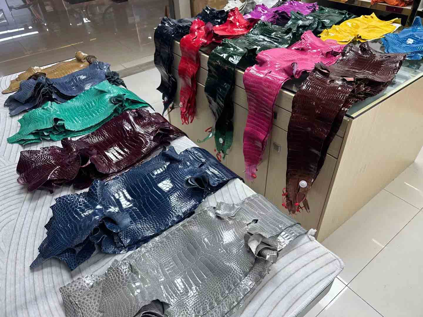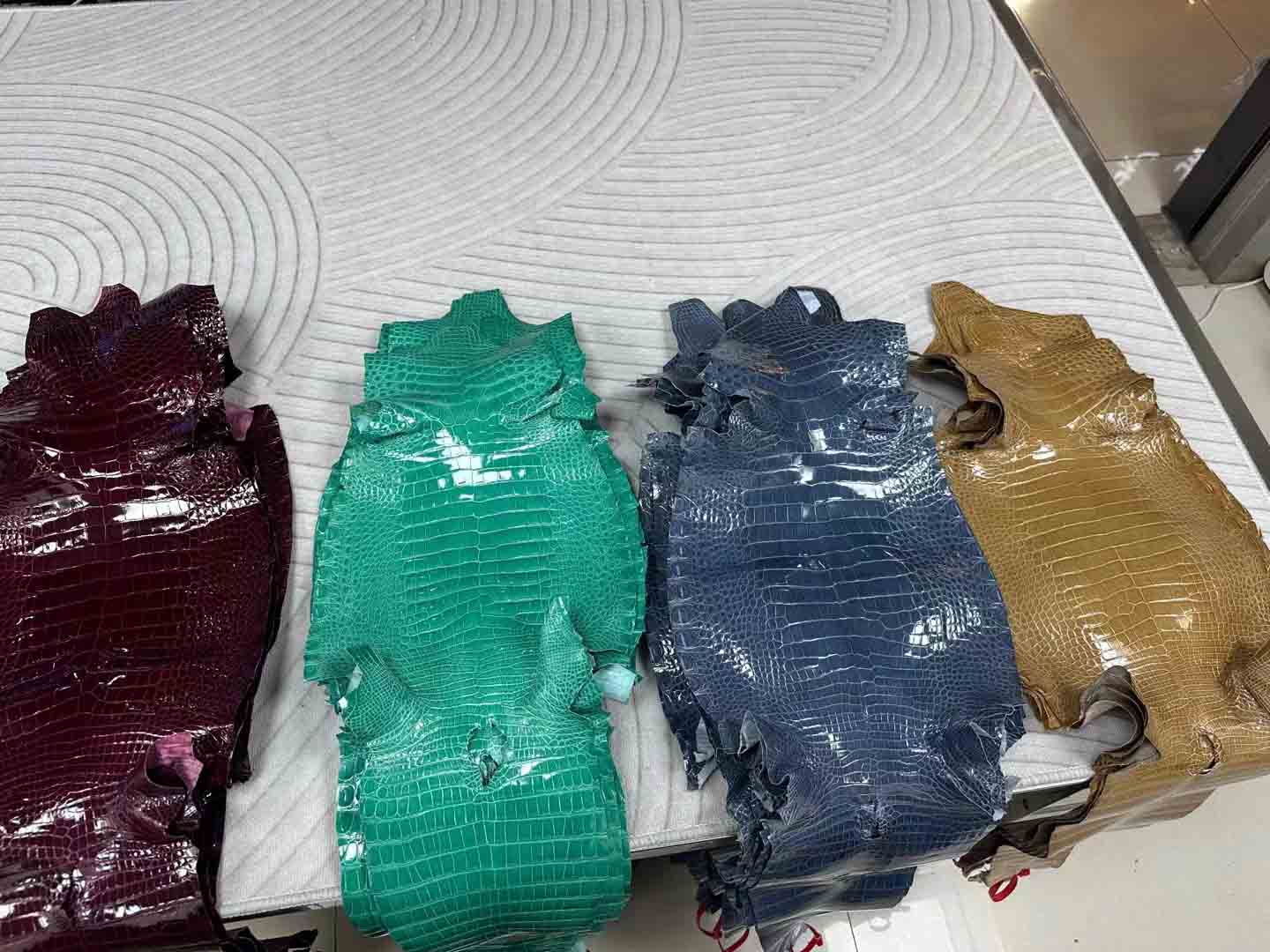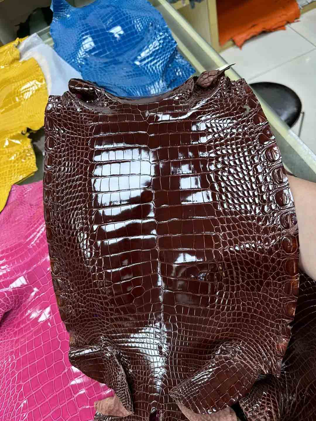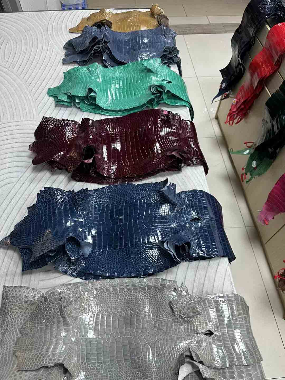玛瑙打磨高光美洲鳄鱼皮,可以做皮带男女大包铂金。鳄鱼肚皮经过鞣制染色之后,做成了各种颜色,但是没有亮度,要达到光亮效果,必须用玛瑙进行打磨抛光,也增加了皮的柔软性,做出来的产品也是光彩夺目,非常漂亮!