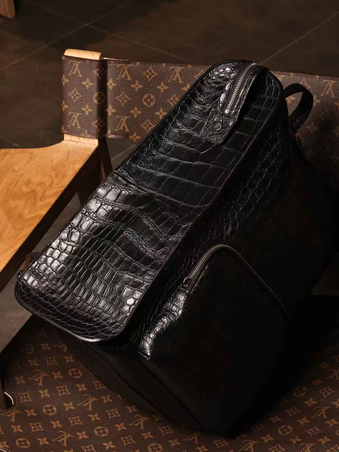 休闲双肩背包,油蜡亮光服装革鳄鱼皮旅行双肩包,很休闲的版型做法,客订出。