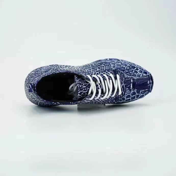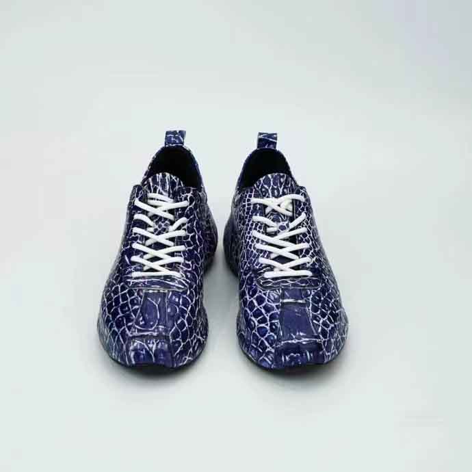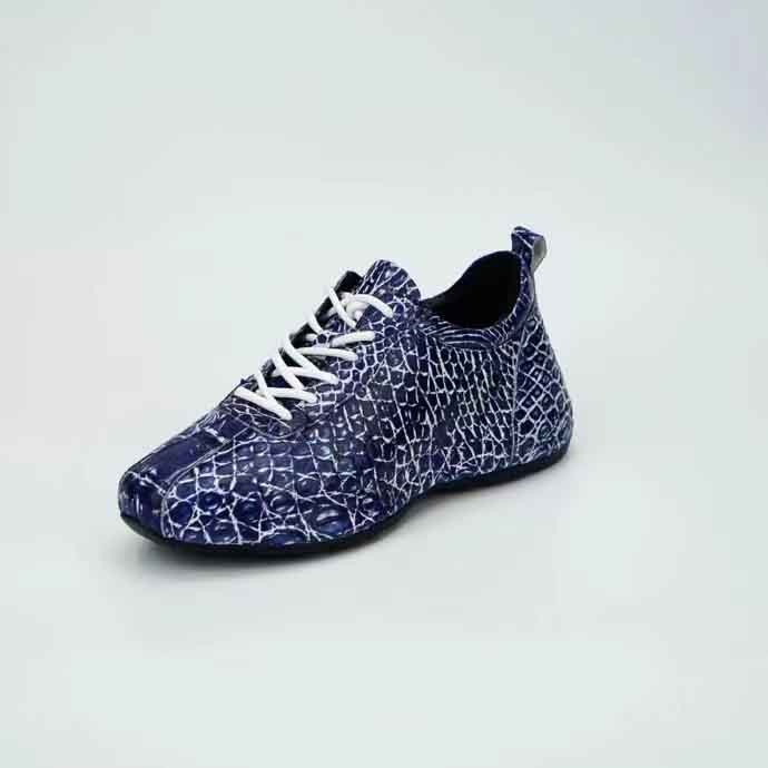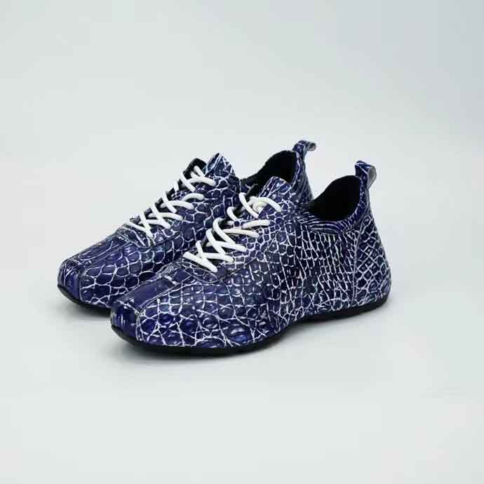 重现颜色自然蓝色鳄鱼皮擦色之美,使鳄鱼皮鞋子整体更加立体富有层次。