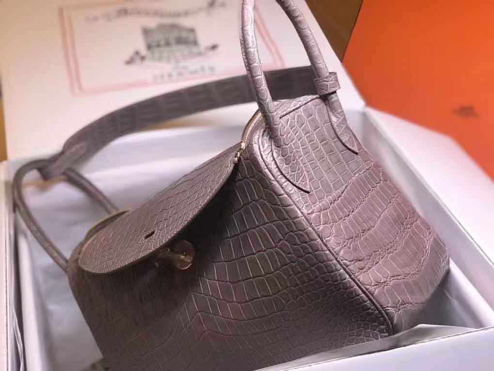 【客订】雾面灰色系鳄鱼手提包订做 lindy30,雾面尼罗鳄鱼皮单肩包定做厂家 微信联系 95506803