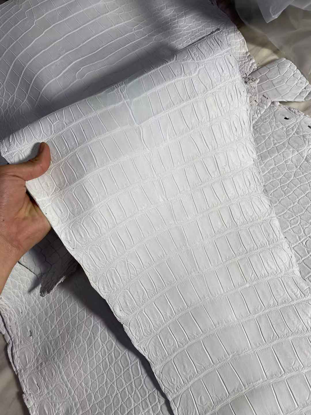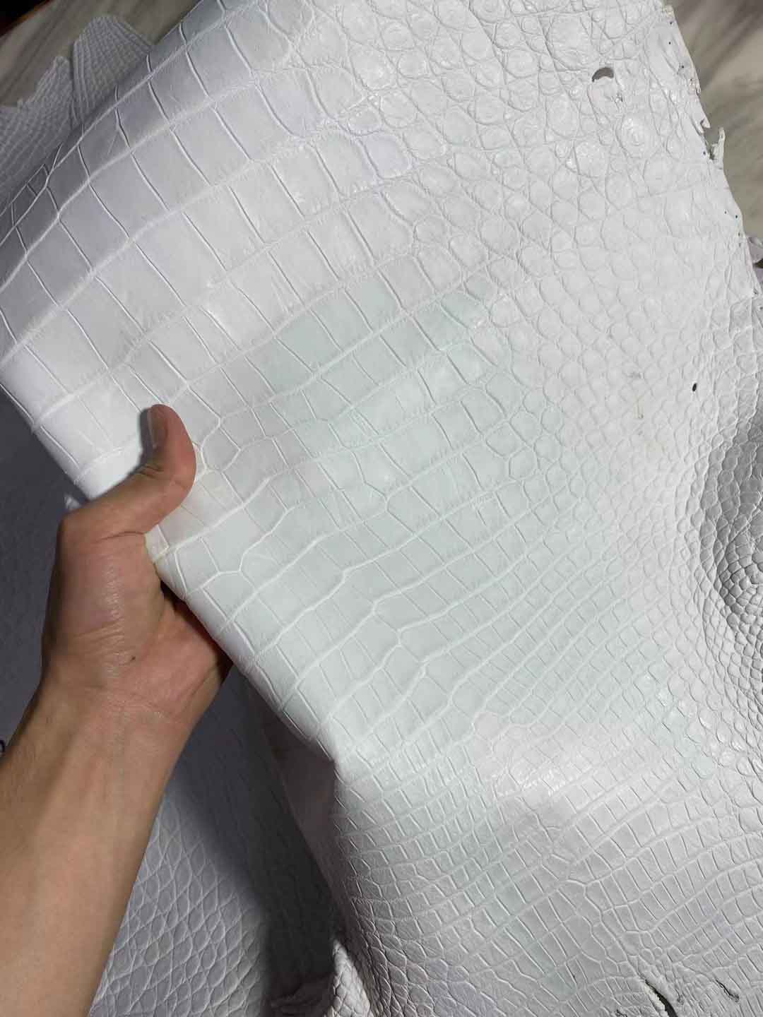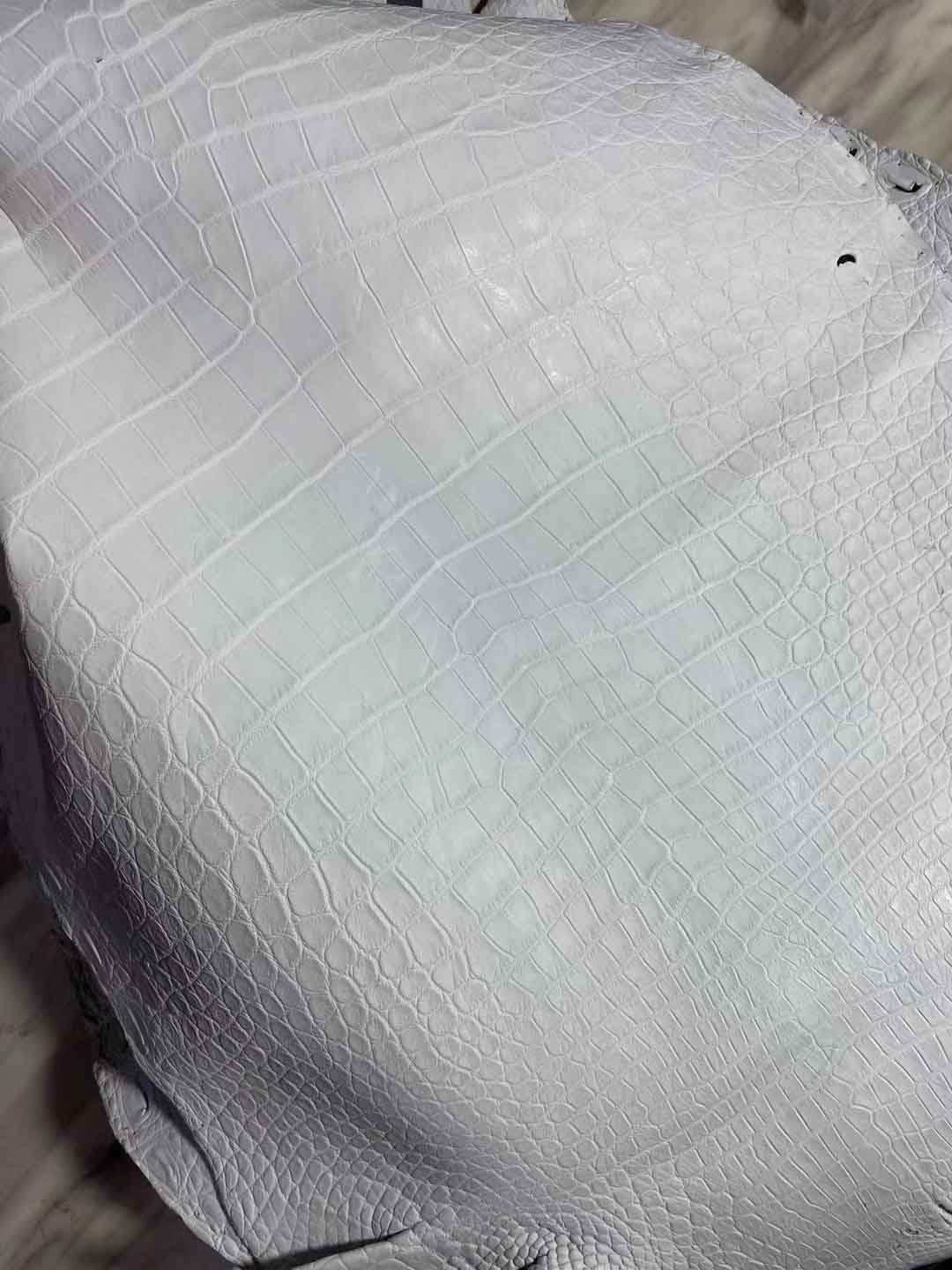 泰国混种鳄鱼白胚料,50cm左右大尺寸,小批量回货,皮面效果还是不错的。