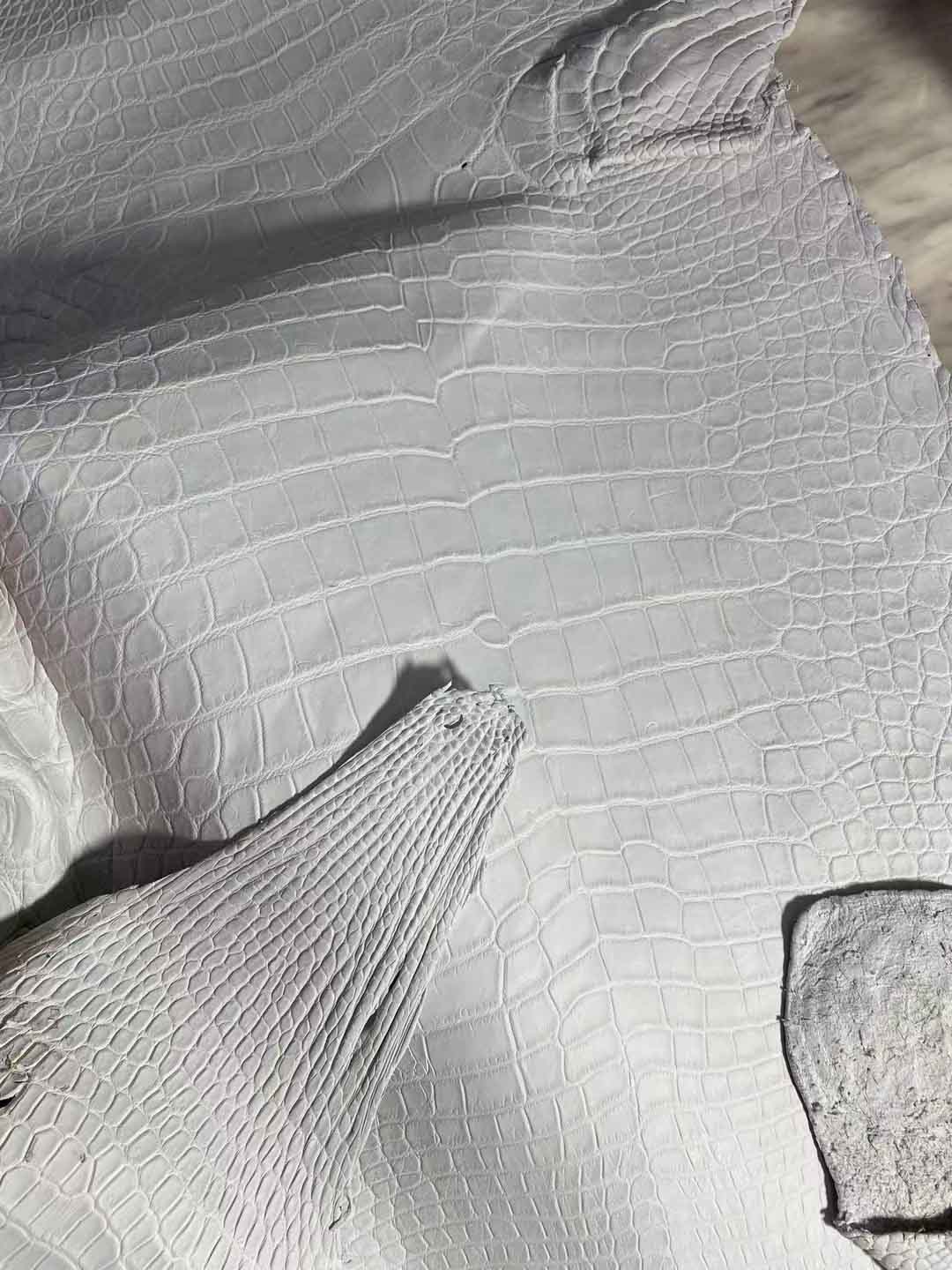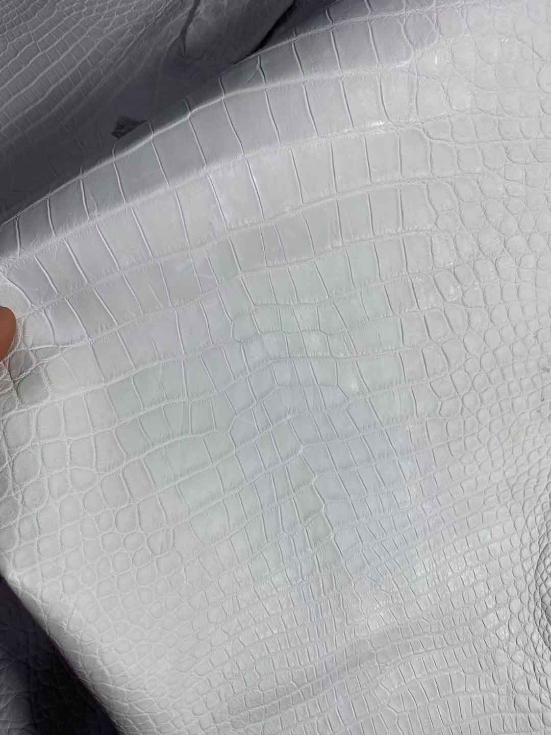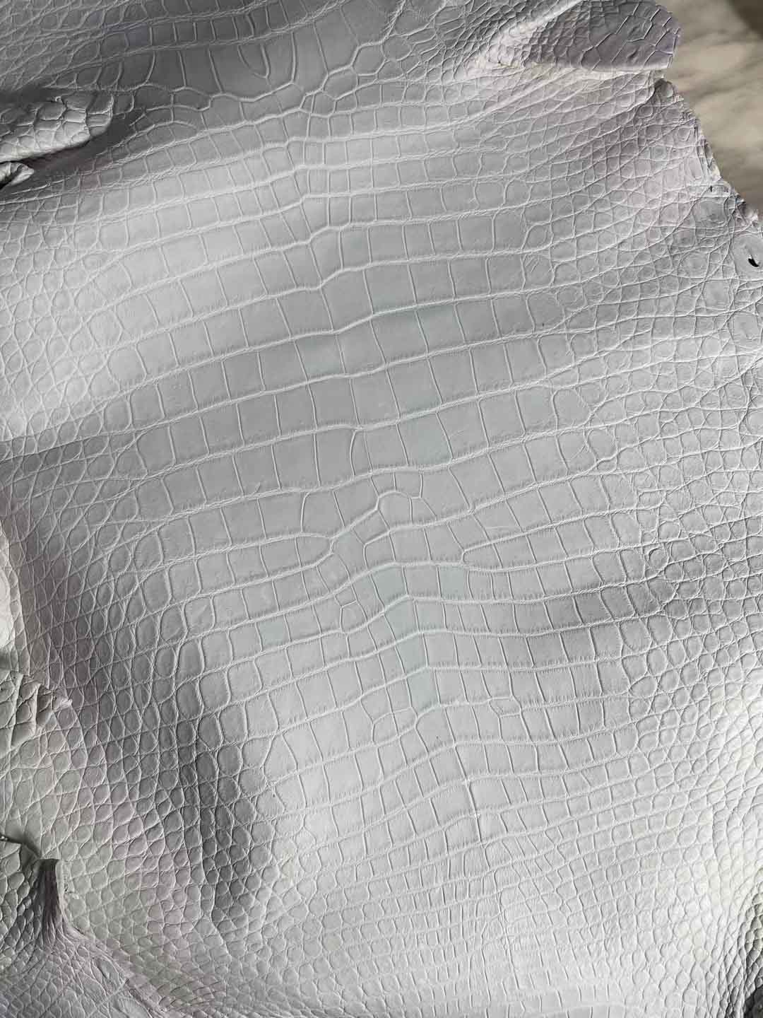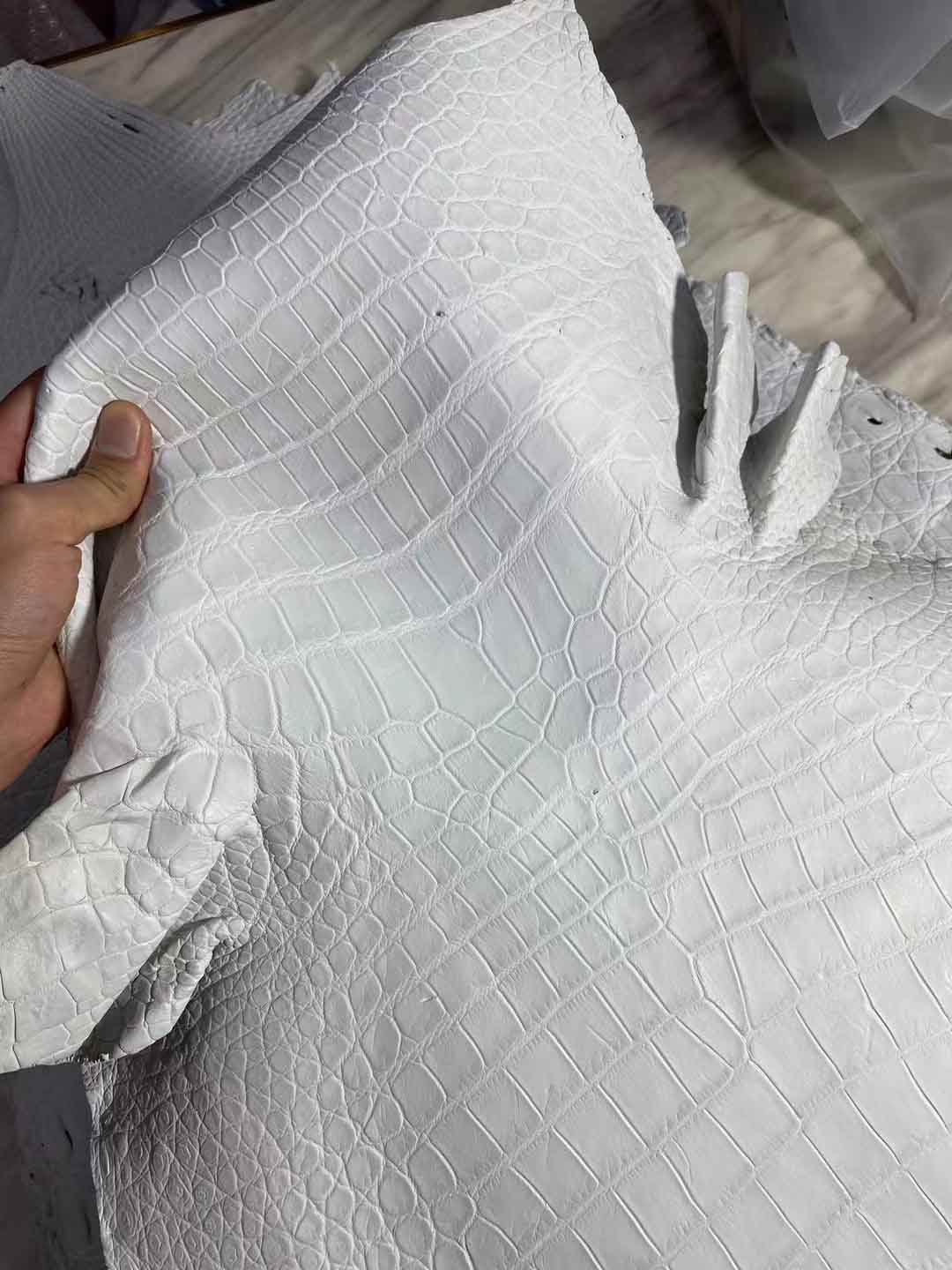 泰国混种鳄鱼白胚料,50cm左右大尺寸,小批量回货,皮面效果还是不错的。