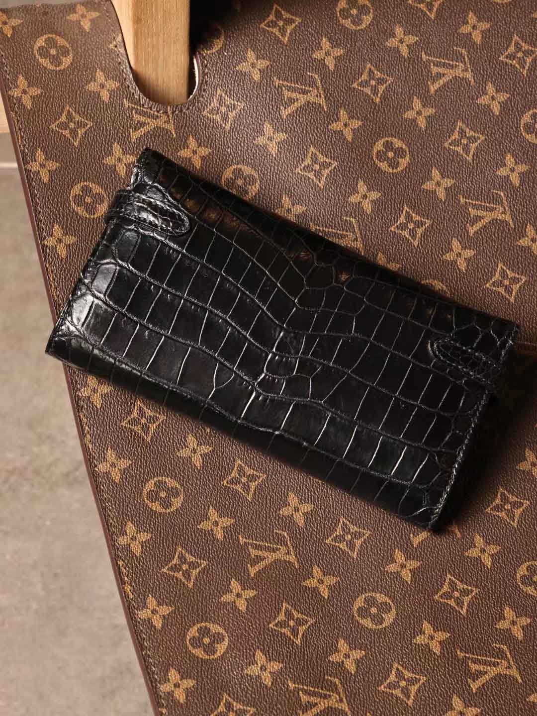鳄鱼皮大手包时髦,鳄鱼皮小手包典雅。雅致的手包,不管黑色的还是黑色鳄鱼皮手包,只要搭配得体,都会为其主人增光添彩,衬托出非凡气质。