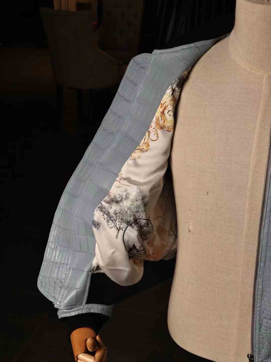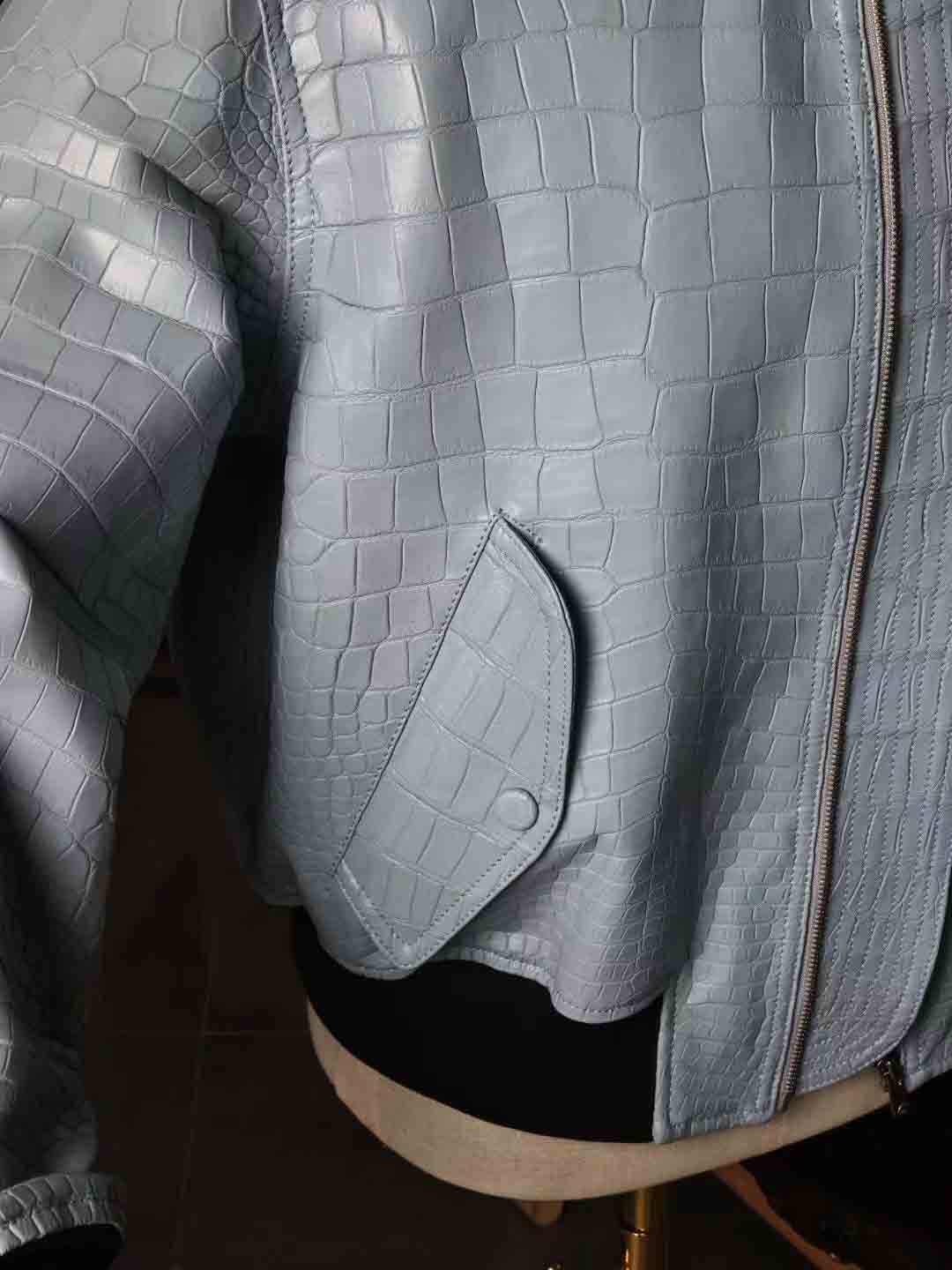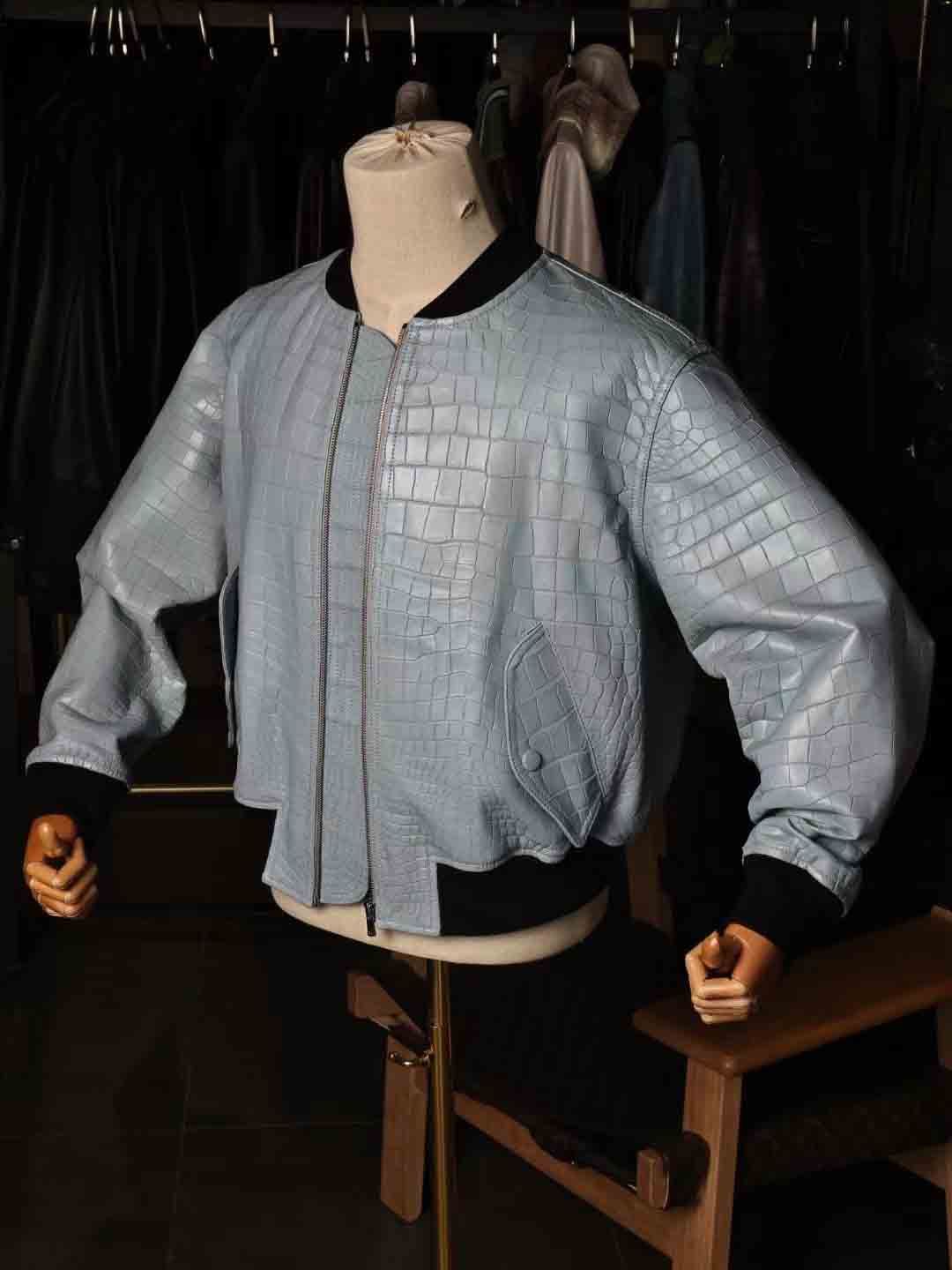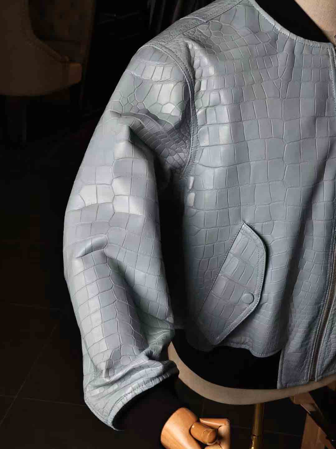 泡泡袖男女同款夹克,半腰短款,上身效果很棒,50码现货。鳄鱼皮泡泡袖皮夹克机车夹克订制预约微信 95506803