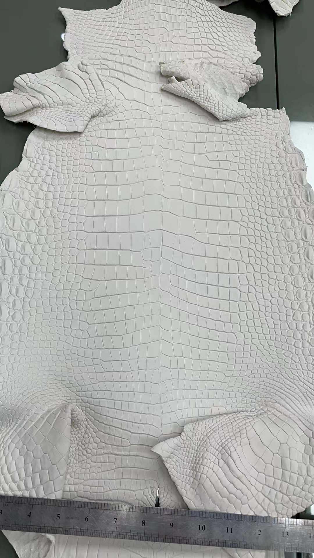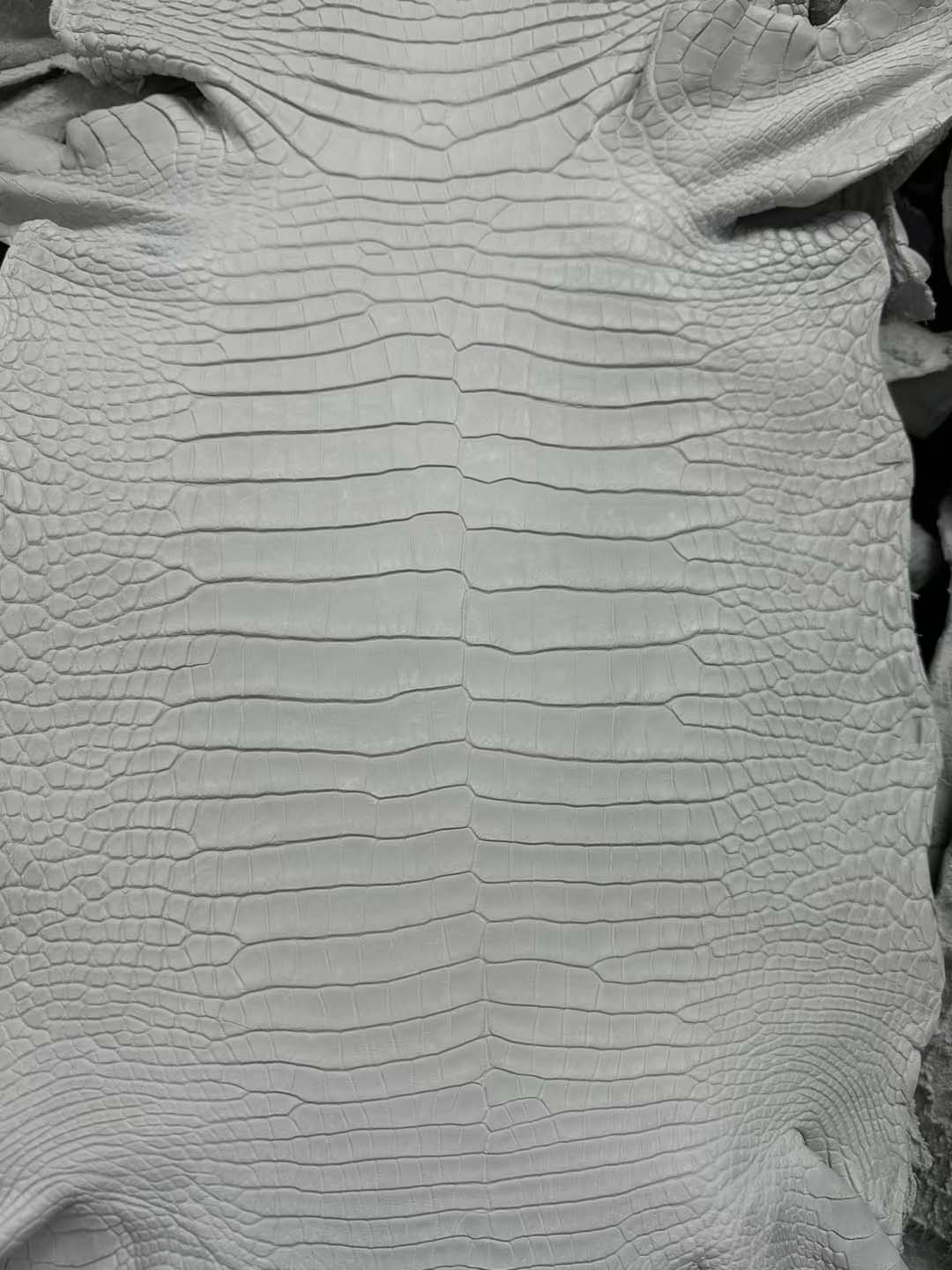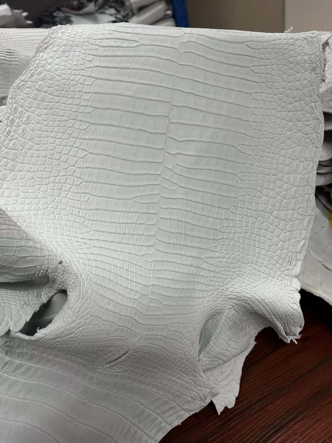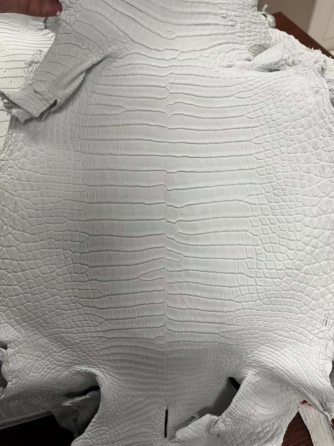 湾鳄数量稀少,它的皮质也是最优秀的,湾鳄的腹部花纹方格区域很宽,圆纹区域很少,鳞片中的小点(气孔)最明显,皮革细致柔软。