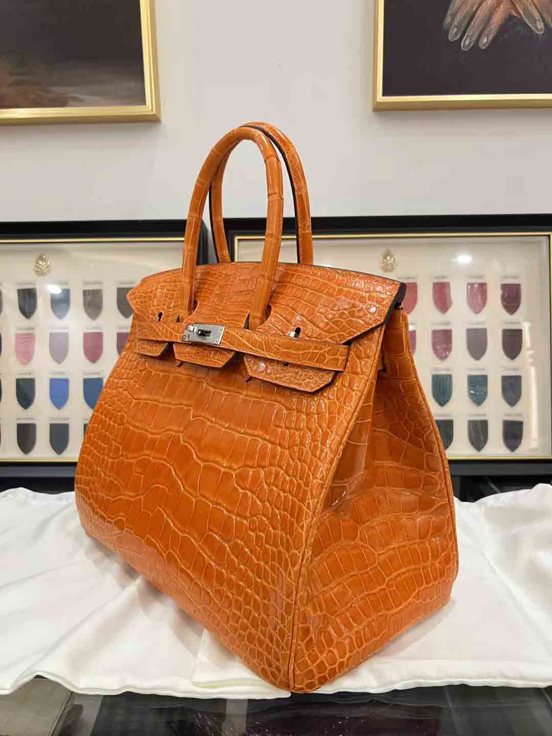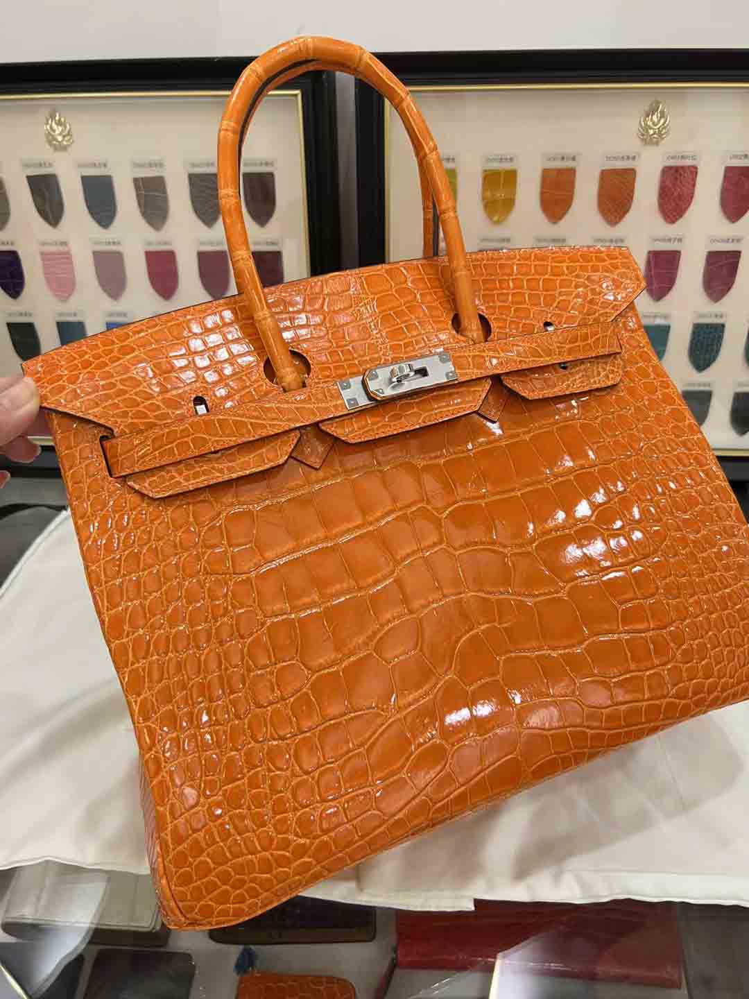 高光兴隆美洲鳄 birkin35 经典橙银扣