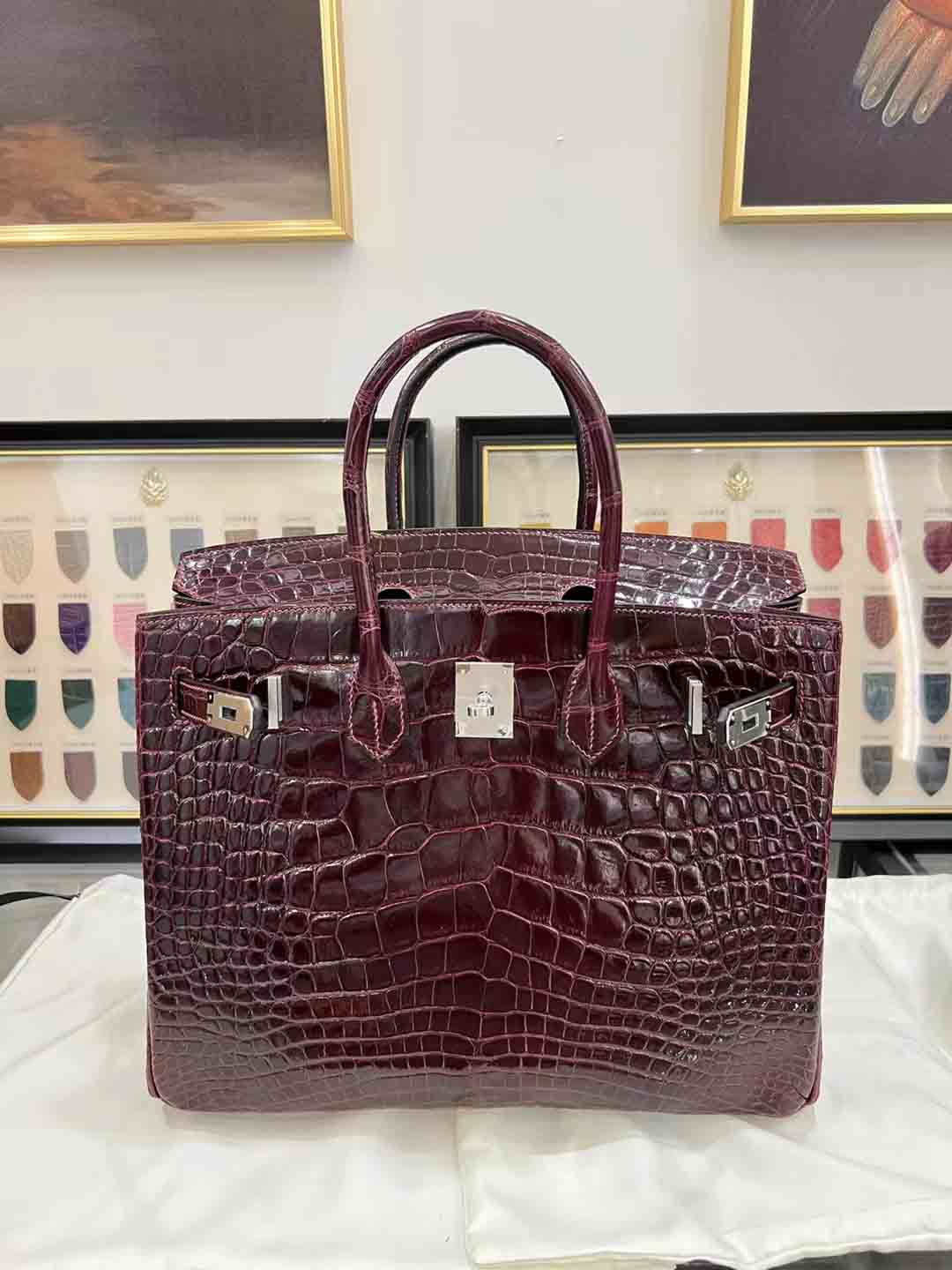 高光兴隆美洲鳄 birkin35 波尔多酒红银扣