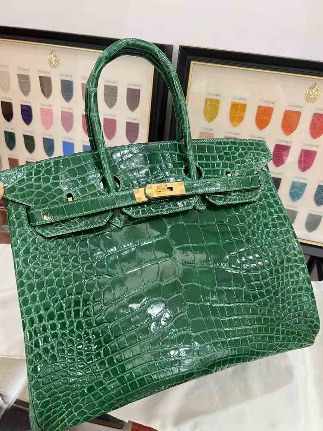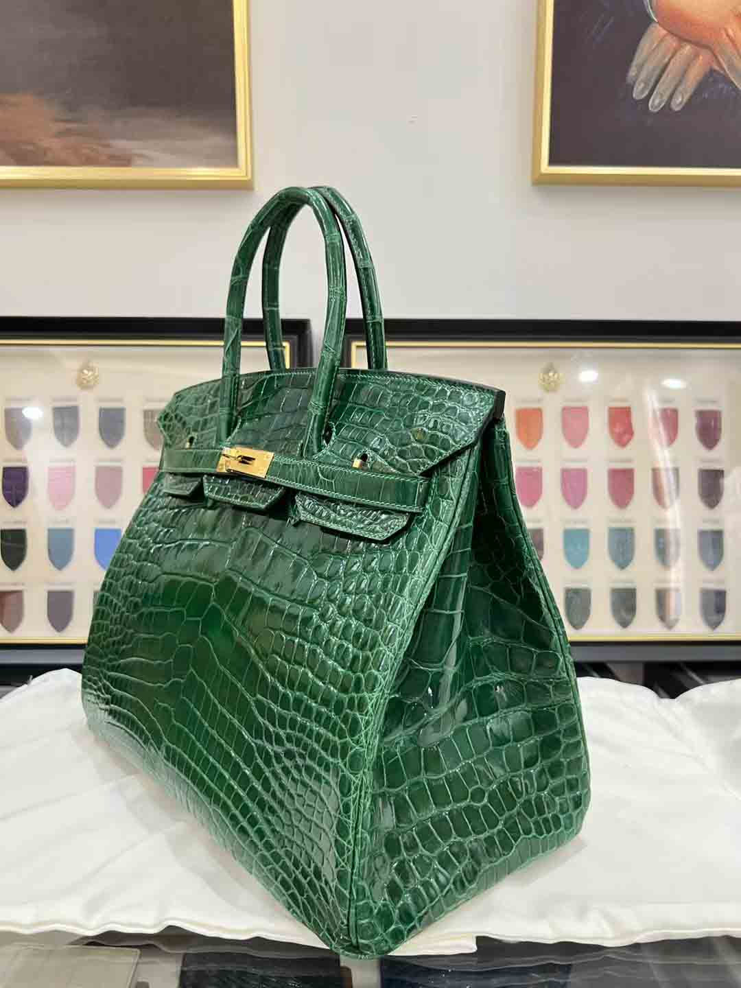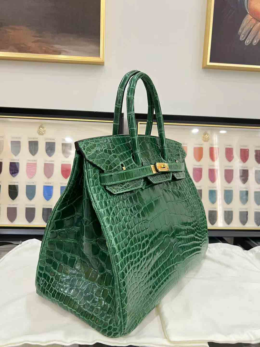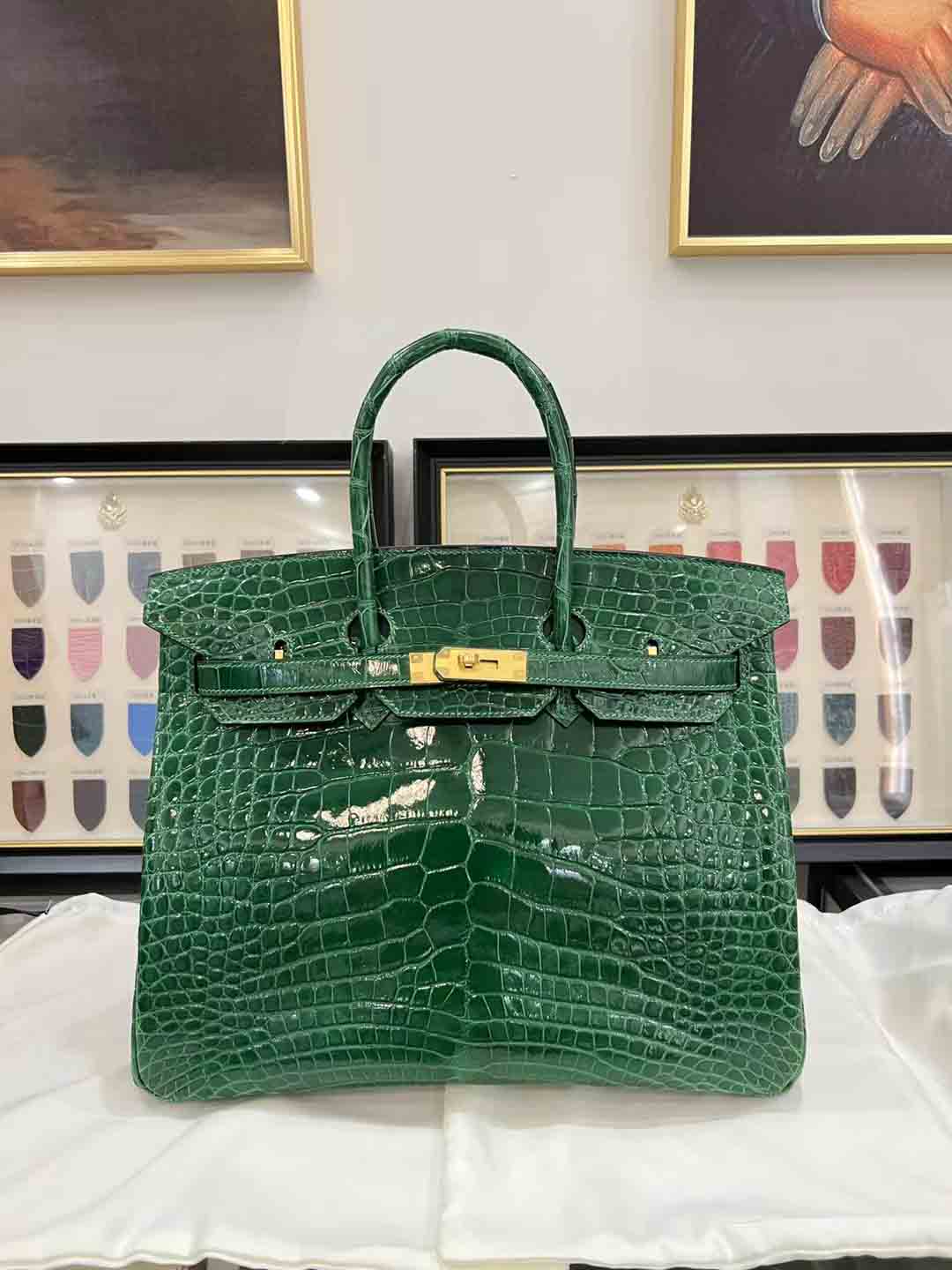 高光兴隆美洲鳄 birkin35 翡翠绿金扣