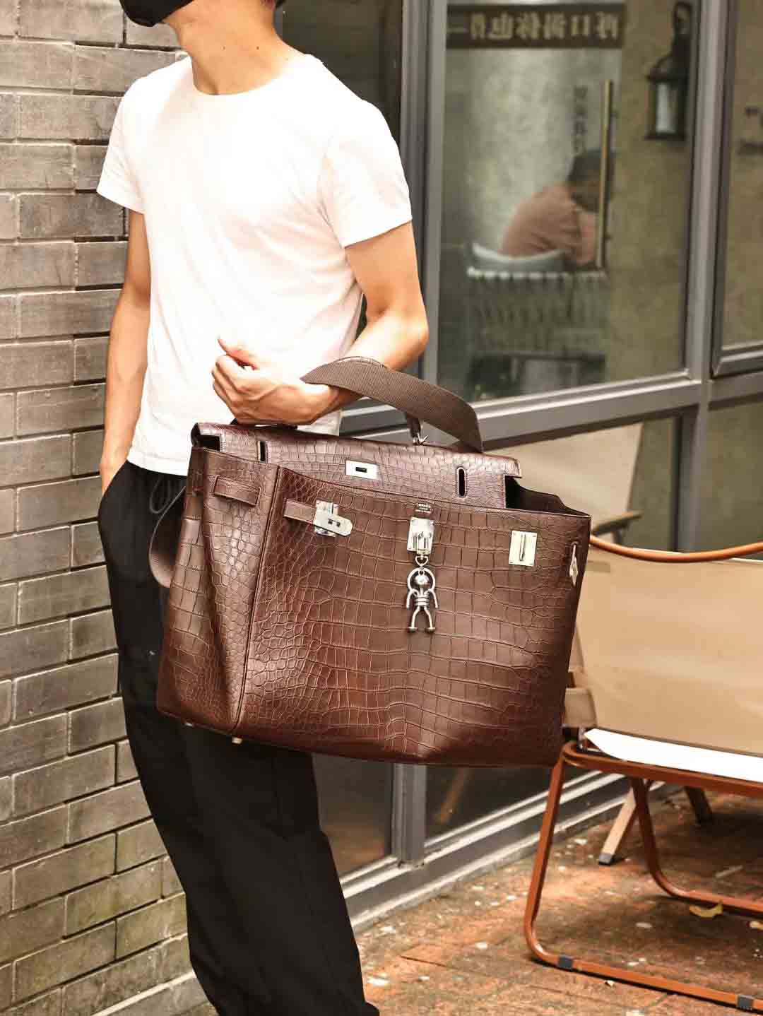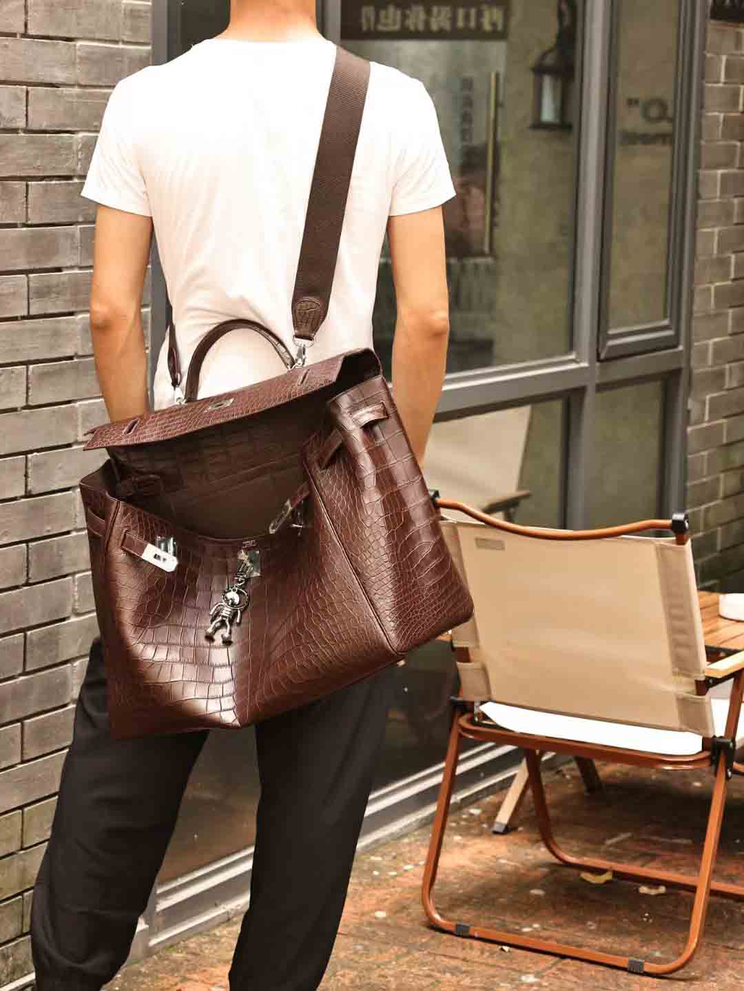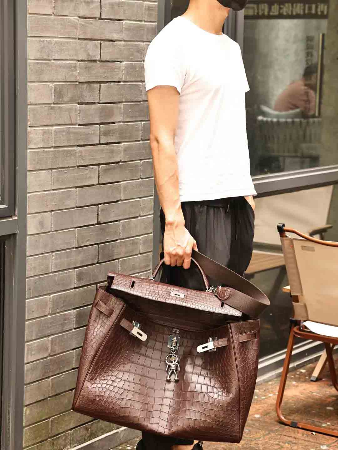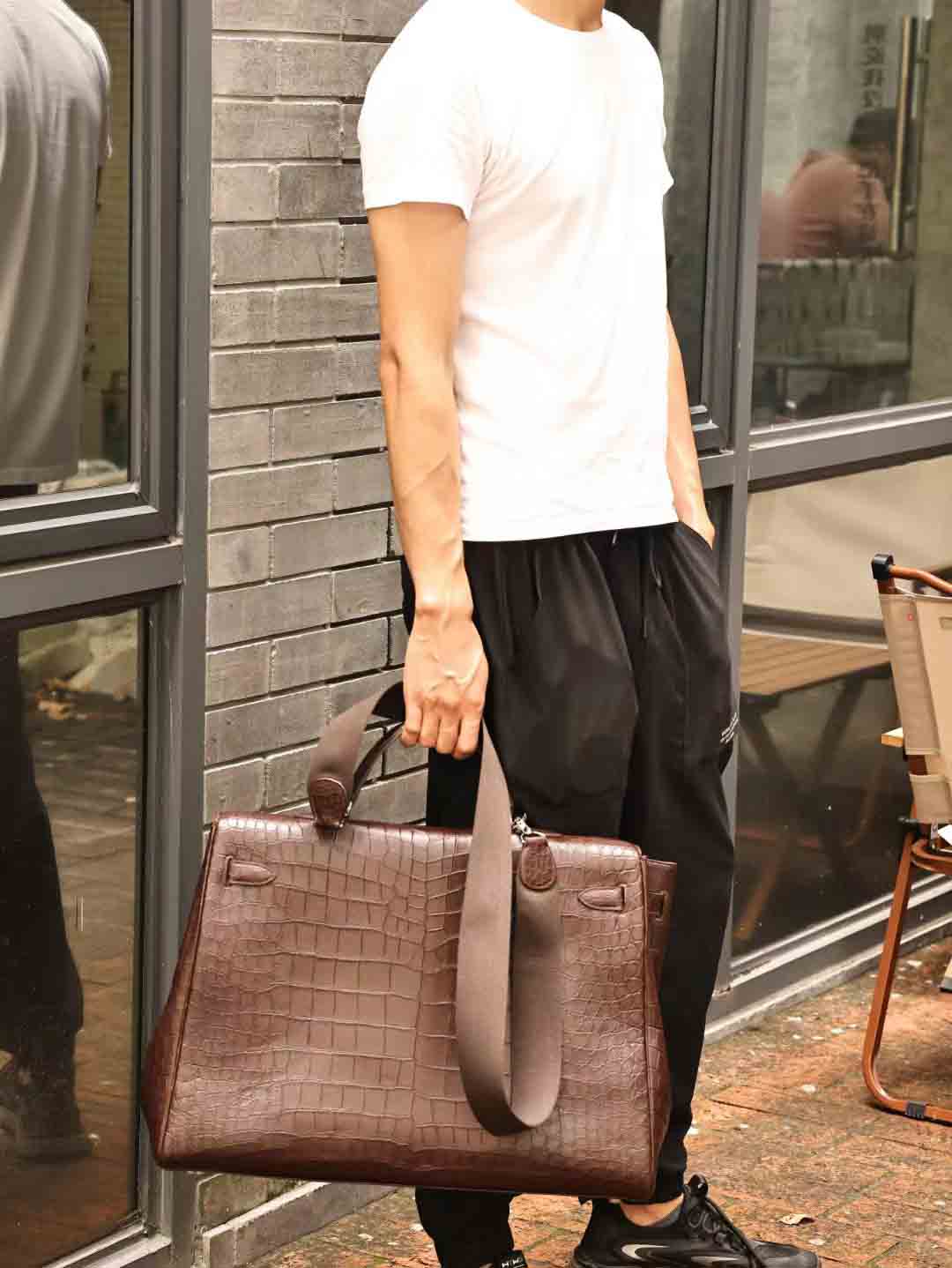 谁来驾驭这款 Kelly50,稀有咖啡色鳄鱼皮,实物拍摄。咖啡色鳄鱼皮大旅行包定制工厂微信联系 95506803