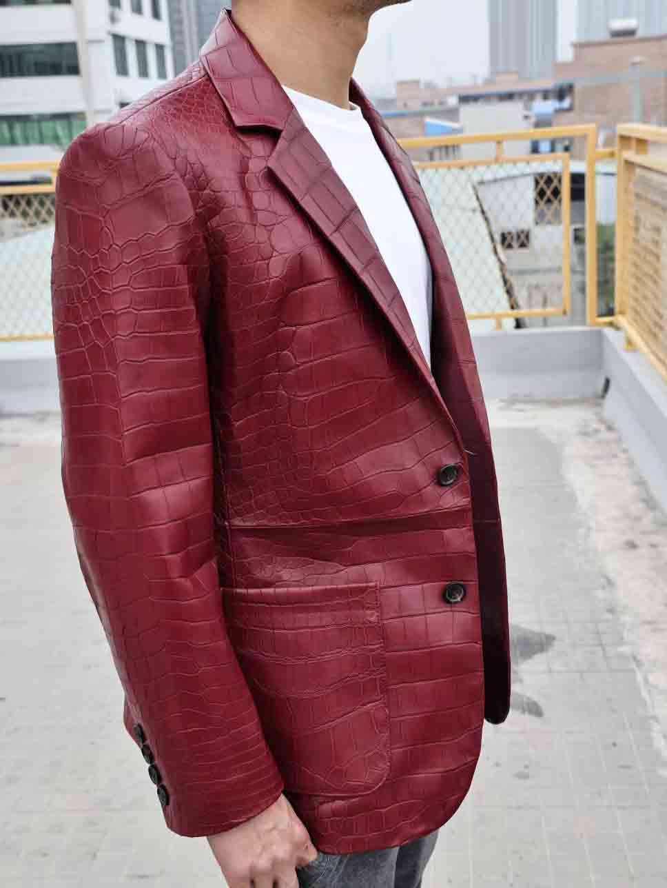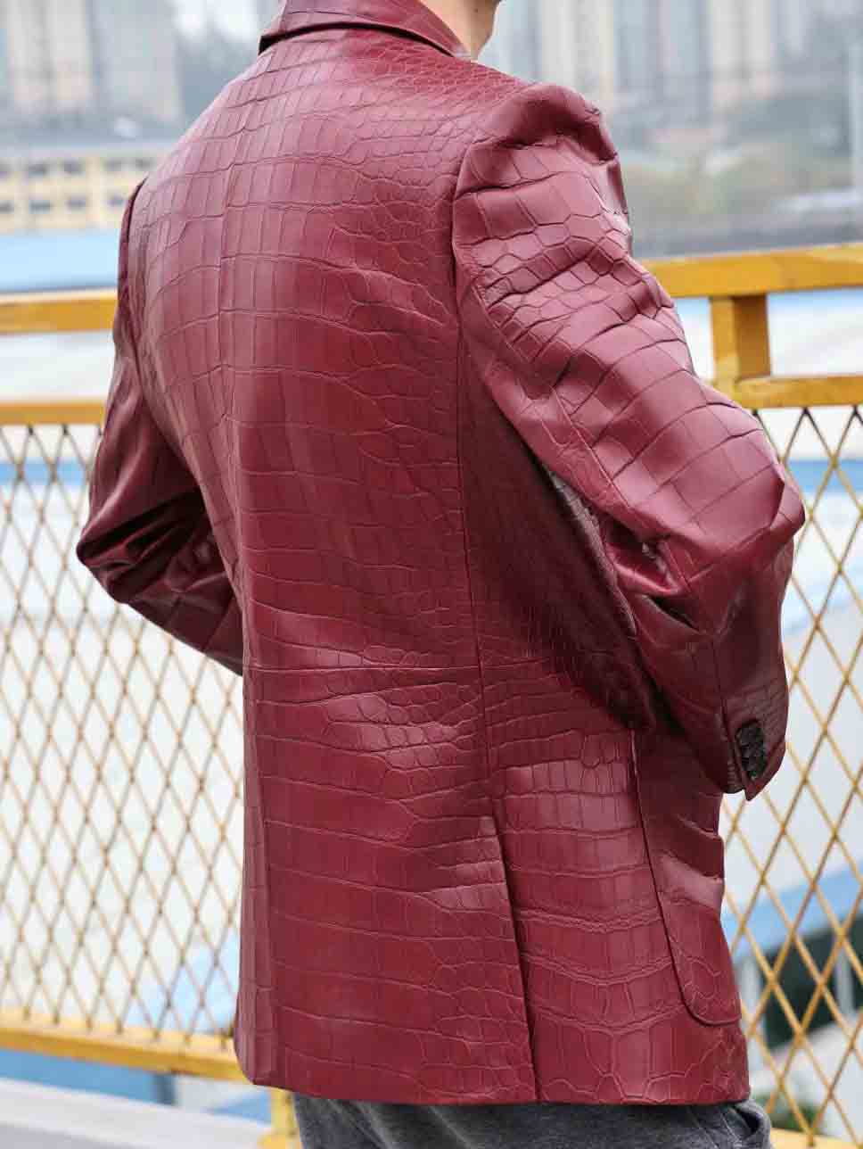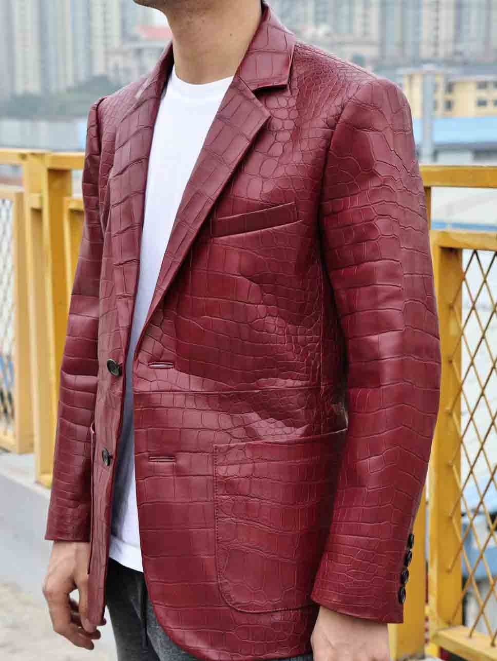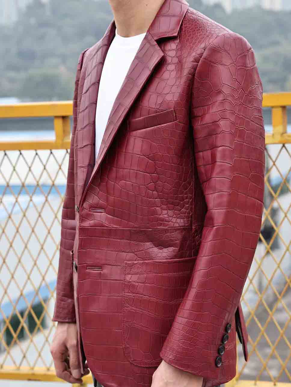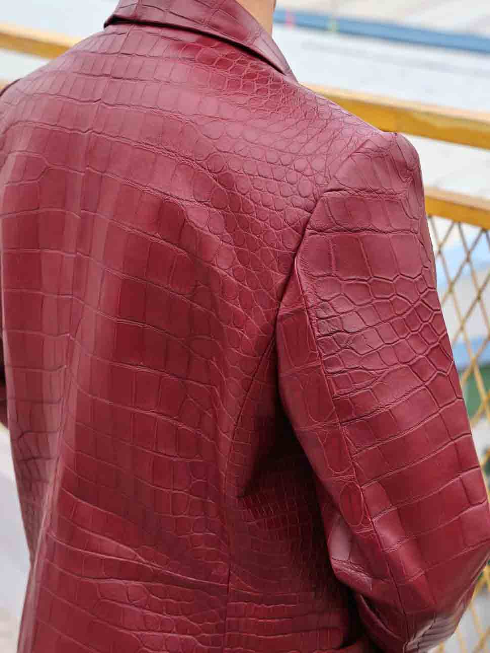 很多男士担心鳄鱼皮红色西服难驾驭又不日常,这可能是我们通常不会把红色与鳄鱼皮西服联系到一起的原因。