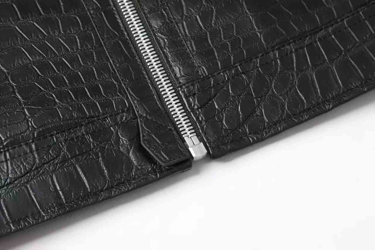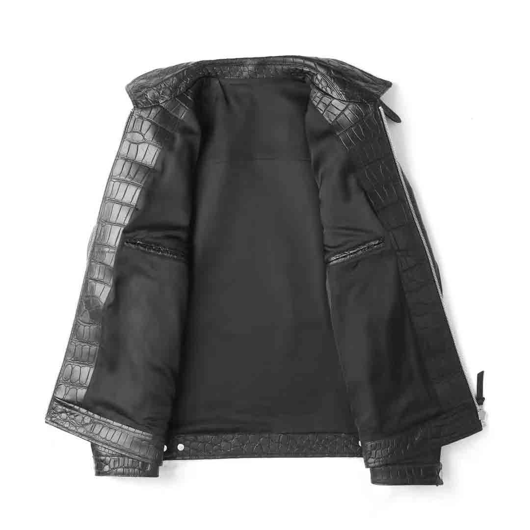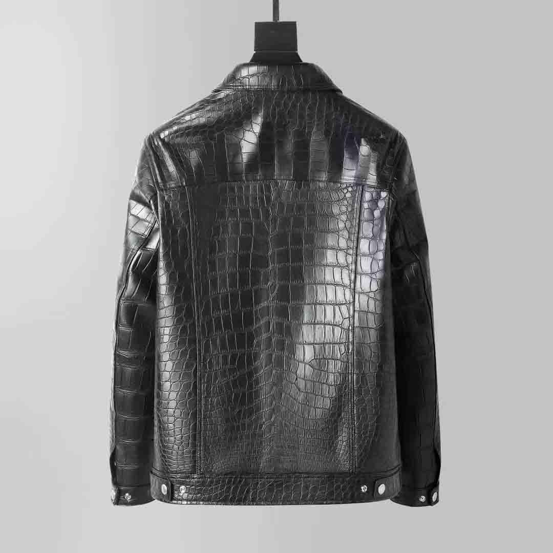 高端奢华鳄鱼皮夹克皮衣。湾鳄肚皮夹克皮衣,纯手工精工制作,高端品质,可以来图片和样版衣,我们有专业的设计师师傅、专业打版样版皮衣师傅、专业生产制作师傅团队,下单定了与我联系,高端私人定制,诚信赢天下,海纳百川。