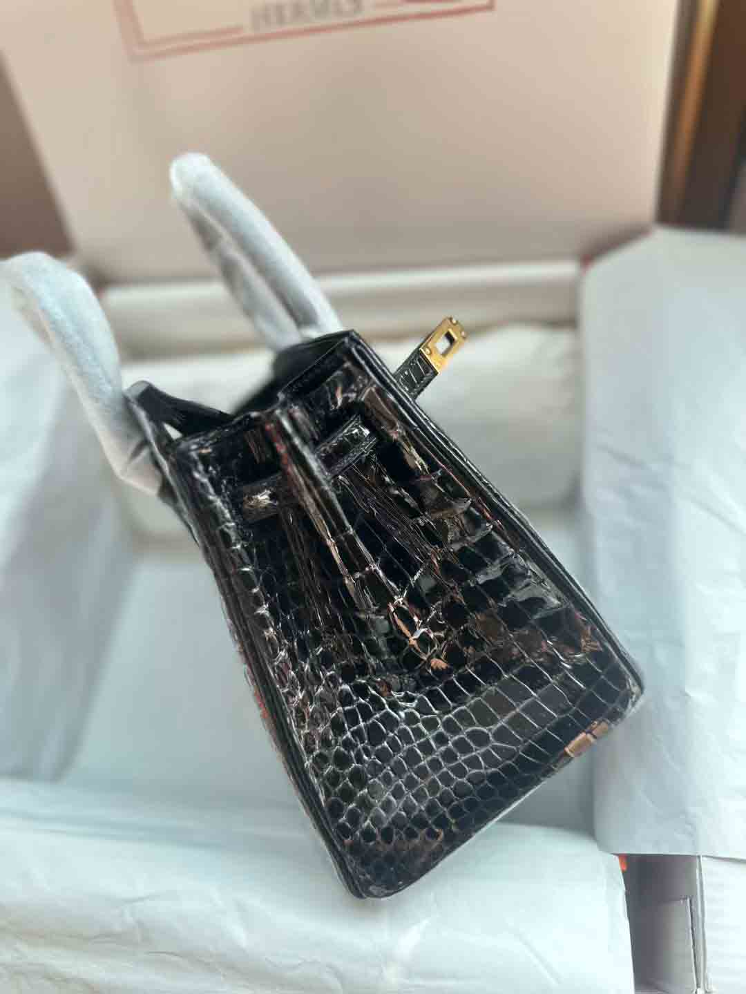 Birkin 30cm Porosus湾鳄 亮面Shinny 倒V