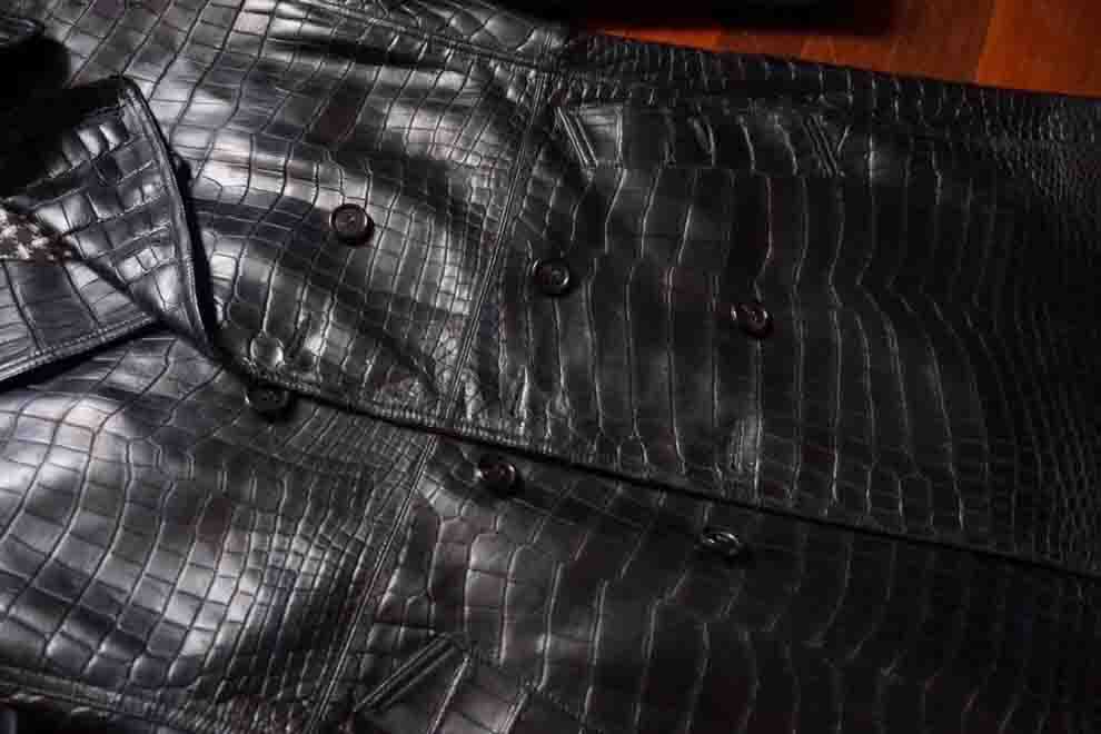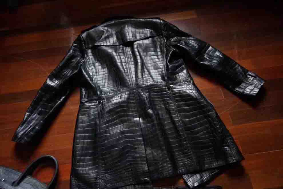 #定制【风衣】进口南非尼罗鳄鱼皮风衣款 黑色 中短款不过膝盖。微信联系 95506803