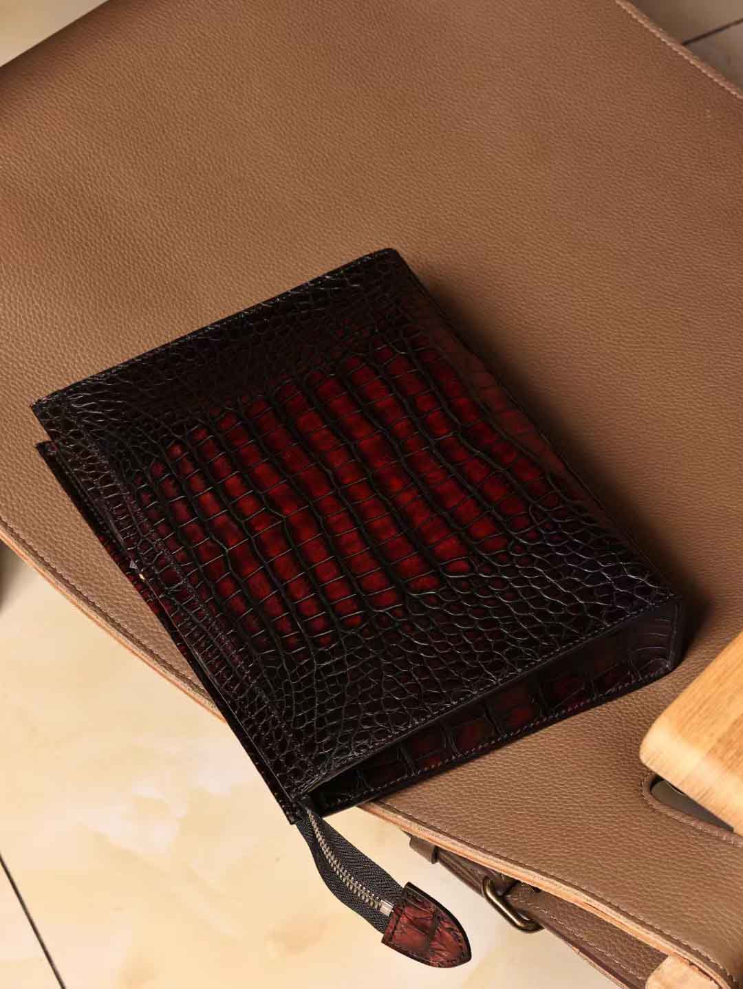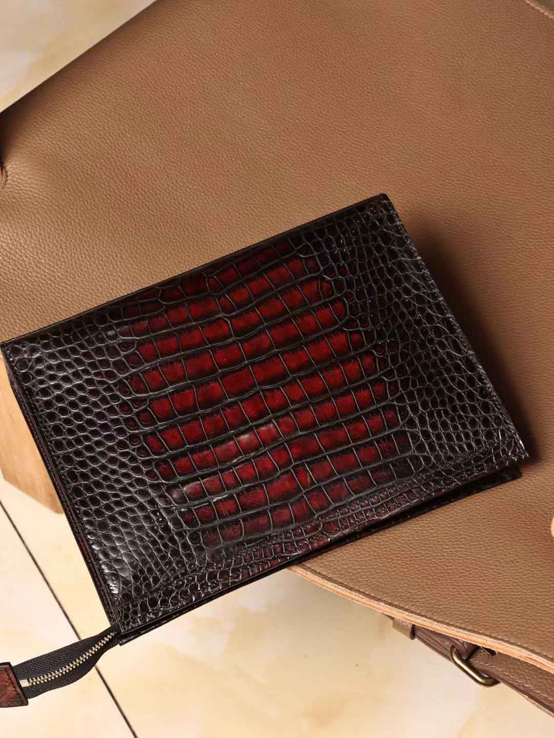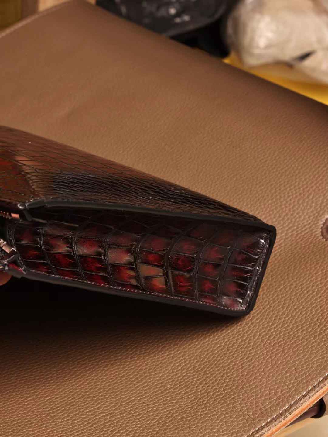 LV手拿包,擦色酒红美洲鳄手腕包,客订出。