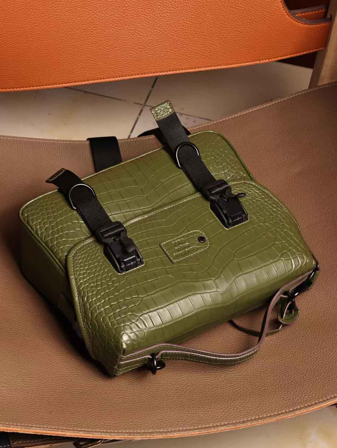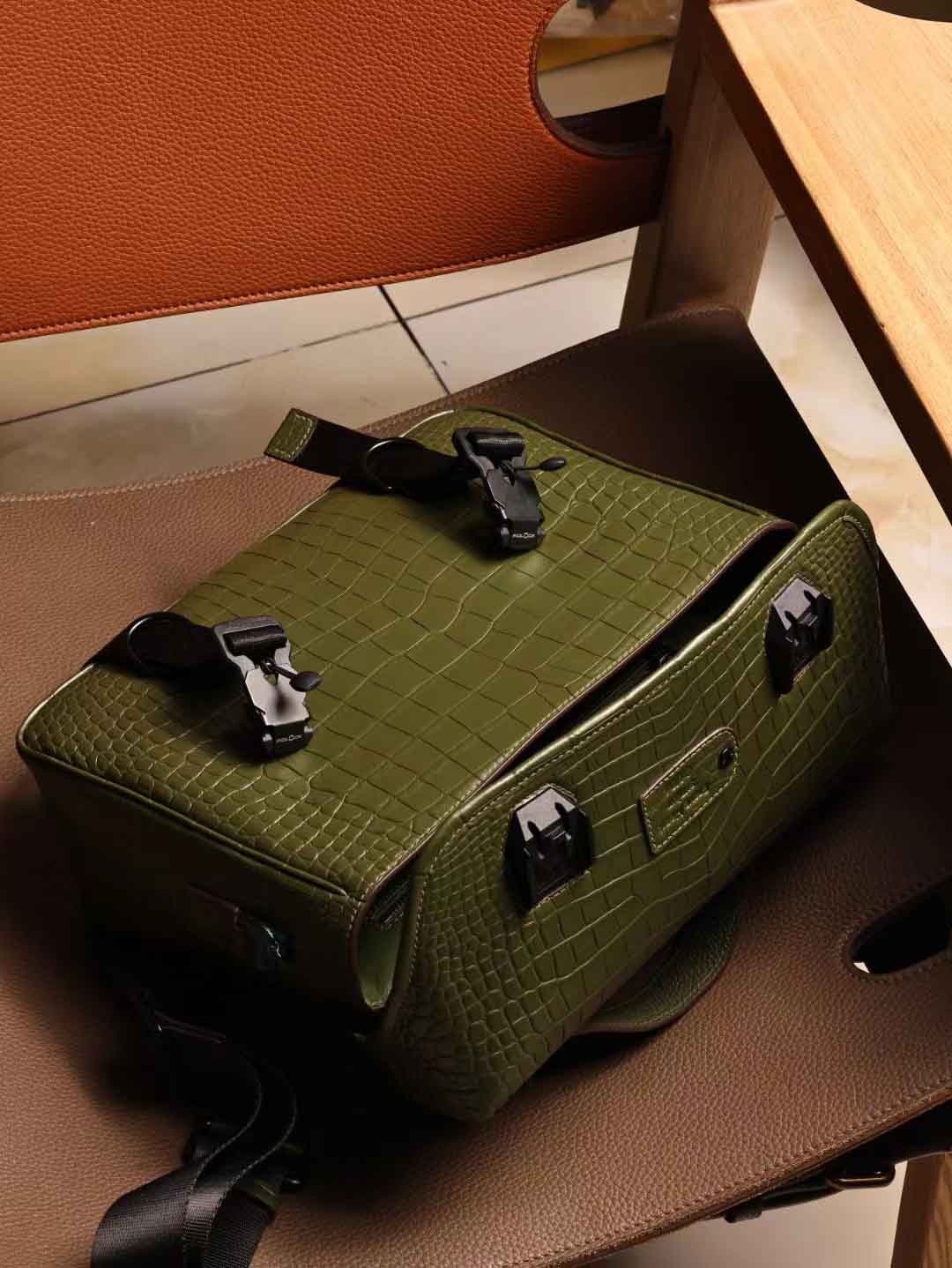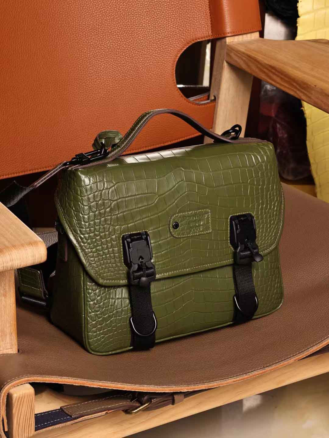 选鳄鱼新色斜挎包订制横款单肩包疯鳄鱼皮翻盖邮差包男包。迷你邮差包布鲁提规格介绍简介产品详情 Berluti 迷你邮差包。