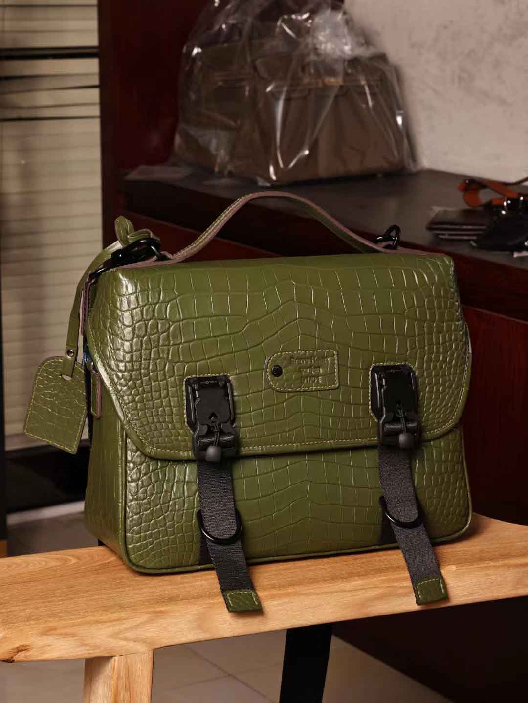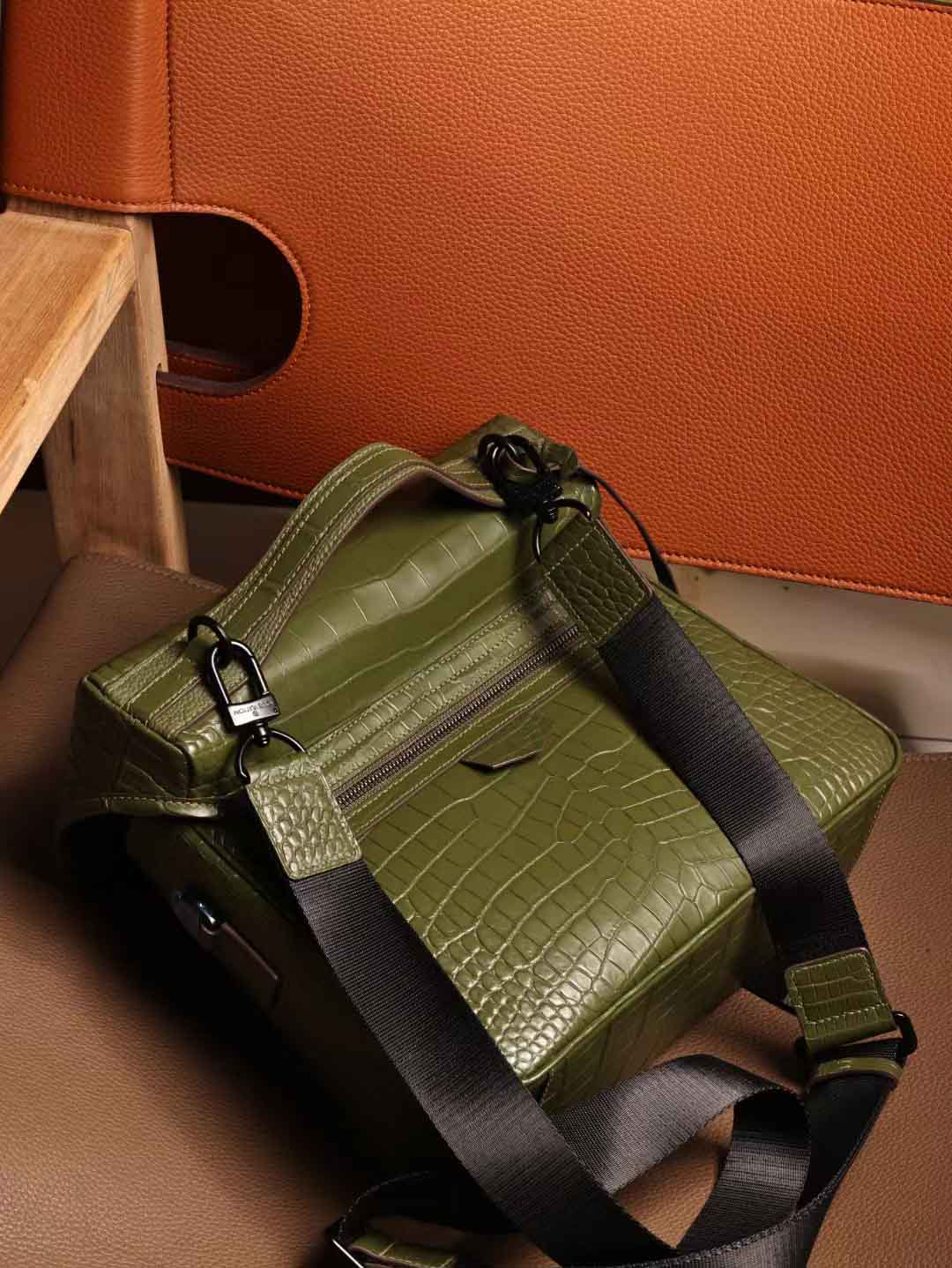 邮差公文包订制选鳄鱼新色斜挎包订制横款单肩包疯鳄鱼皮翻盖邮差包男包。微信联系 95506803
