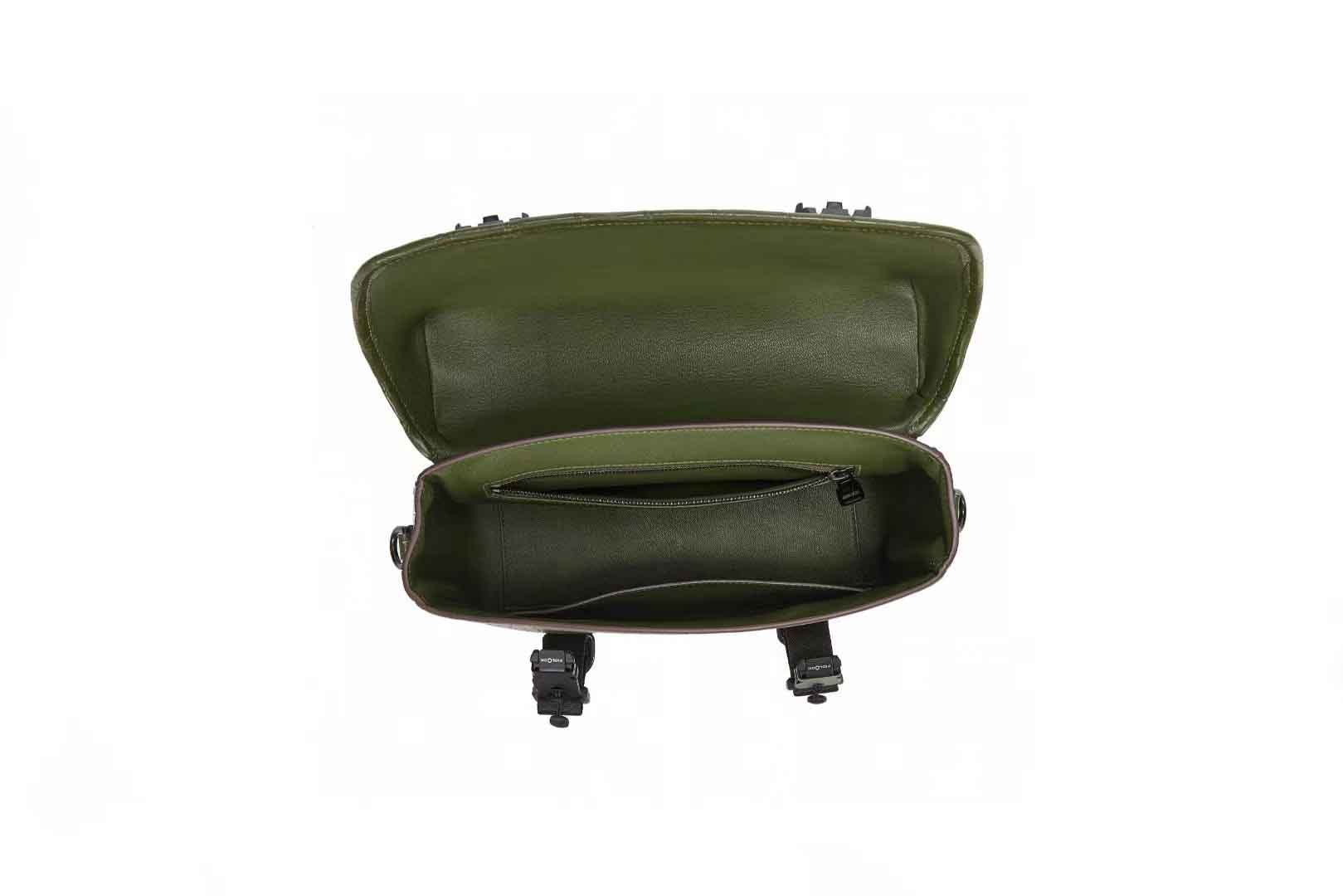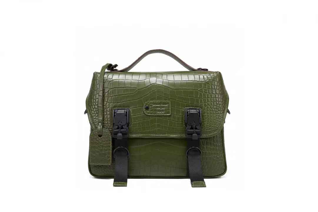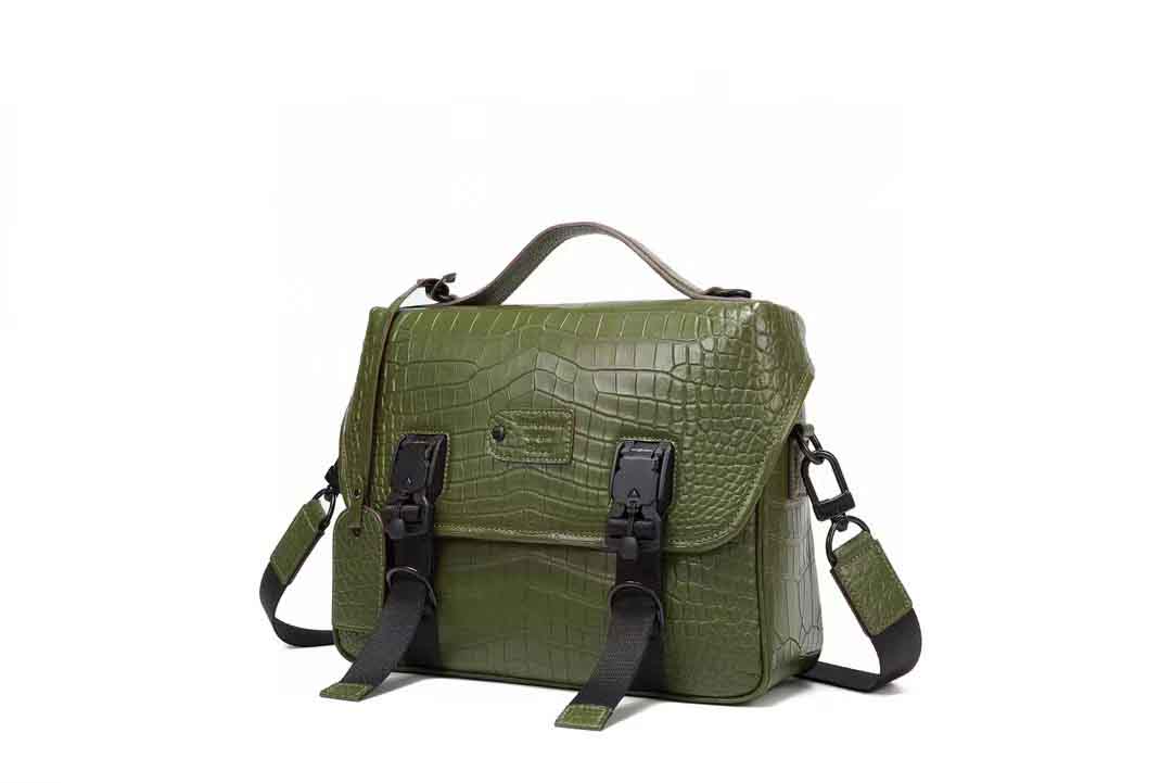 新款邮差公文包,背上就是时尚的邮差包,卸了肩带就是一款相对比较休闲的公文包,橄榄绿客订出。