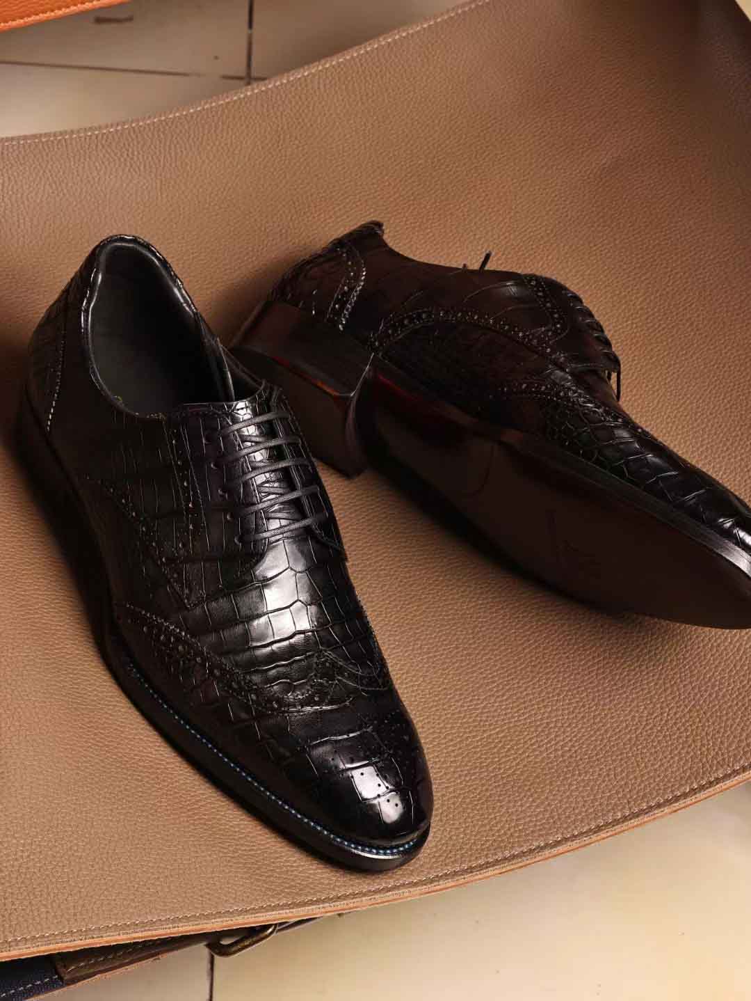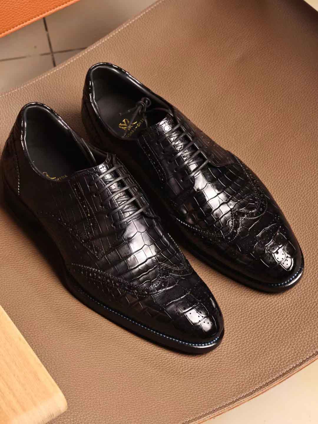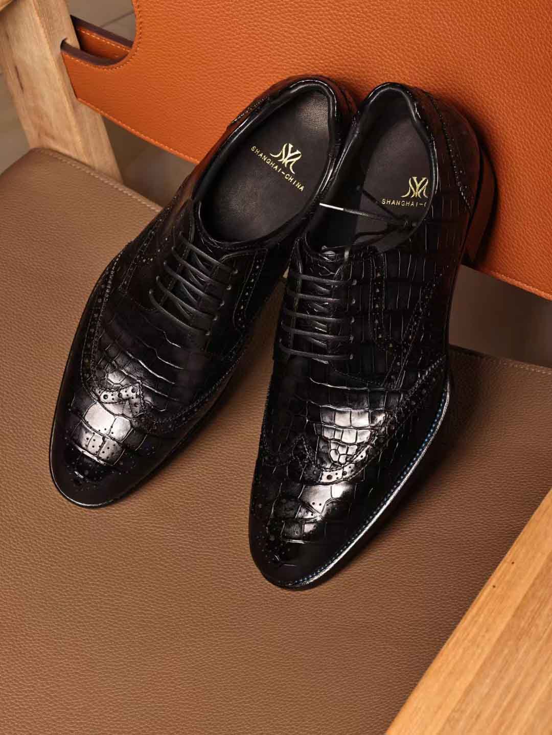 德比鞋,深相思灰鳄鱼皮,客订出货。鳄鱼皮商务鞋定制厂家 95506803