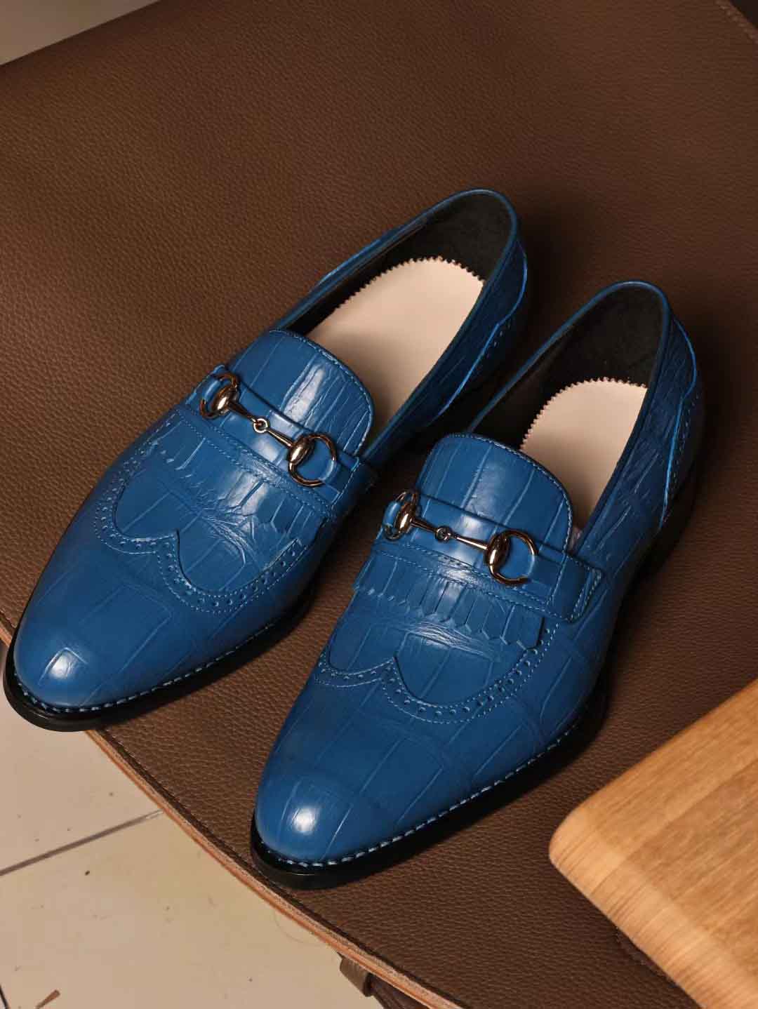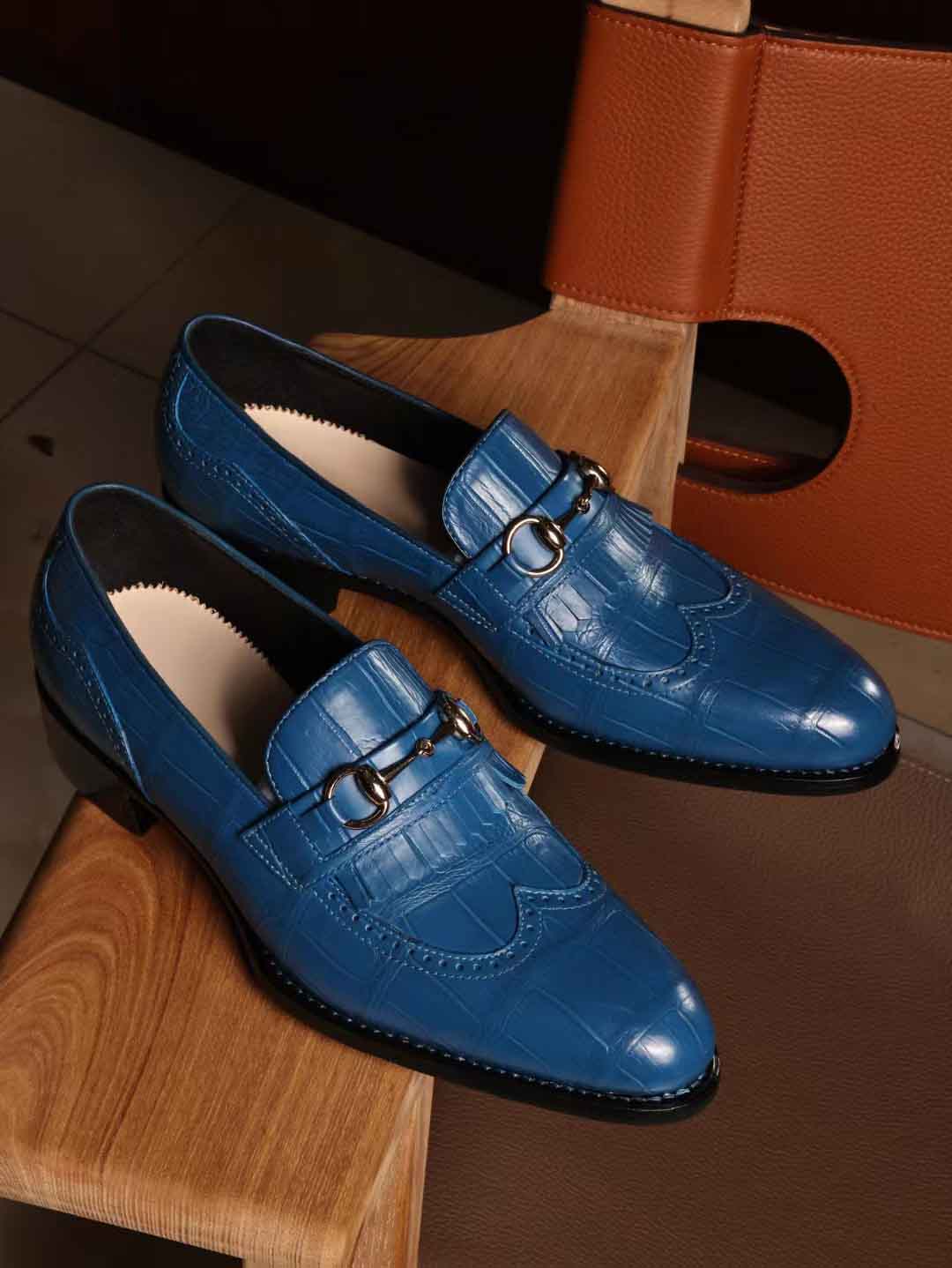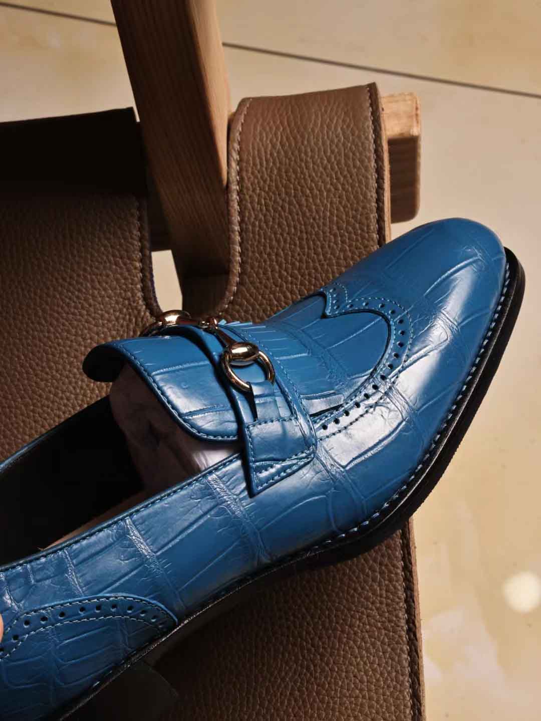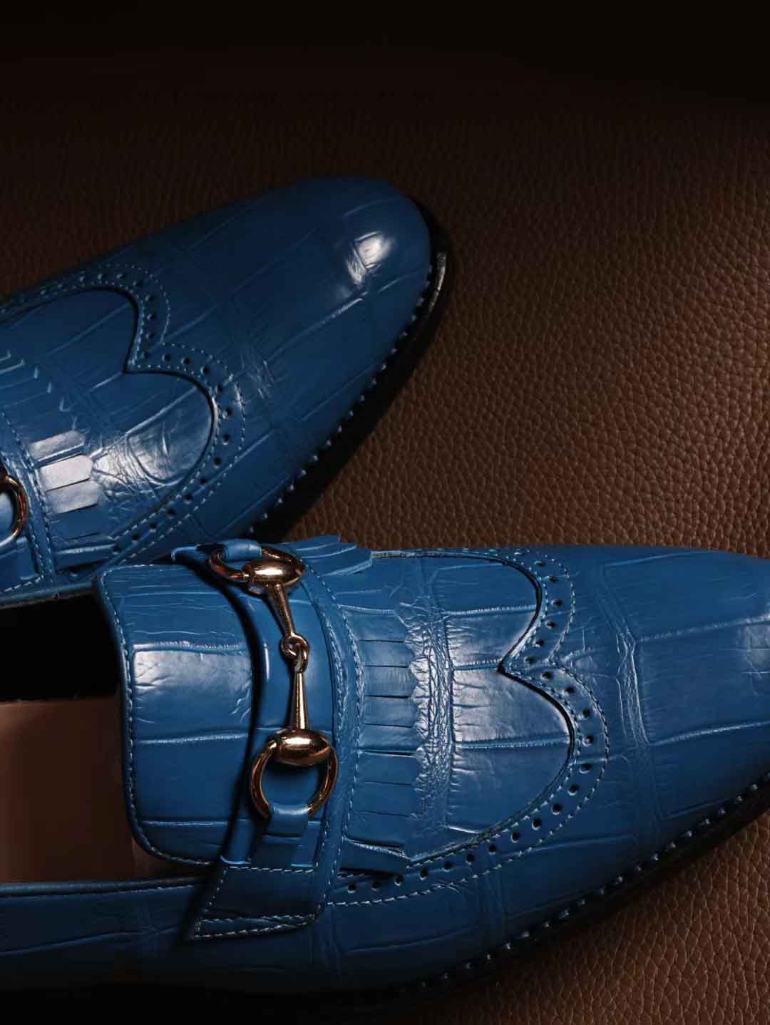 一脚蹬乐福鞋,史蒂芬蓝鳄鱼皮鞋。