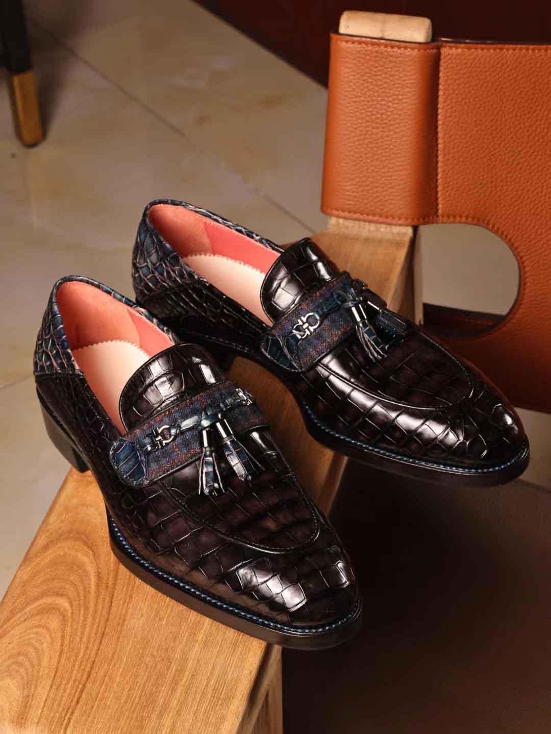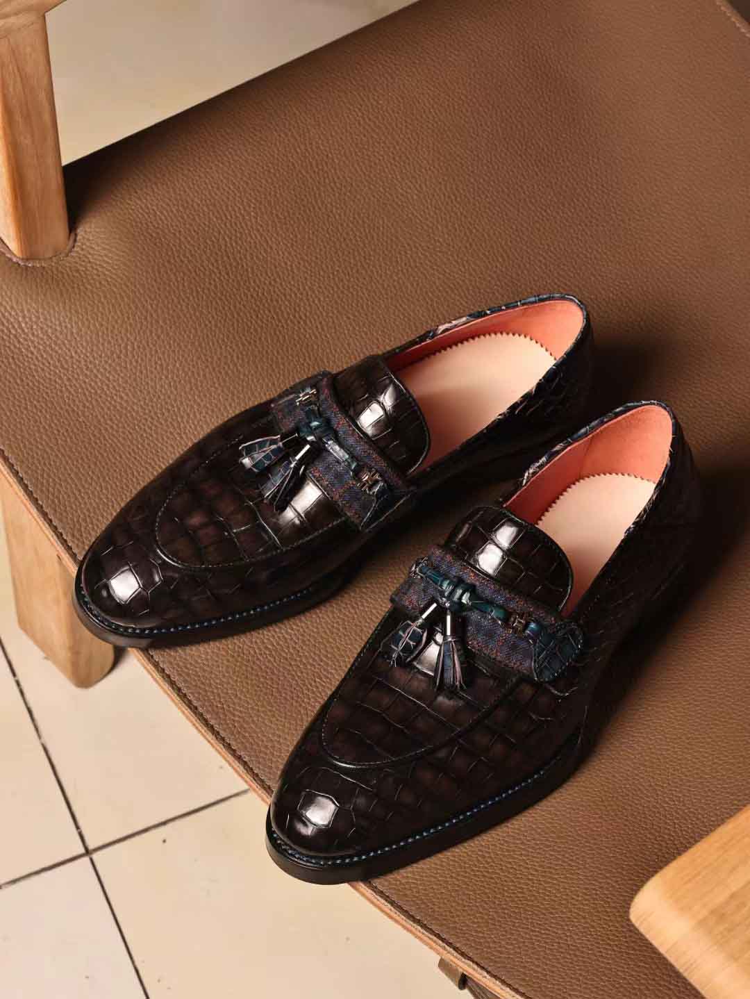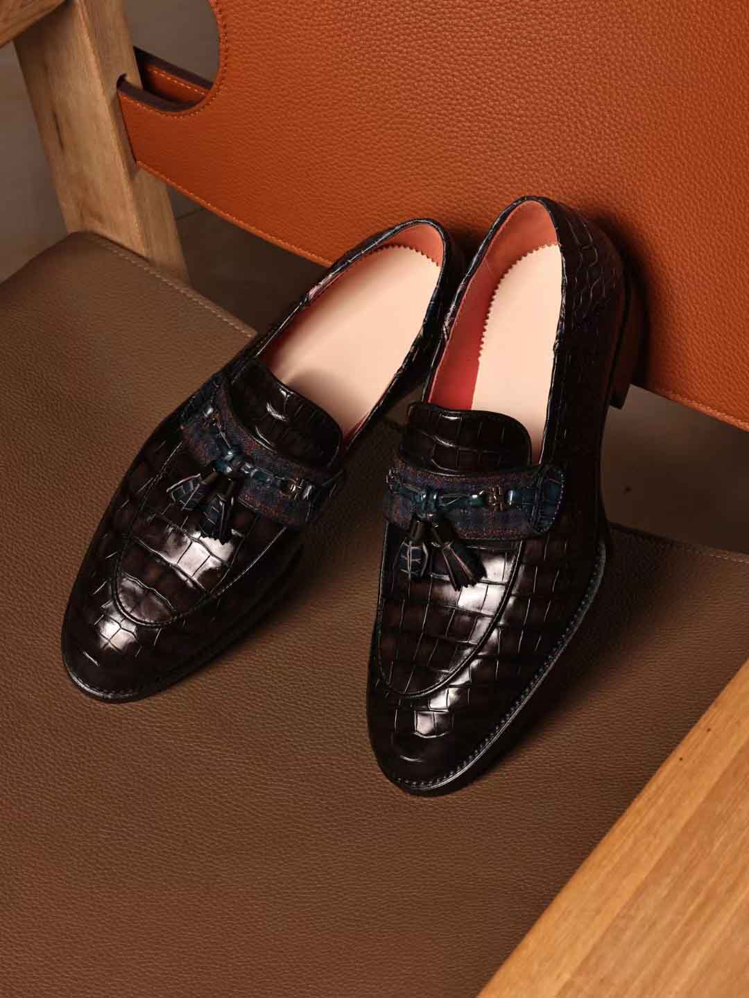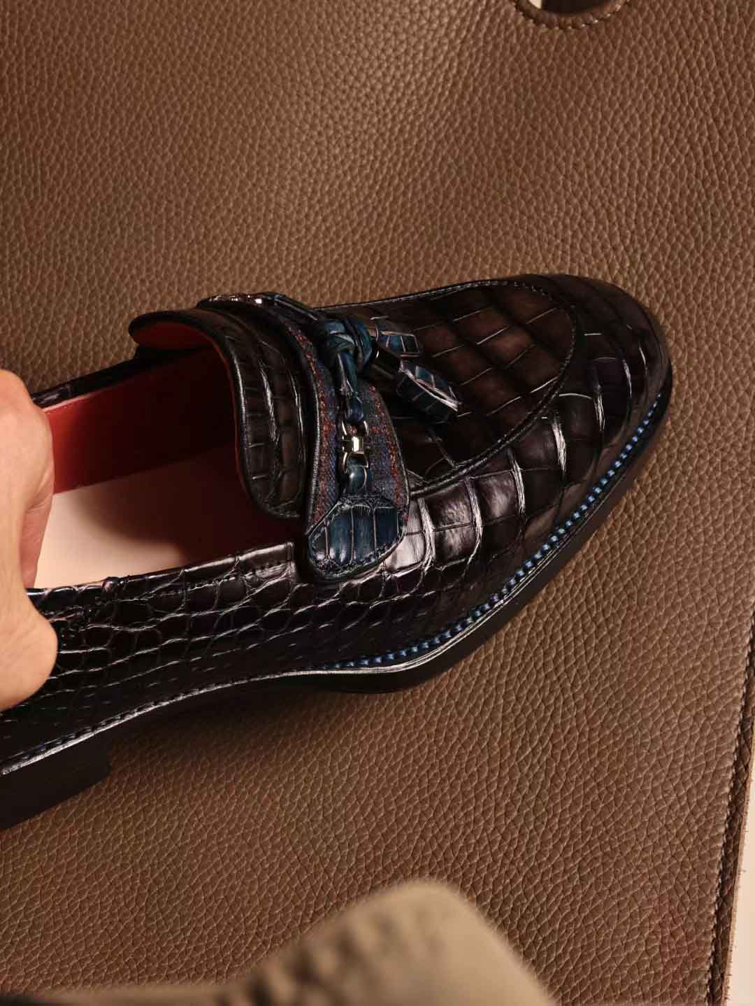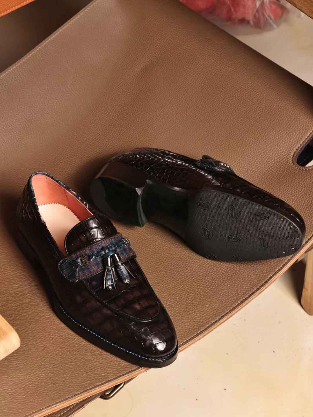 一脚蹬乐福鞋,穗穗装饰款,暮云灰鳄鱼皮,客订出。微信链接 95506803