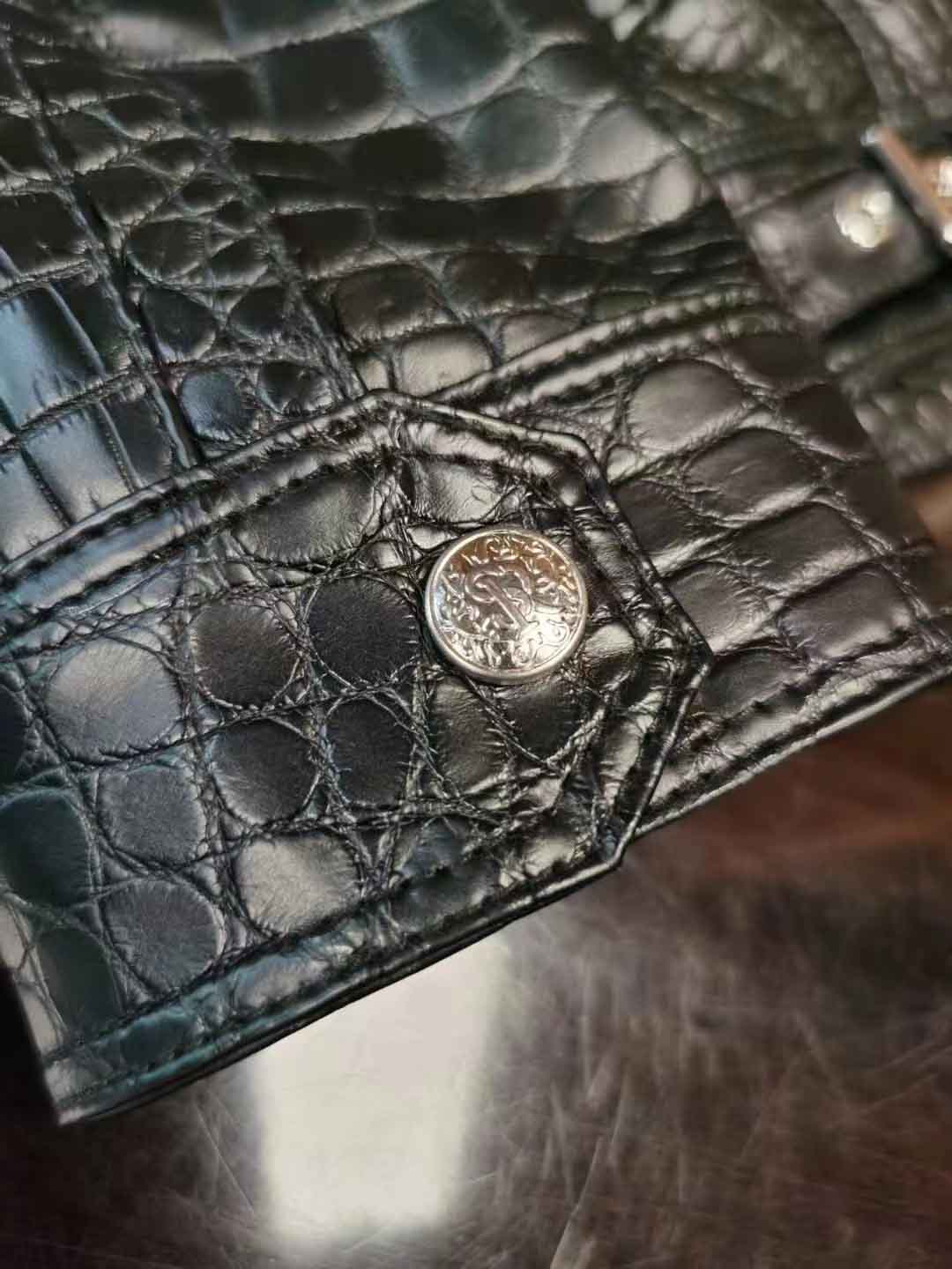 鳄鱼皮女士惊艳,男士嫉妒的鳄鱼皮飞行员夹克 鳄鱼皮牛仔裤 原色丹宁牛仔裤,让下半身充满诱惑力。
