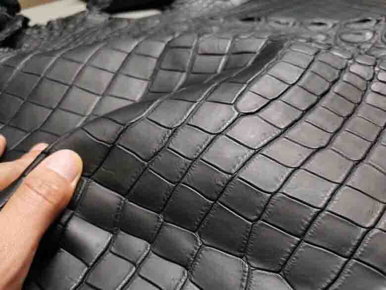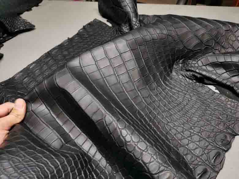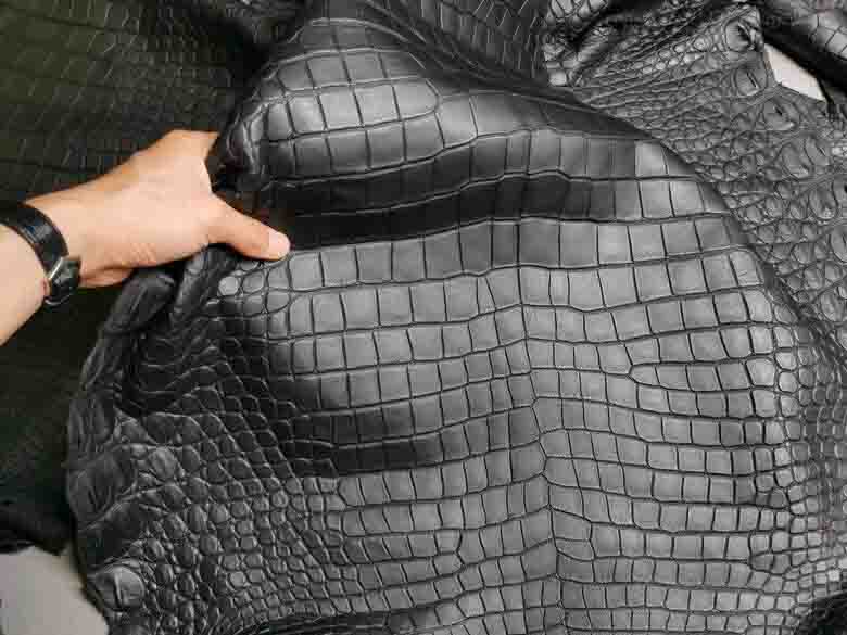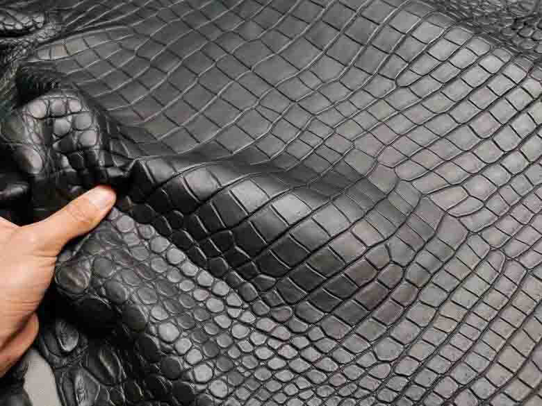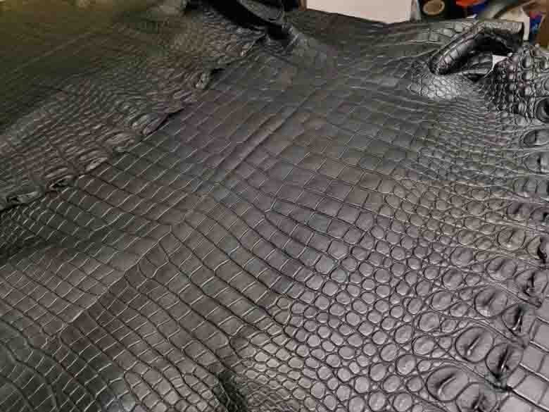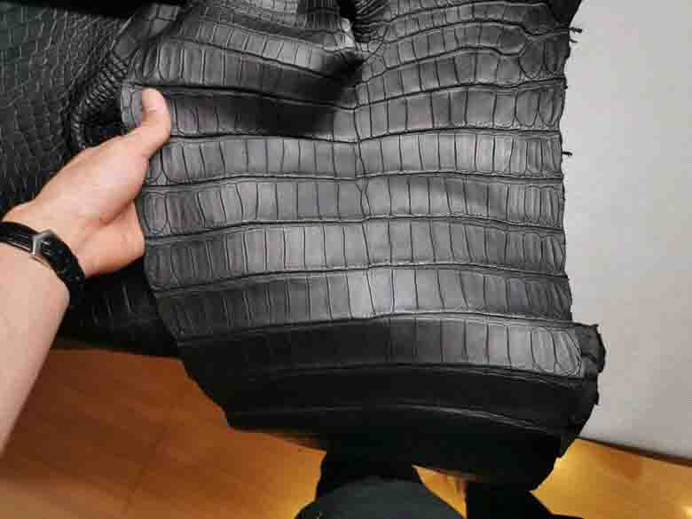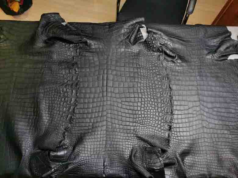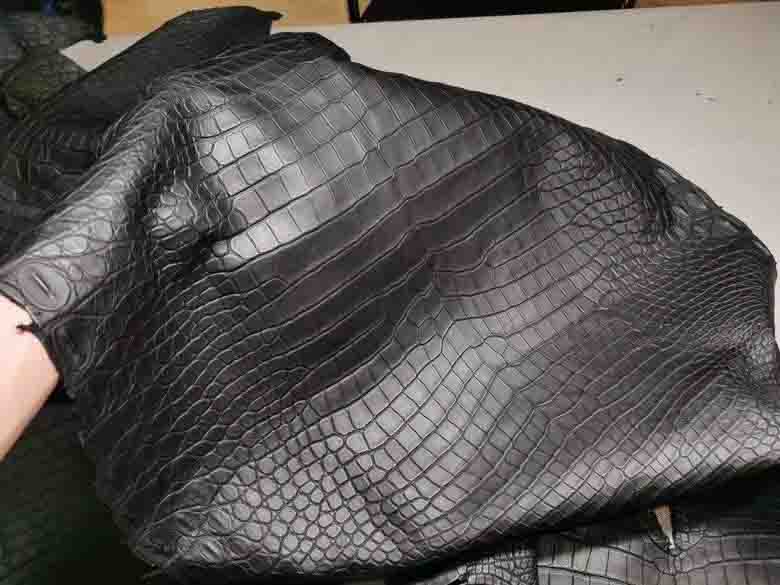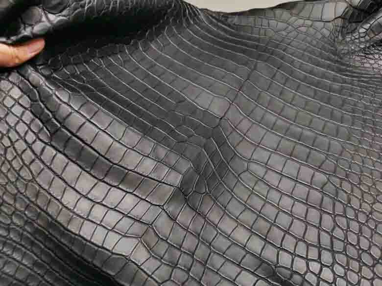 超大湾鳄半服装革皮料,碳素黑,立体感超强。