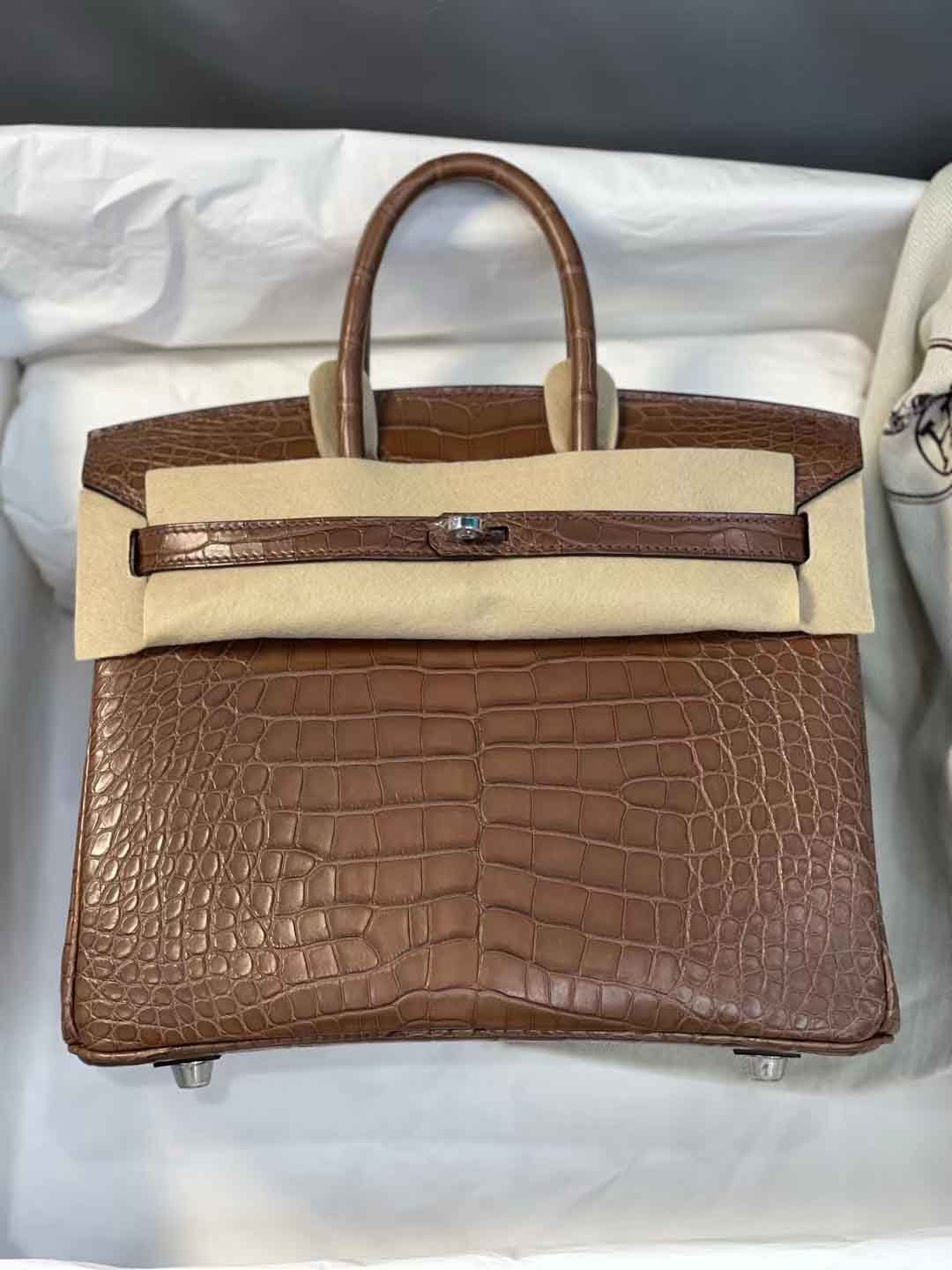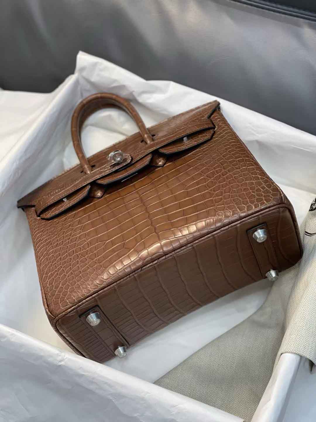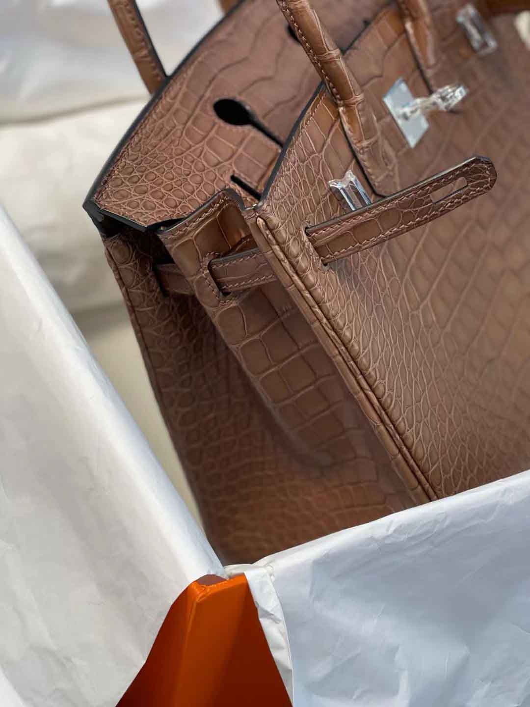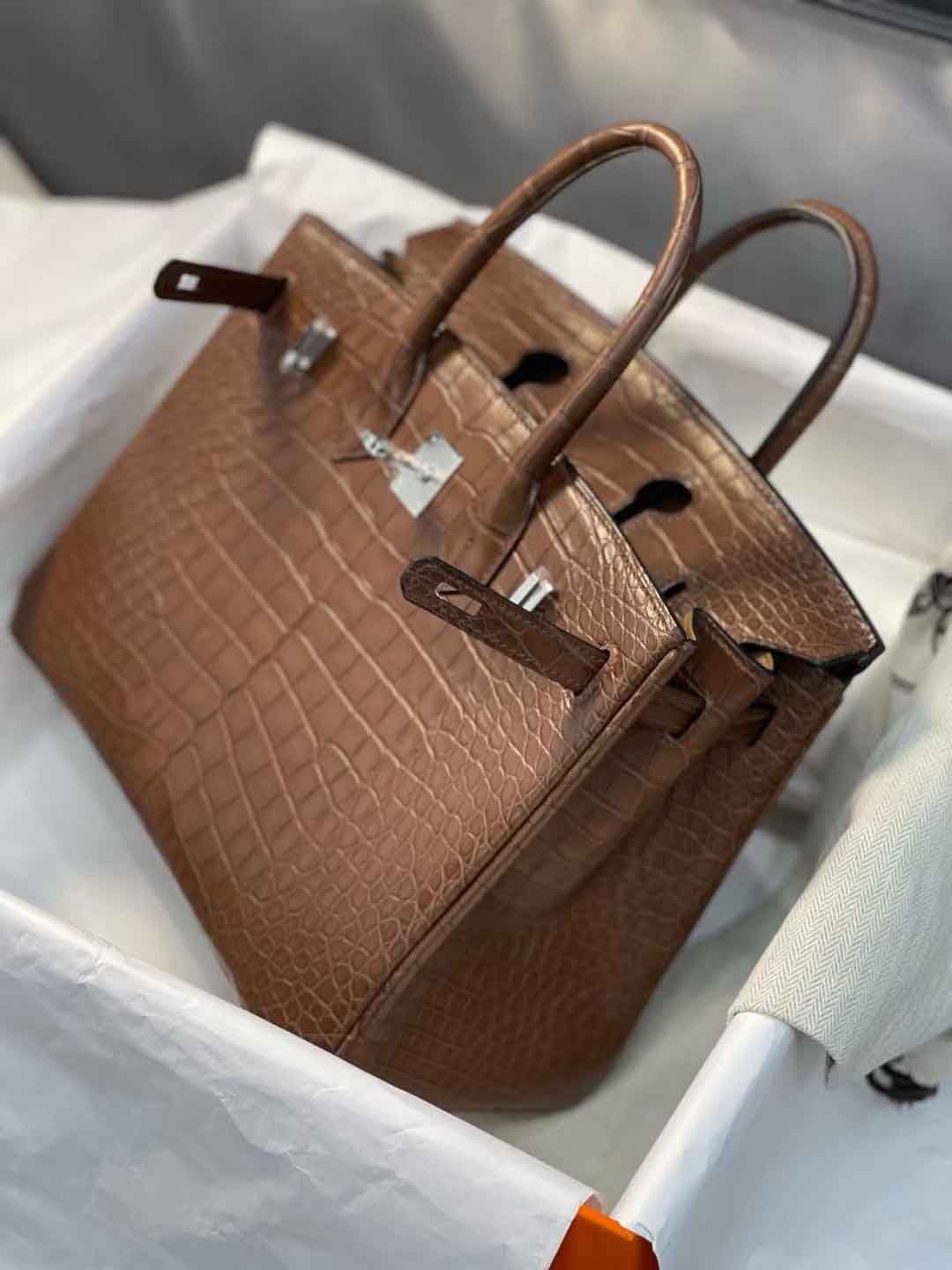 现货Birkin25cm 3G栗子色雾面Hcp 美洲鳄鱼皮,微信联系 95506803
