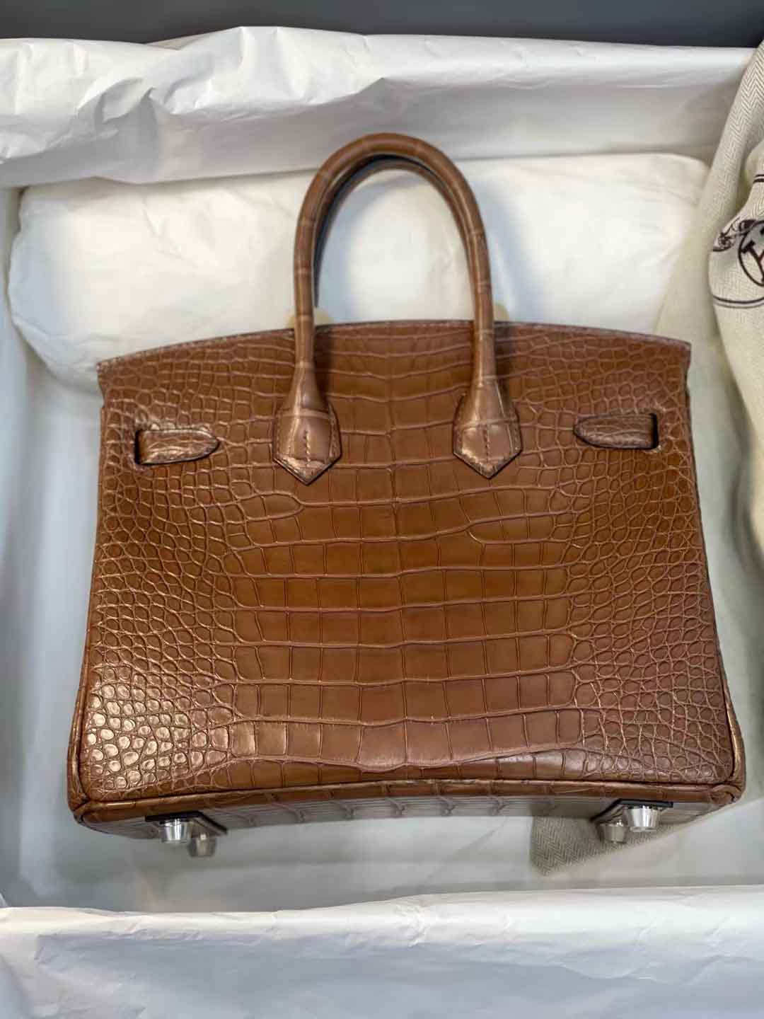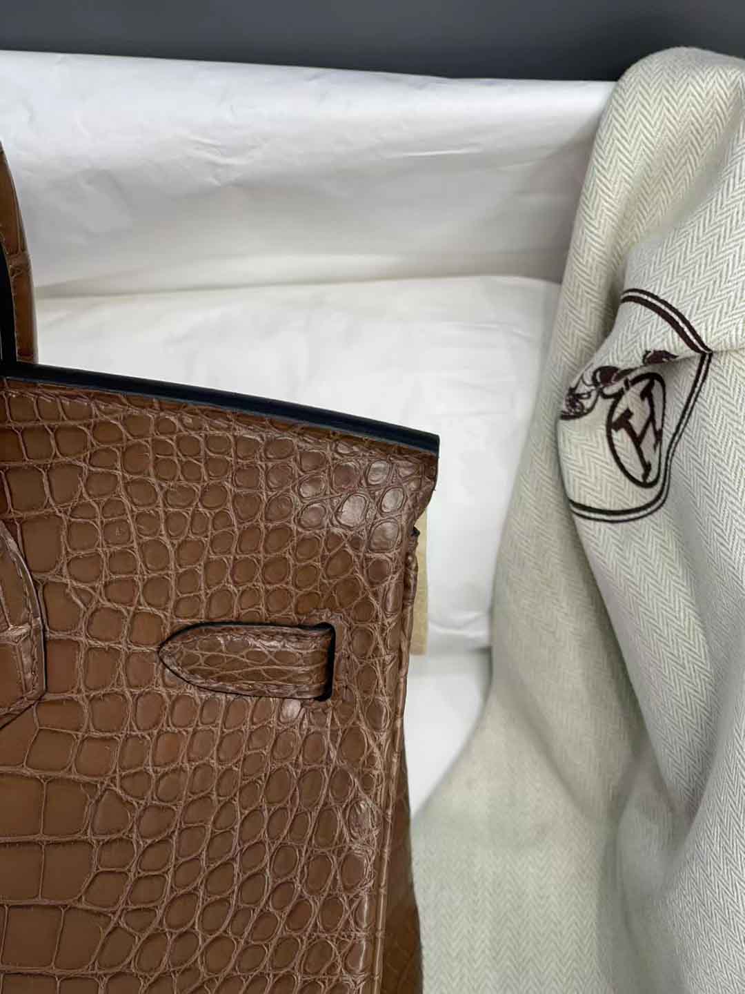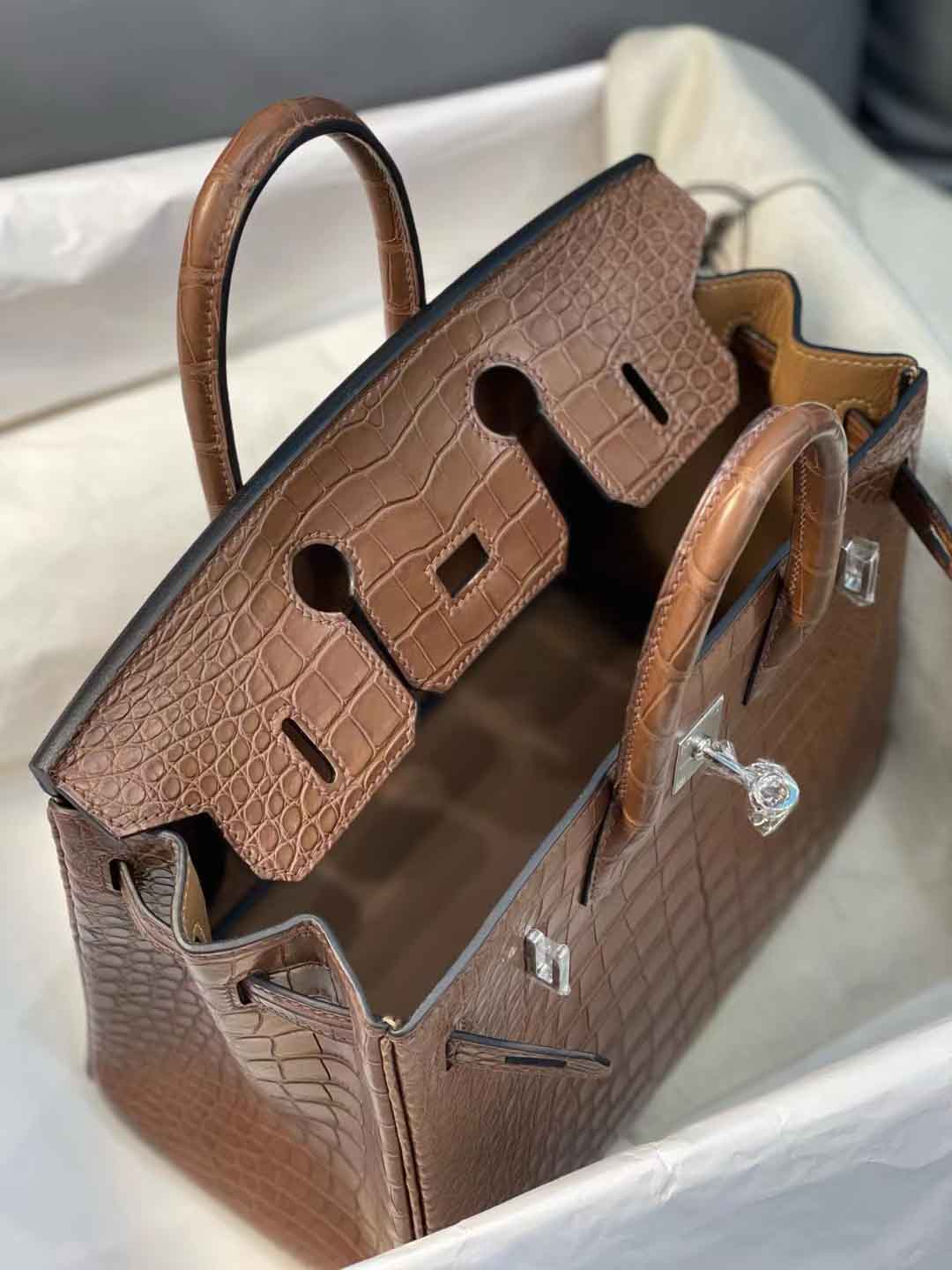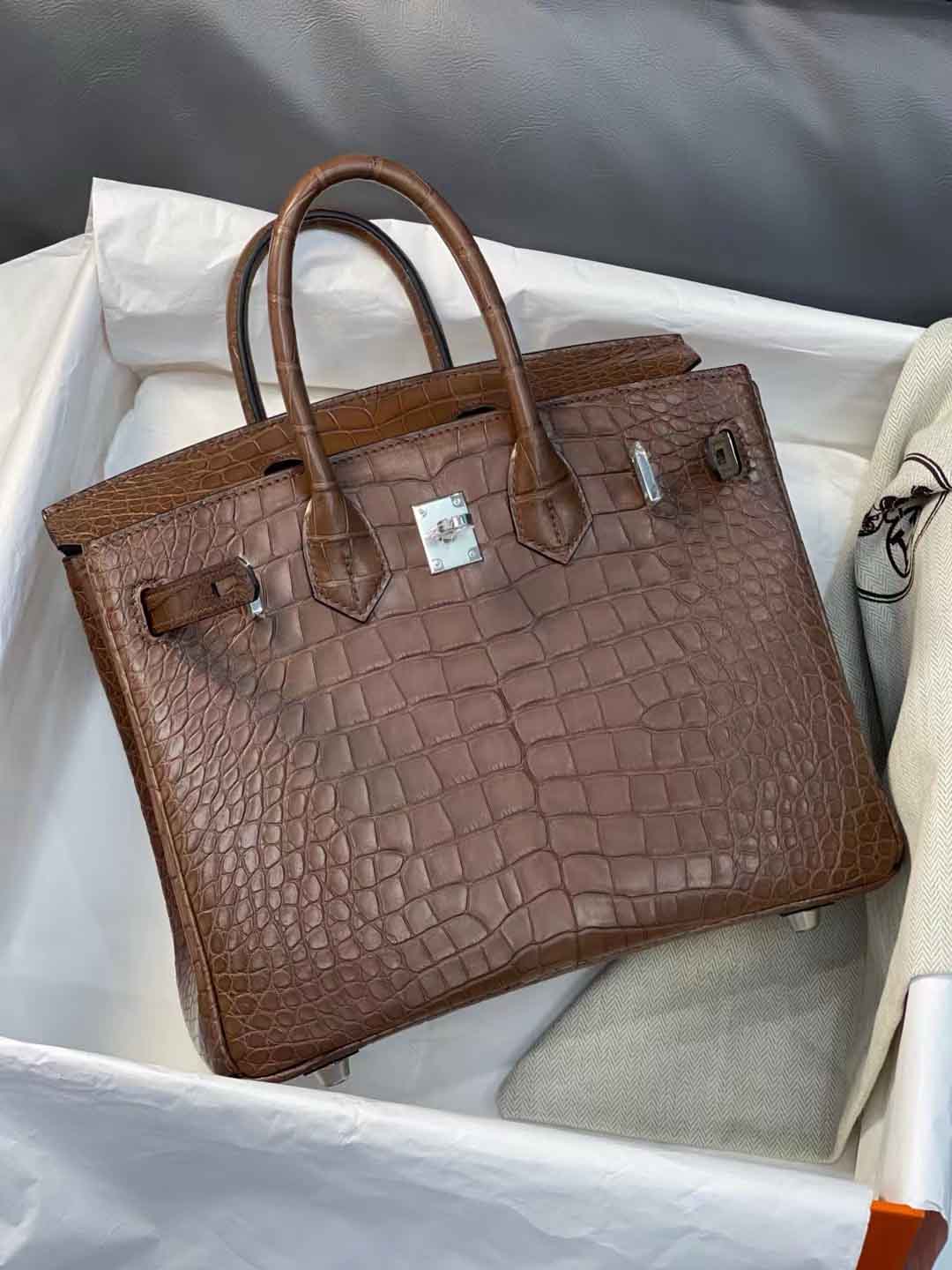 现货Birkin25cm 3G栗子色雾面Hcp 美洲鳄鱼皮,微信联系 95506803