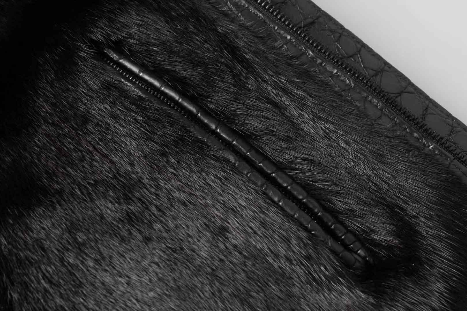 所以如果你买一件鳄鱼皮衣,那么你还是少穿吧,因为你还不能水洗,可以想象多年以后长期不洗的皮衣会成啥样,而且鳄鱼皮很容易留下划痕,你还得贴一层软质保护膜,要是想不留划痕也行,弄一个惰性气体容器,然后把包放到里头,看看就行。