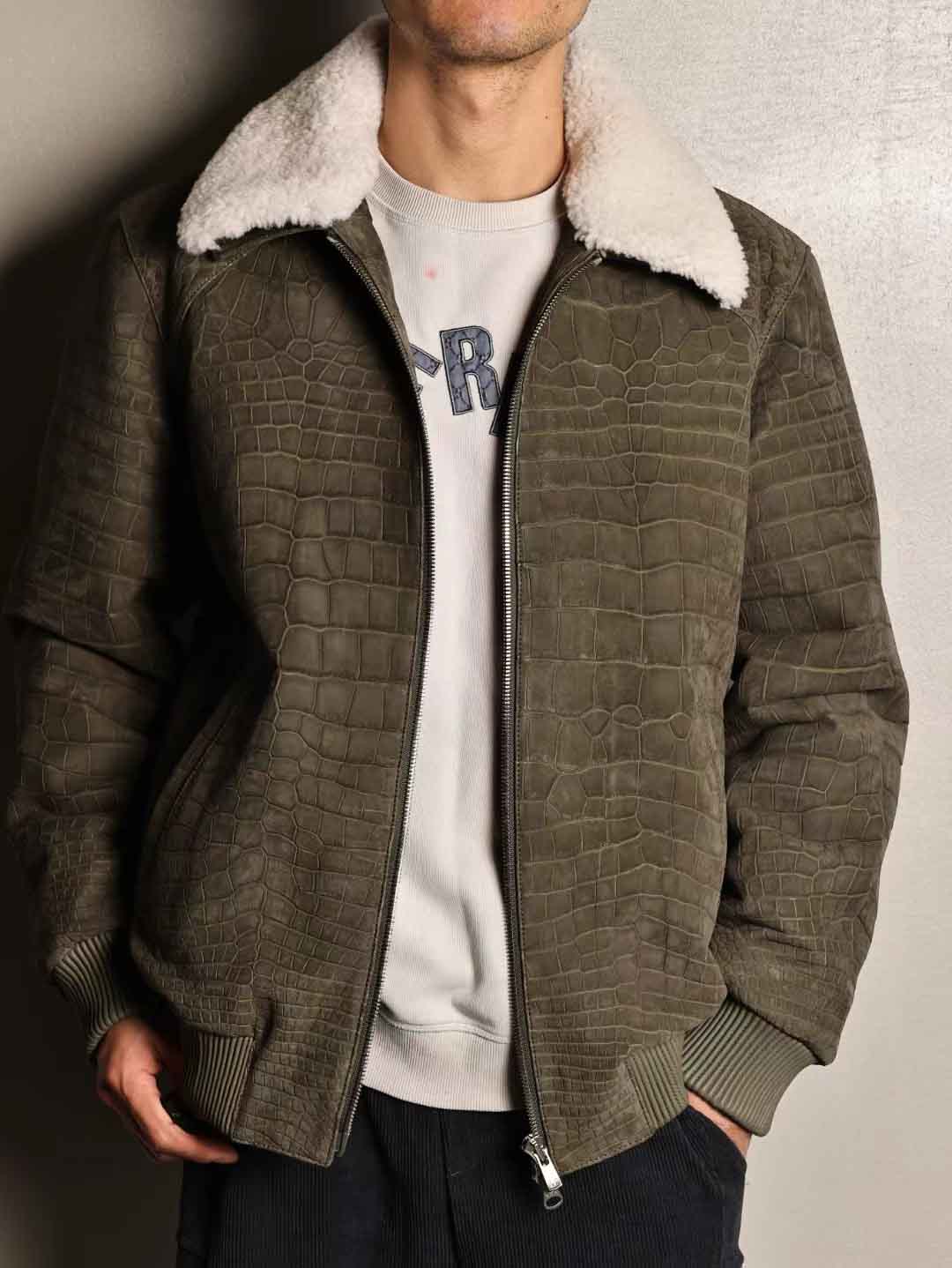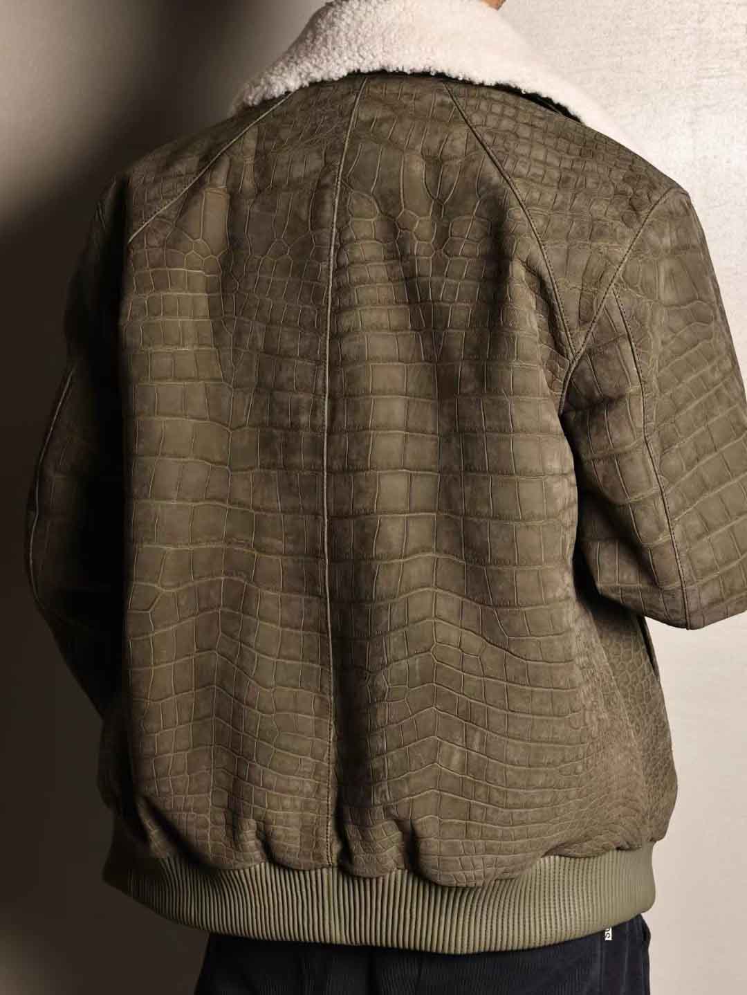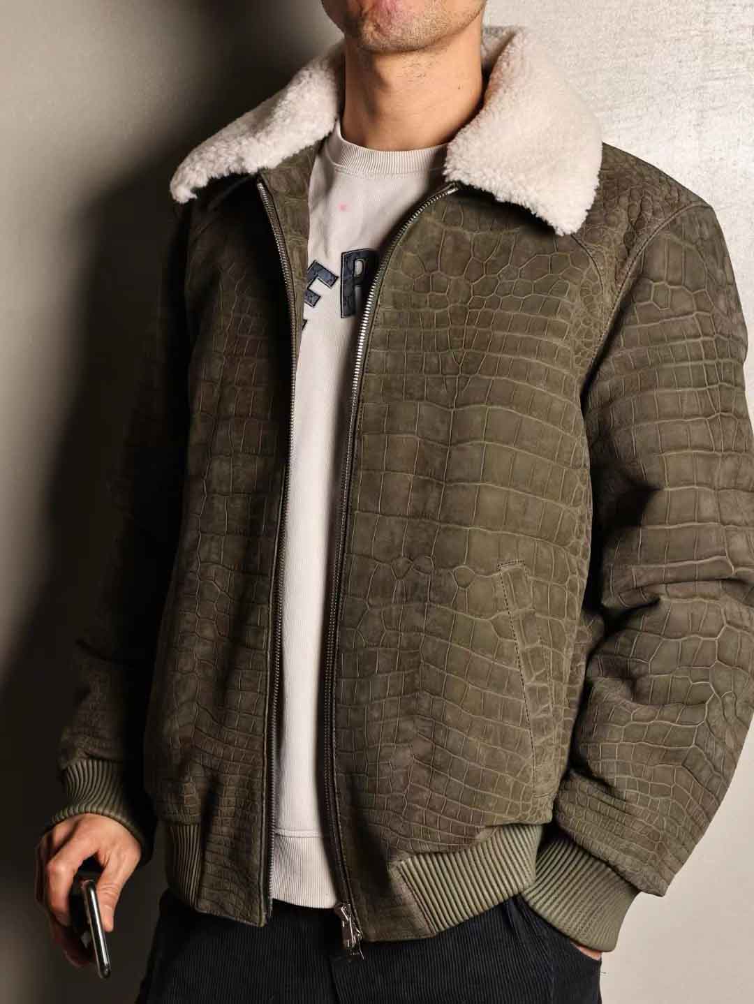 爱xxxx羊毛内胆夹克,鼠尾草绿磨砂鳄鱼皮,客订出。