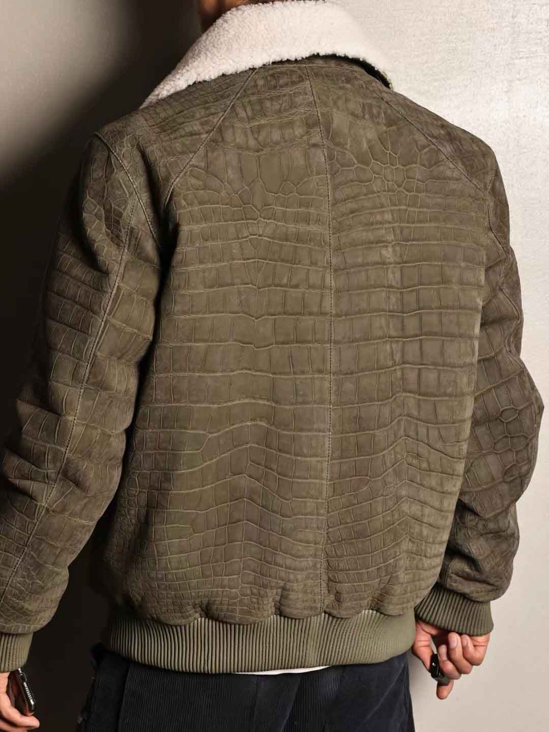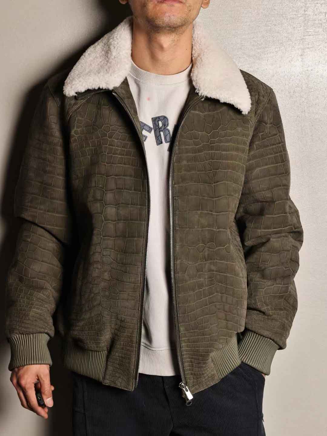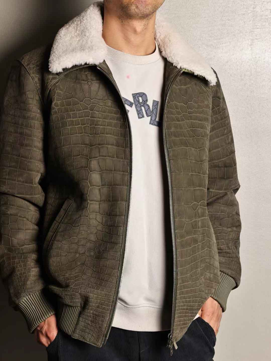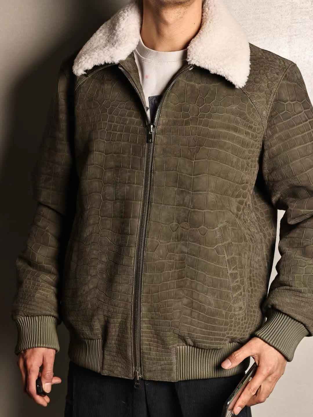 爱xxxx羊毛内胆夹克,鼠尾草绿磨砂鳄鱼皮,客订出。