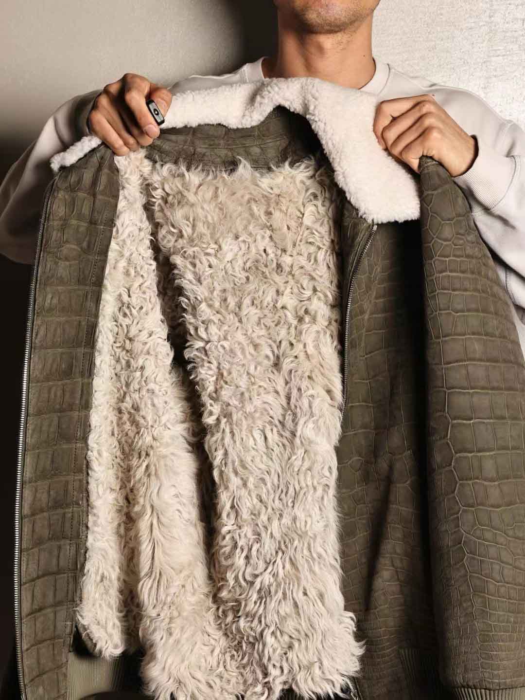 鼠尾草绿色鳄鱼皮外套和羊羔毛的强烈碰撞,让你的整个冬天都被温暖包裹着。北方及严寒天气 保暖性超好的稀有皮皮衣。