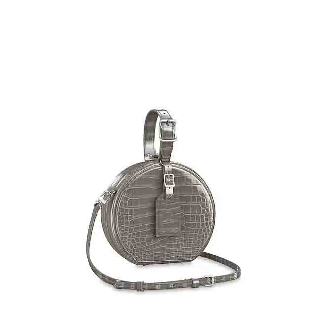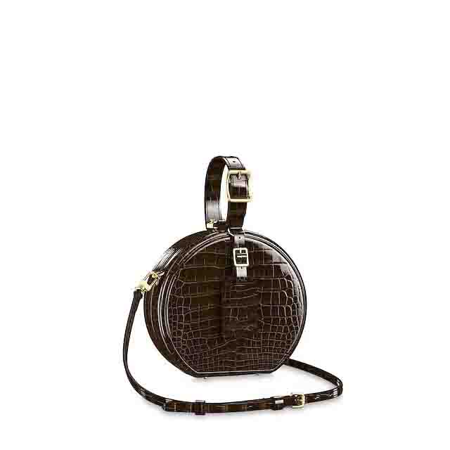 鳄鱼肚皮雾面小圆饼包 尺寸:17-16-9 私人订做鳄鱼皮包订制工厂联系微信 95506803